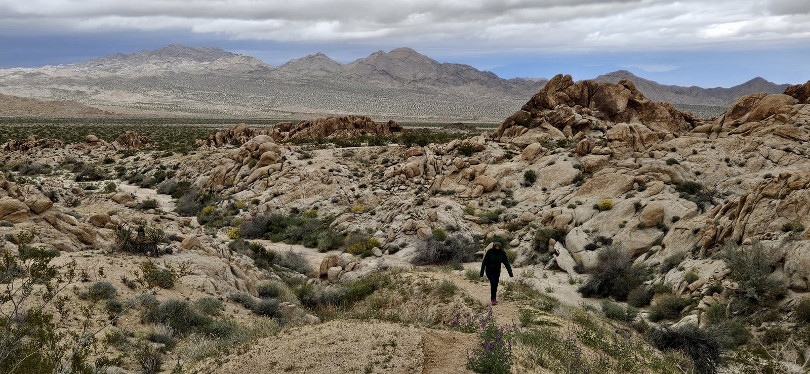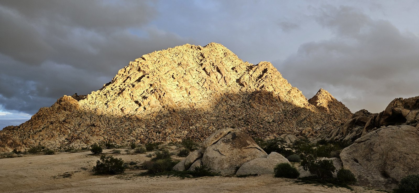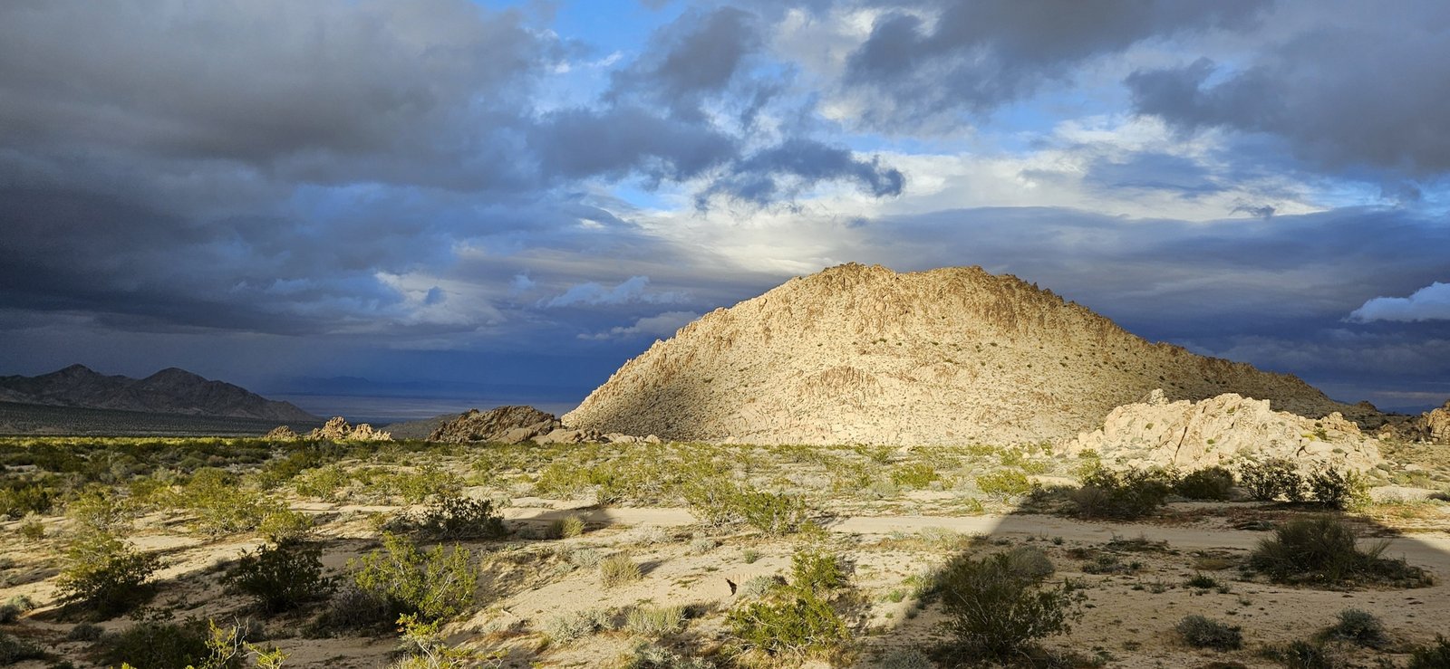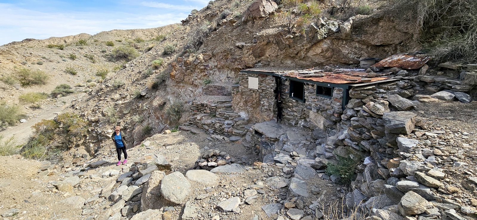 Eris and I had a week to roam, mixing it up with short hikes, great camp spots, and most importantly, abundant food. Weeks of perfect weather ended during our trip but we enjoyed the moodier landscape despite strong wind and near-freezing nights. We visited some new spots and old favorites – the lower Santa Rosas, Orocpia Wilderness, Joshua Tree, Cleghorn Lakes Wilderness, and the Salton Sea. In the Orocopia Mountains we ran across a stone cabin hidden in the bend of a wash, cool unexpected find.
