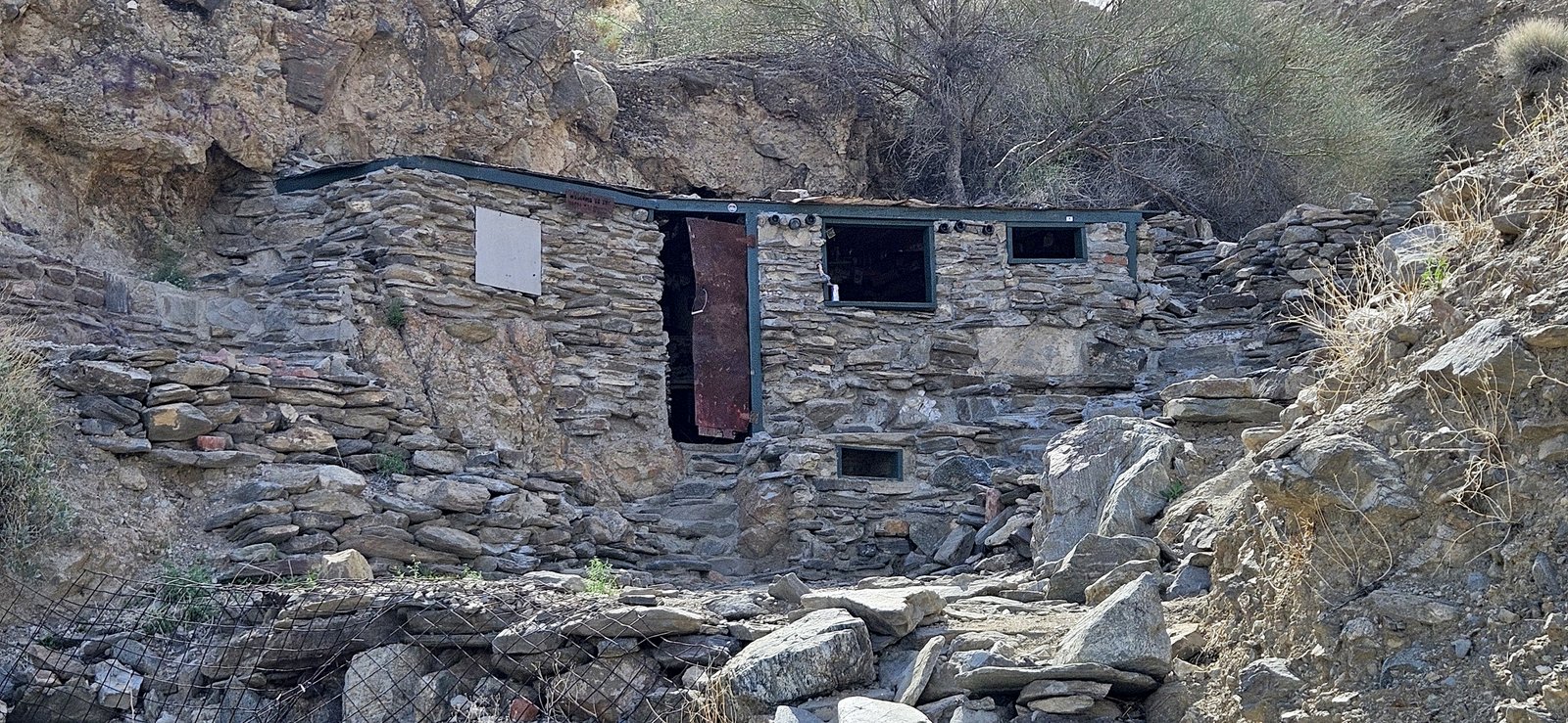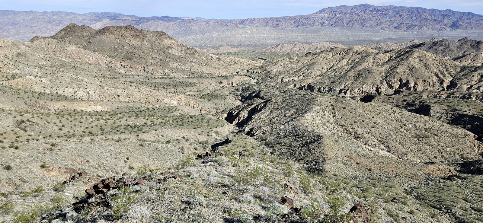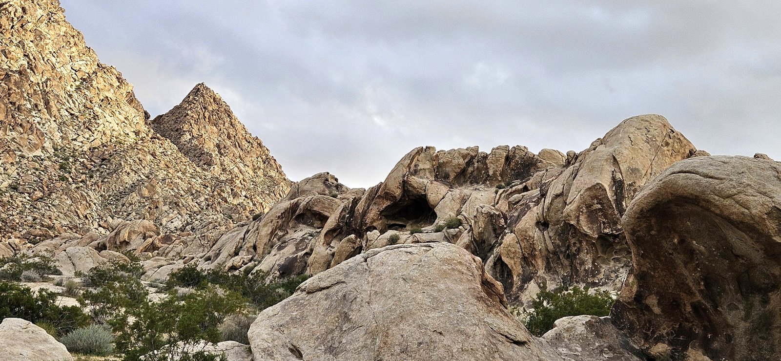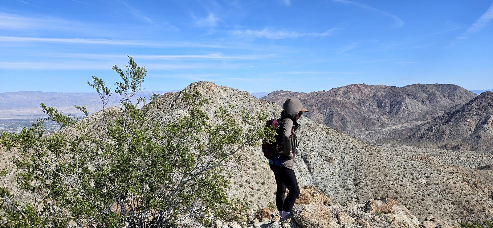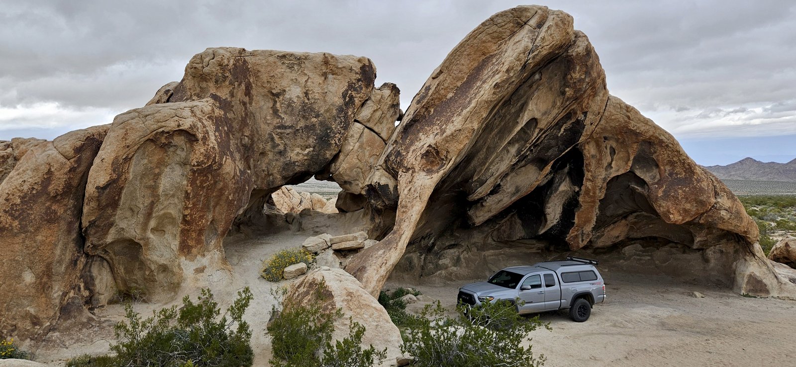 Eris and I had a week to roam, mixing it up with short hikes, great camp spots, and most importantly, abundant food. Weeks of perfect weather ended during our trip but we enjoyed the moodier landscape despite strong wind and near-freezing nights. We visited some new spots and old favorites – the lower Santa Rosas, Orocpia Wilderness, Joshua Tree, Cleghorn Lakes Wilderness, and the Salton Sea. In the Orocopia Mountains we ran across a stone cabin hidden in the bend of a wash, cool unexpected find.