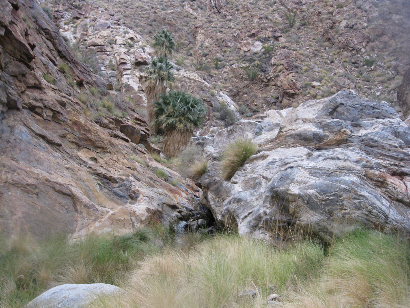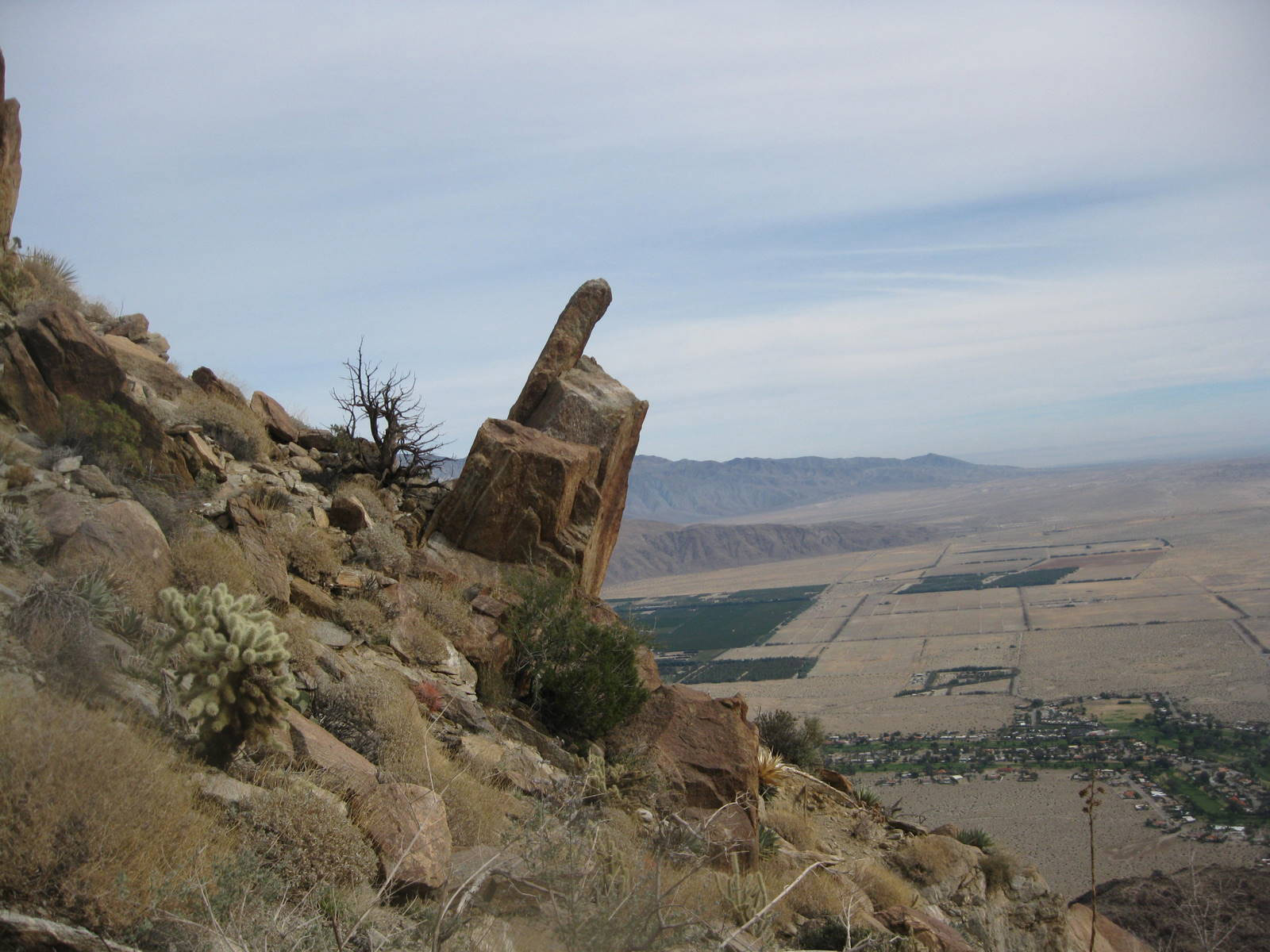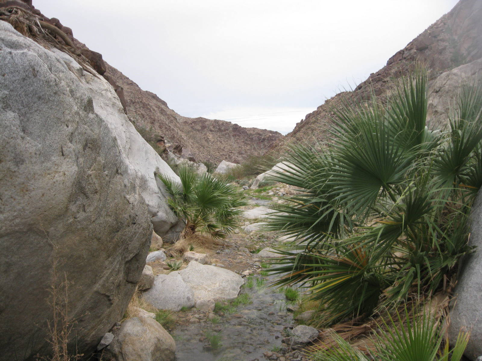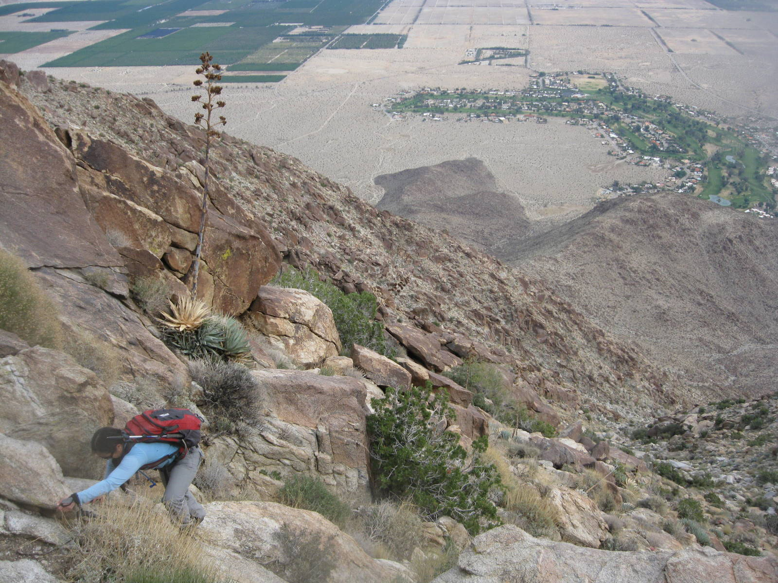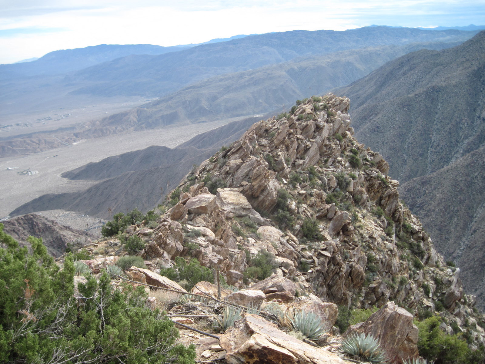 One of the tougher single peak outings in San Diego County, this was my 2nd time up Indianhead Peak this year, and this trip marked Anna’s 50th San Diego County peak. We enjoyed the steep climbing, reddish rock, and excellent views. We ascended the SE ridge and came down the SW slopes, descending through beautiful Borrego Palm Canyon, seeing bats, frogs, and huge palm trees along the way.