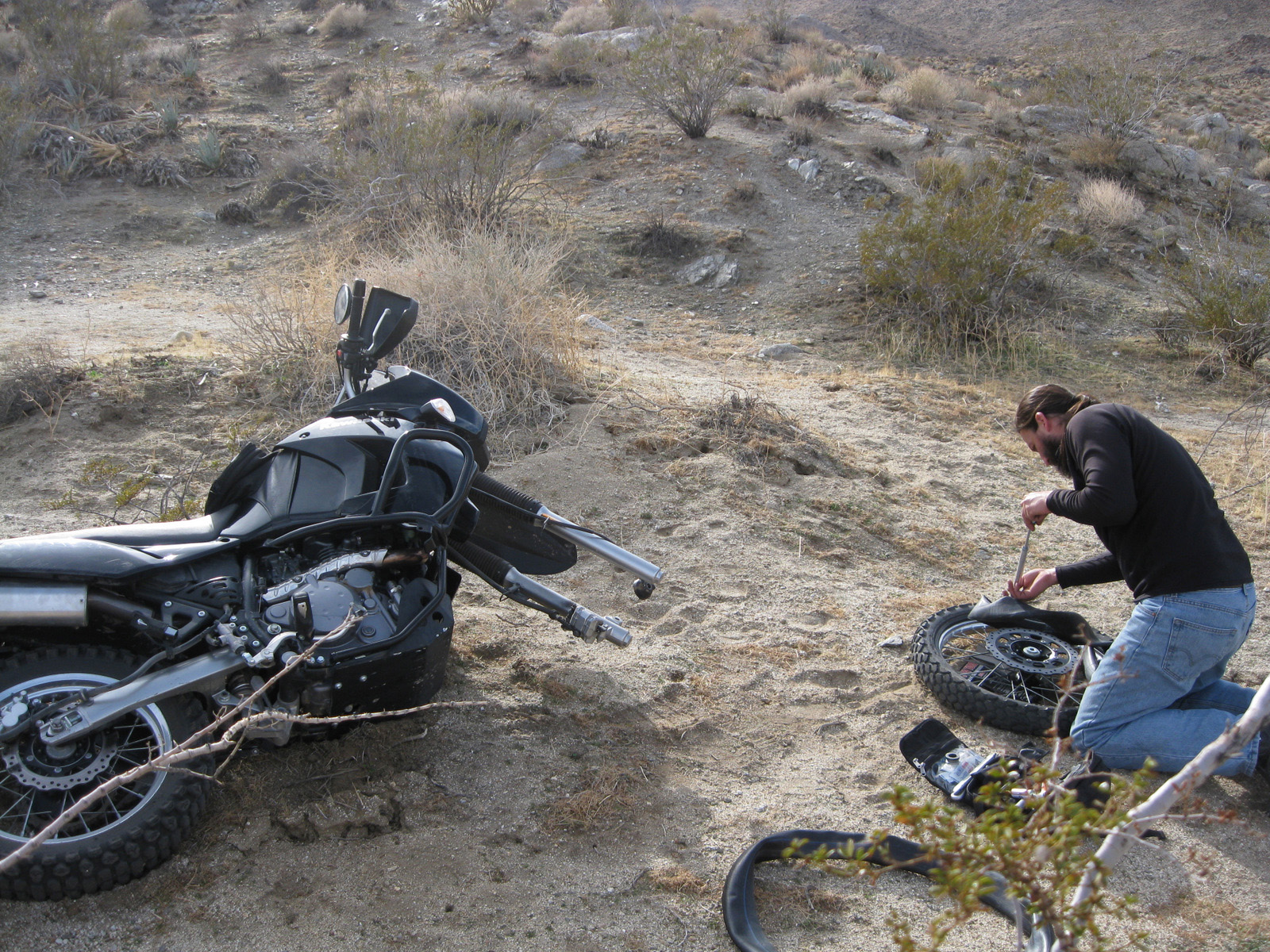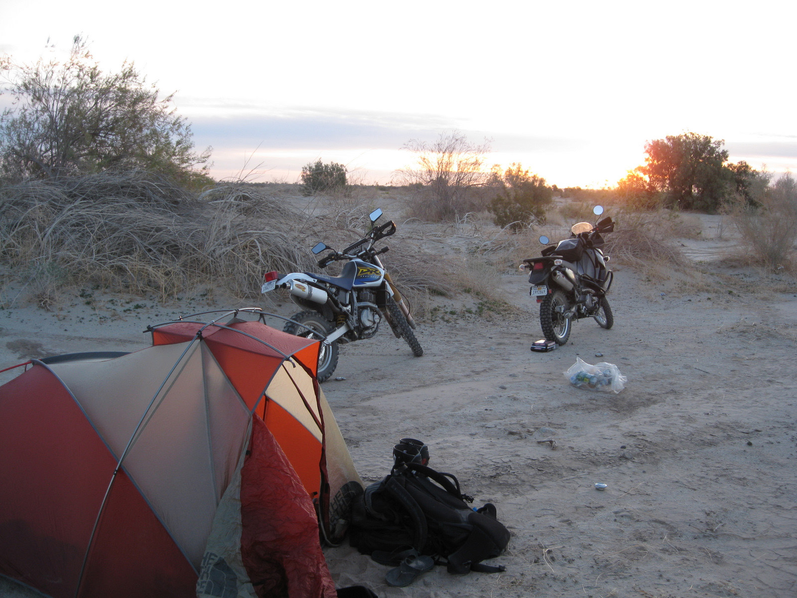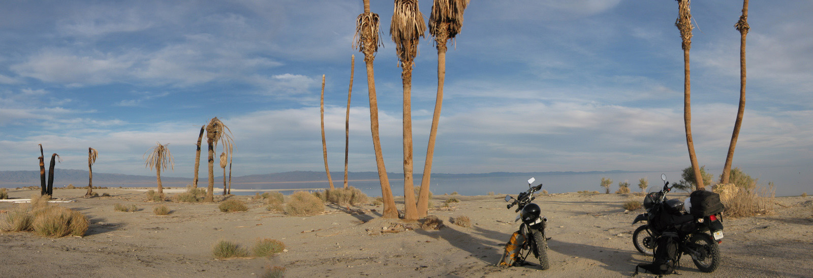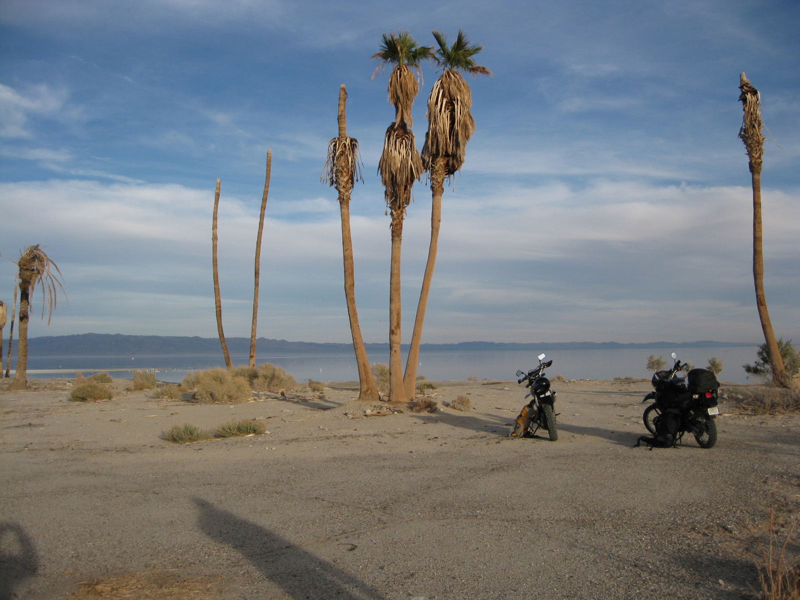 A friend and I left San Diego on dual-sport motorcycles, heading east through the Anza Borrego desert, making it as far as the Salton Sea and setting up camp on the desert floor just outside of Ocotillo Wells. The versatility of the bikes allowed us to enjoy the open road in the desert and take short cuts on dirt roads, though I found the Salton Sea, with its desolate surroundings, near-abandoned towns, and odd history to be the highlight of the trip.