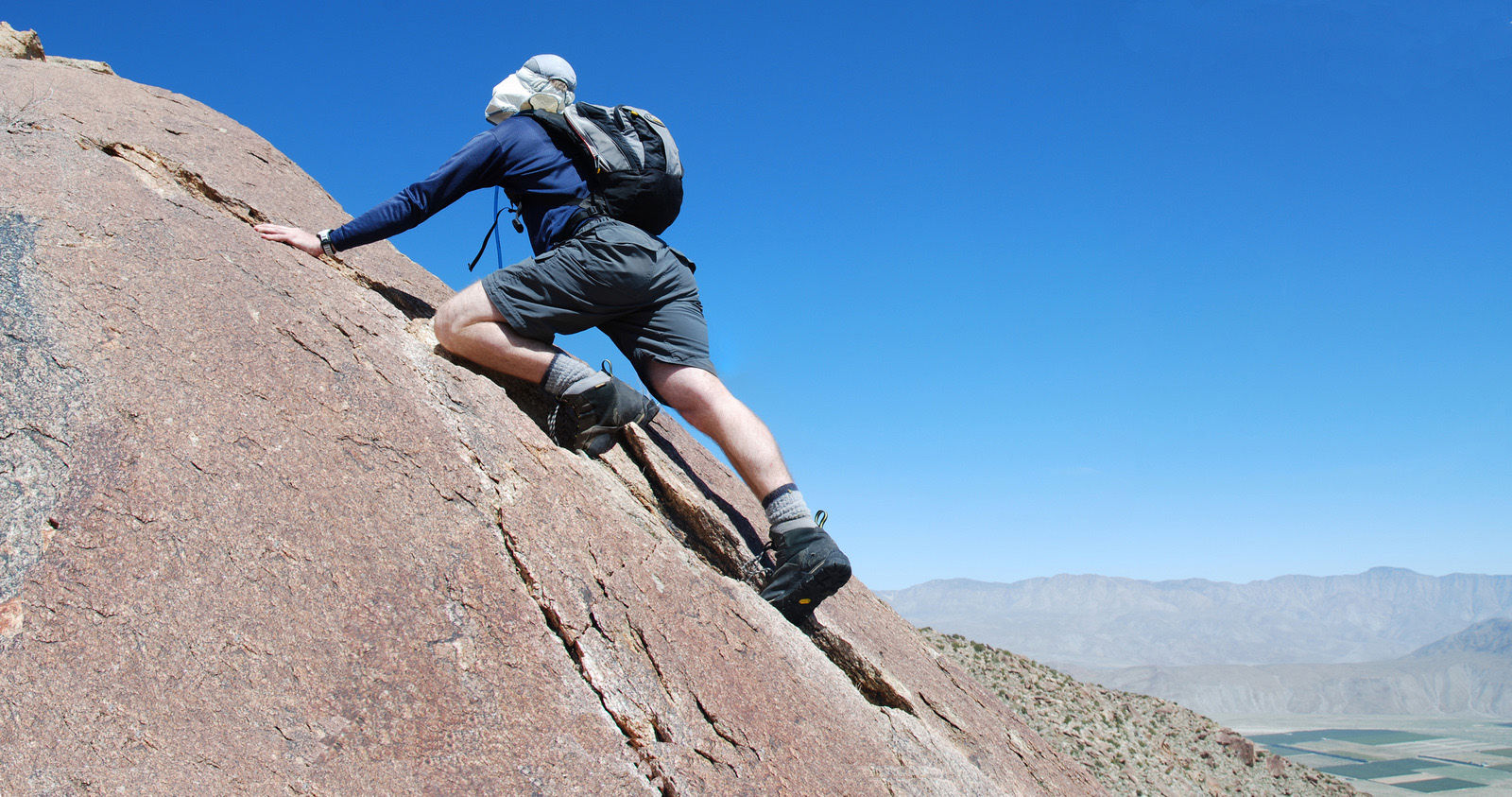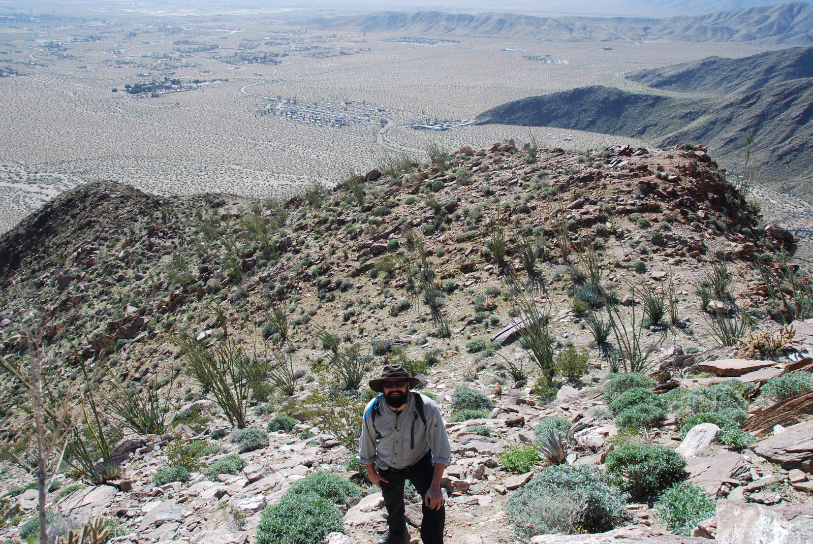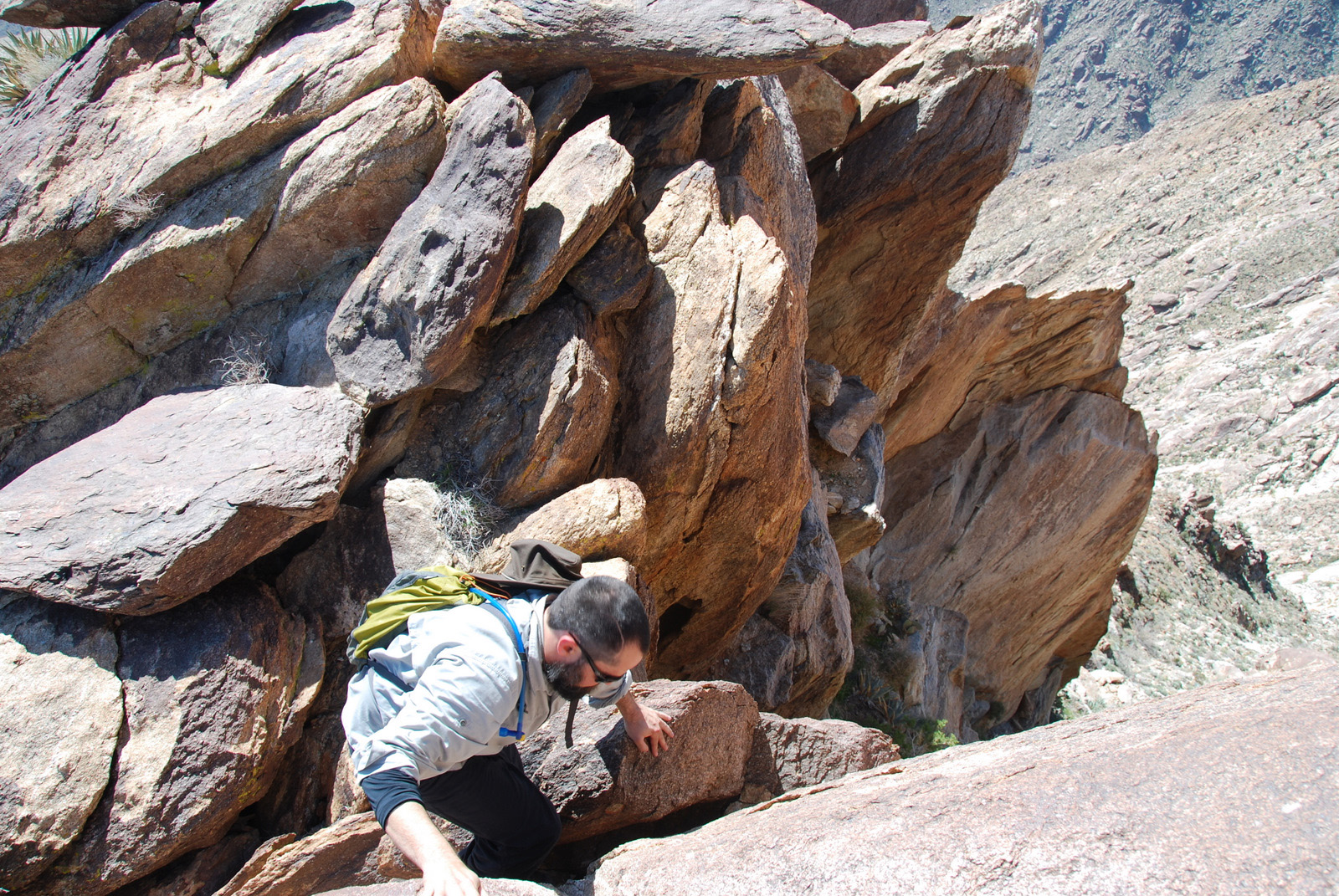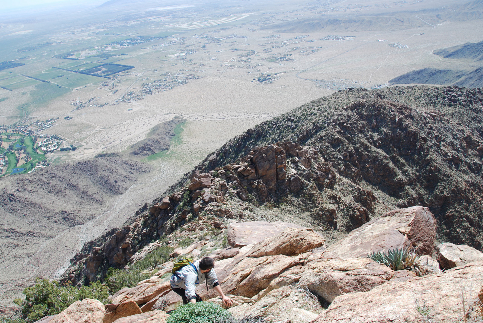 Overlooking Borrego Springs in the Anzo Borrego desert, I was first attracted to Indianhead Peak when I read its description, “there is no easy way to the summit.” The excellent views and high quality scrambling took our minds off the many cactus induced cuts and pricks. We descended the “normal” route, finishing with a mellow and much-deserved stroll through Palm Canyon.