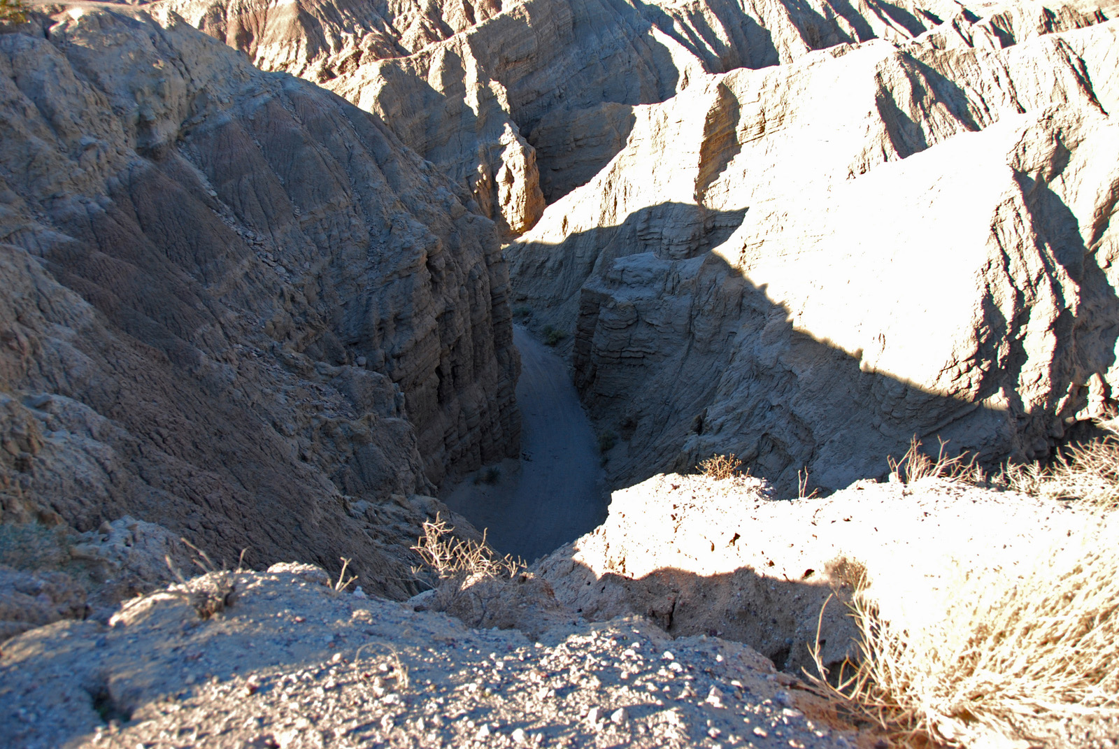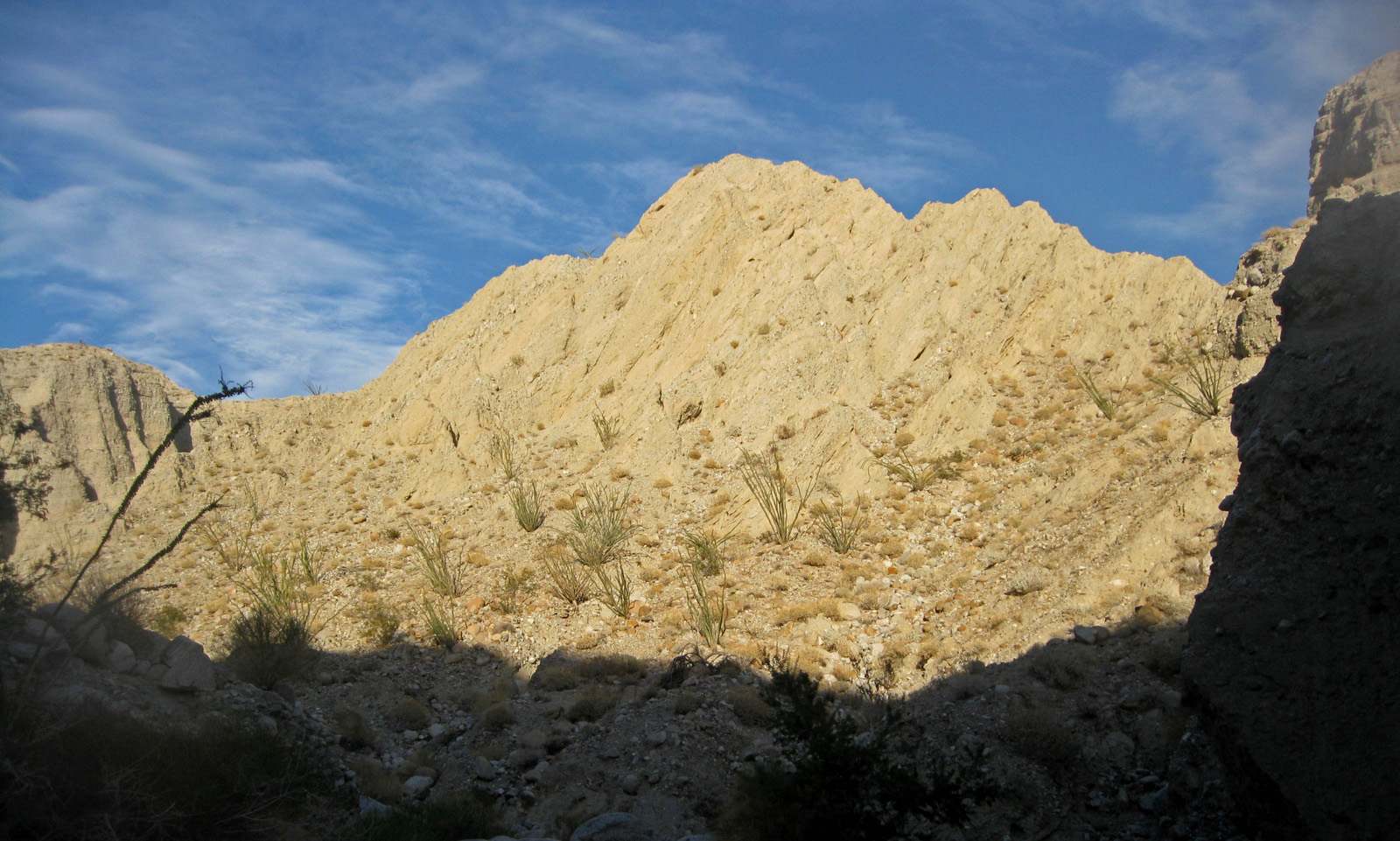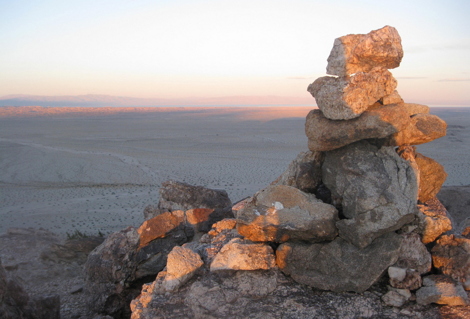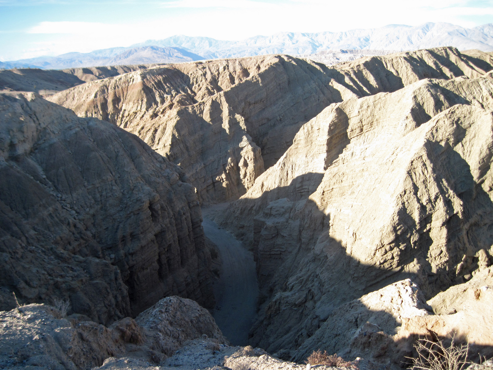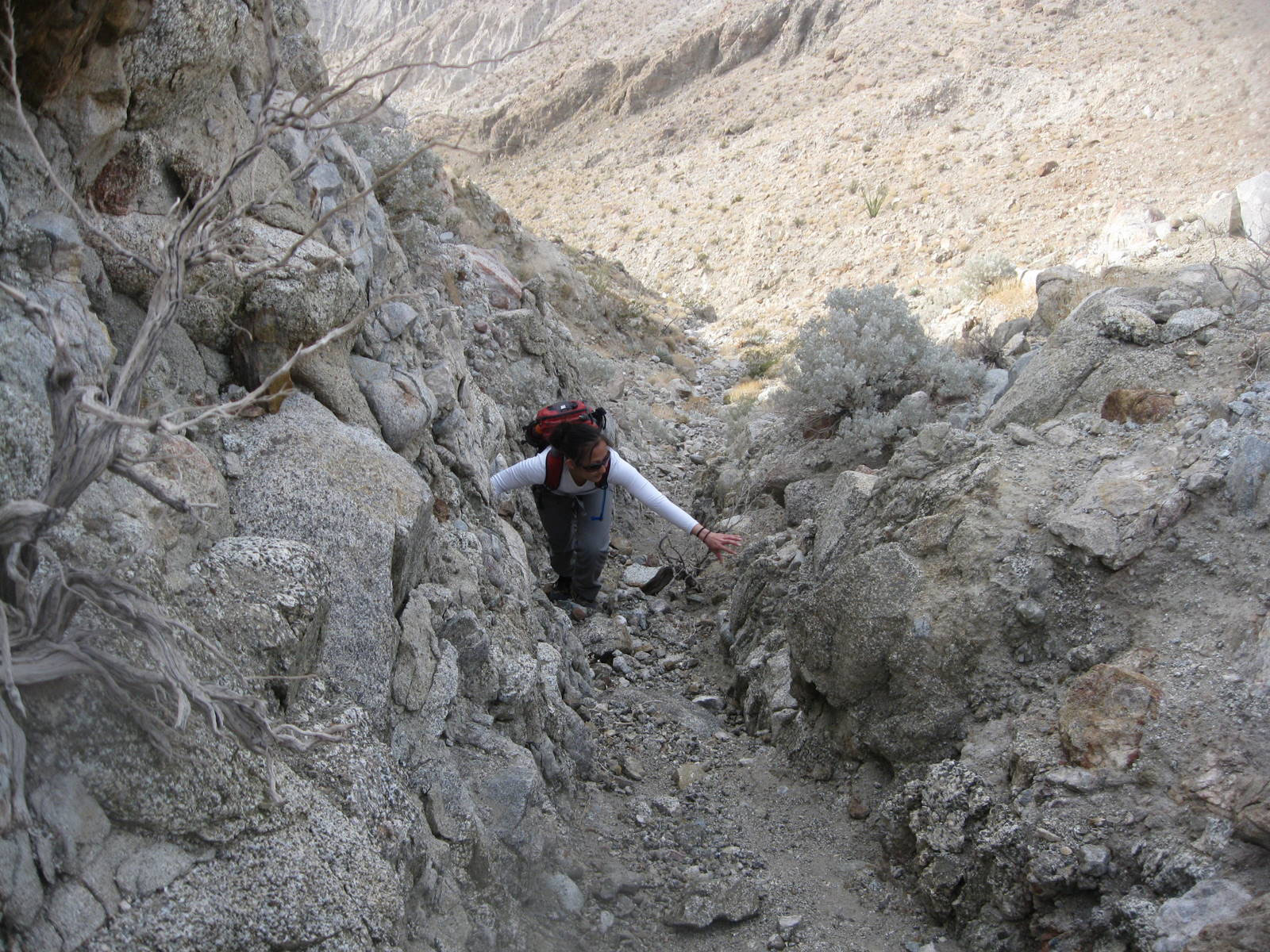 Continuing with the San Diego County peak list, we knocked off 5 more peaks in the Anza Borrego desert: Coyote, Palm BM (Traveler), Sunset, and Borrego Mountain (both east and west buttes). The terrain varied considerably between each peak – from imbedded and polished rock giving good footing on Coyote, to loose gravel and huge boulders on Sunset, to trails and slot canyons in the Borrego Mountains. The short days make it tough to cram the peaks in like we want, ending up at Carlee’s (the local bar’n’grill in Borrego Springs) earlier than we’d like.