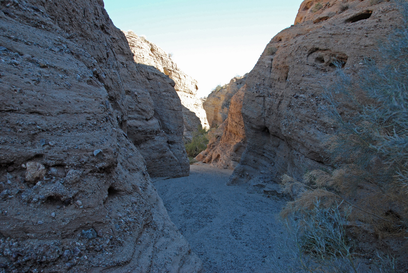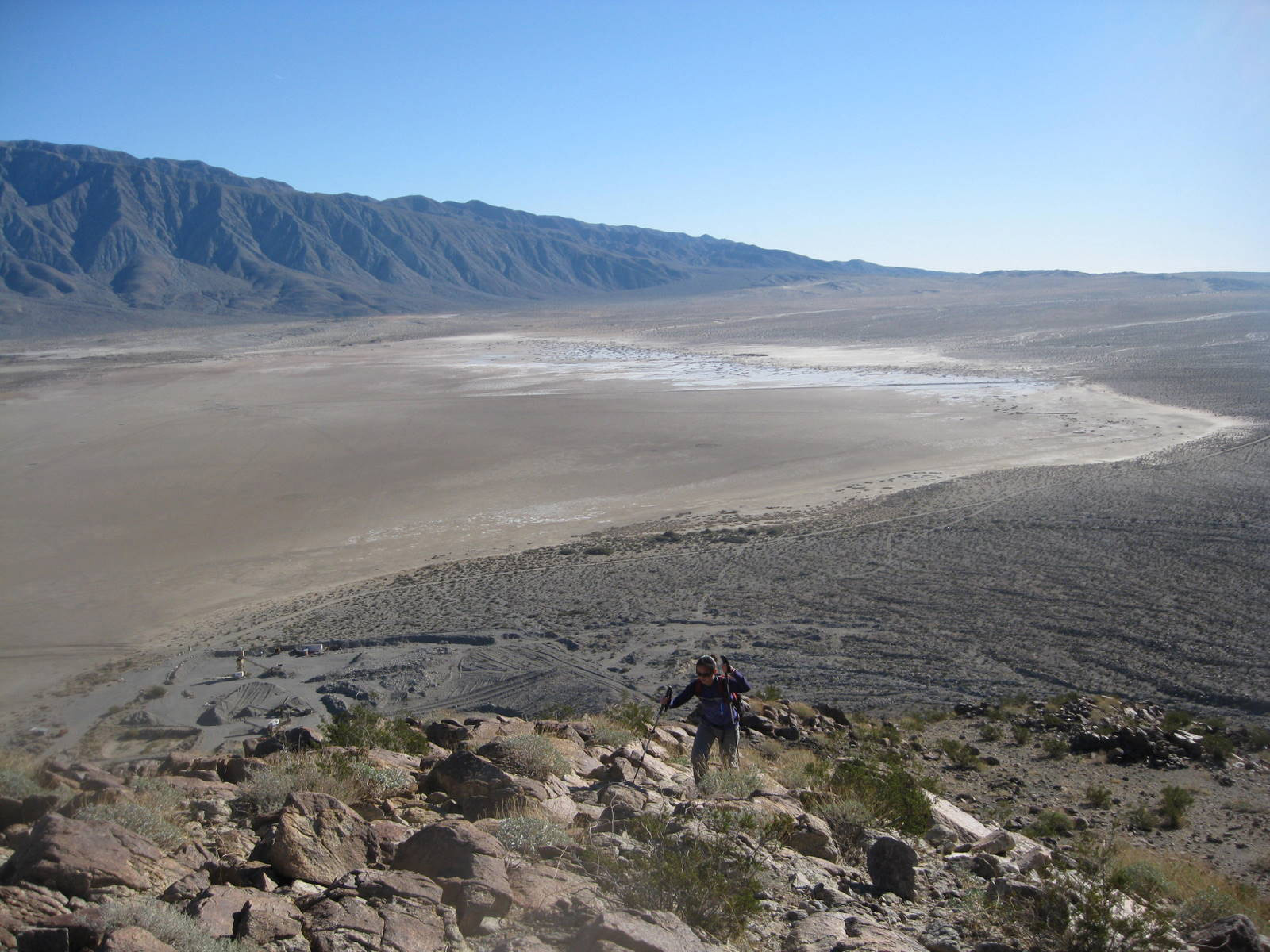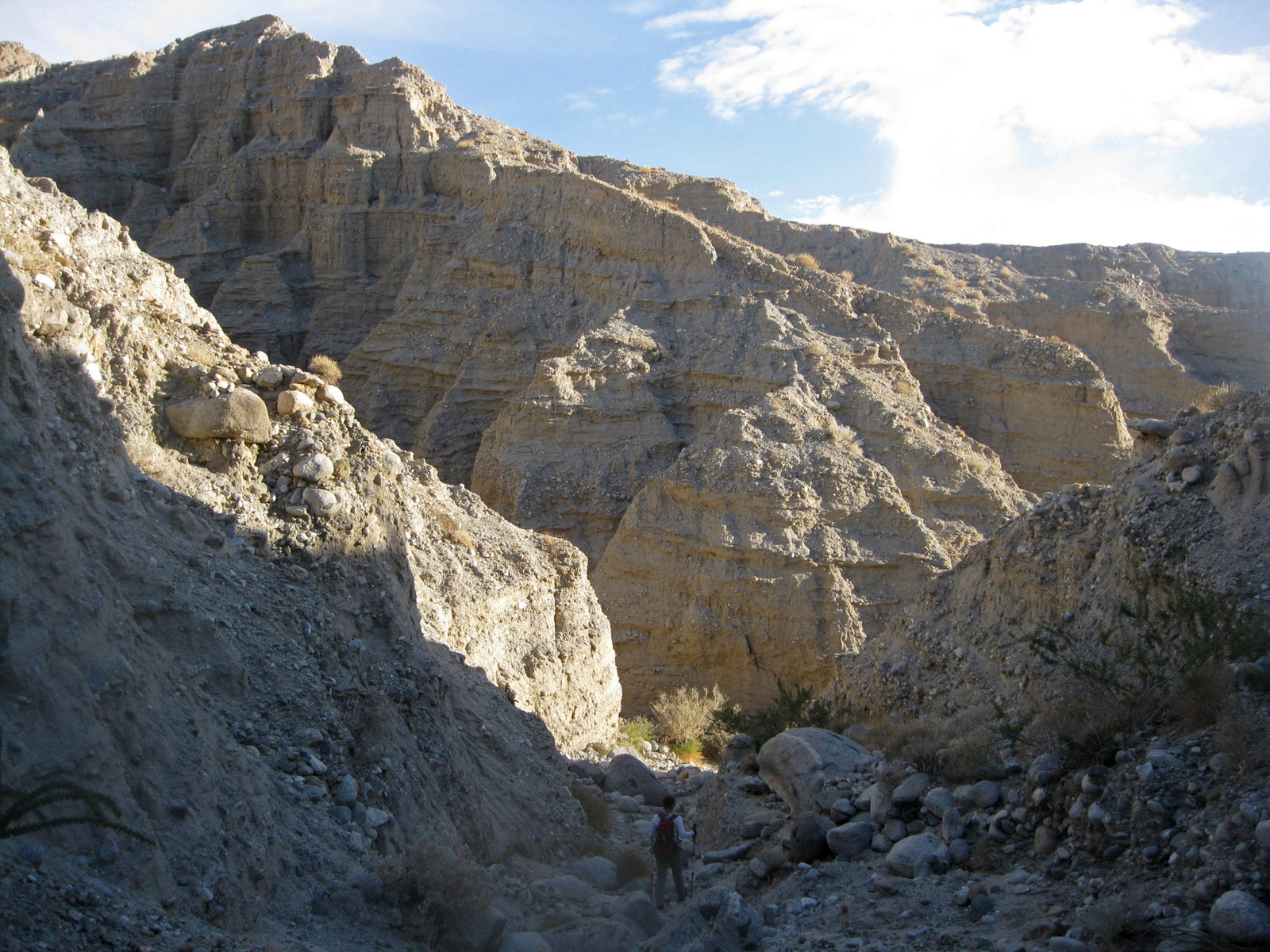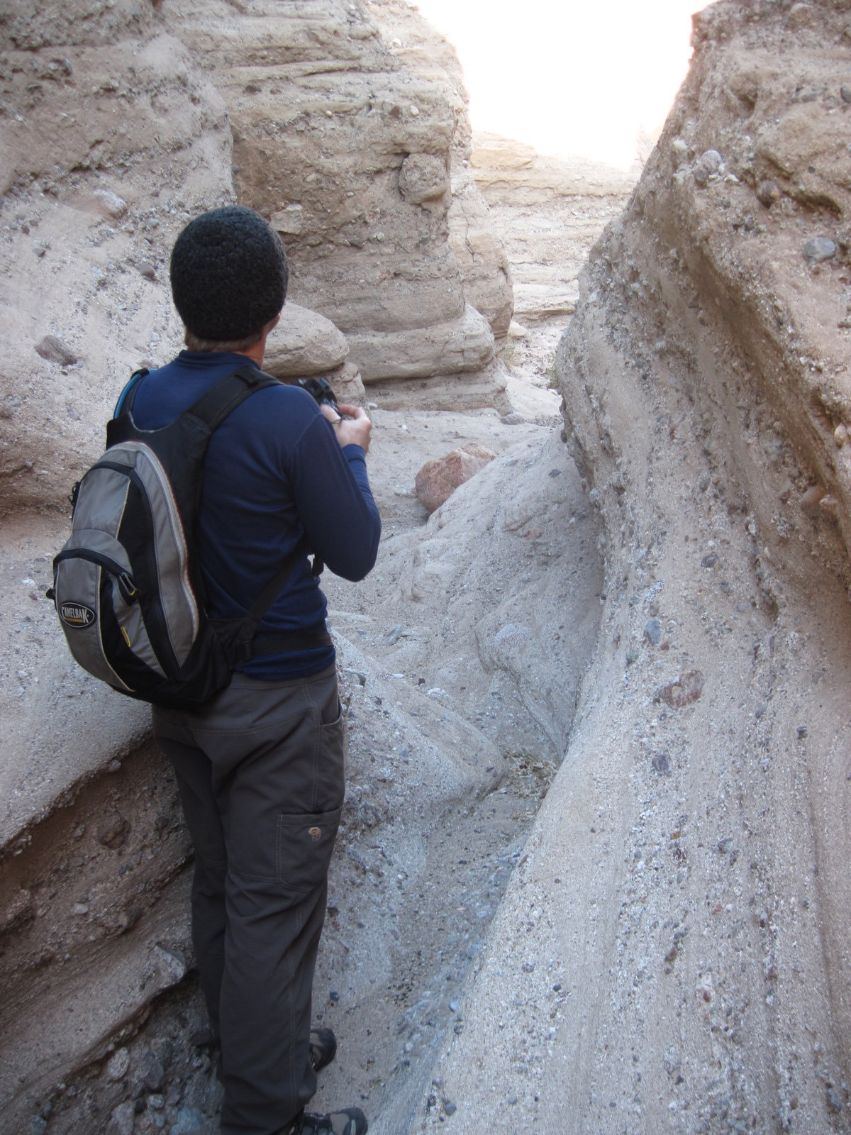 Continuing with the San Diego County peak list, we knocked off 5 more peaks in the Anza Borrego desert: Coyote, Palm BM (Traveler), Sunset, and Borrego Mountain (both east and west buttes). The terrain varied considerably between each peak – from imbedded and polished rock giving good footing on Coyote, to loose gravel and huge boulders on Sunset, to trails and slot canyons in the Borrego Mountains. The short days make it tough to cram the peaks in like we want, ending up at Carlee’s (the local bar’n’grill in Borrego Springs) earlier than we’d like.