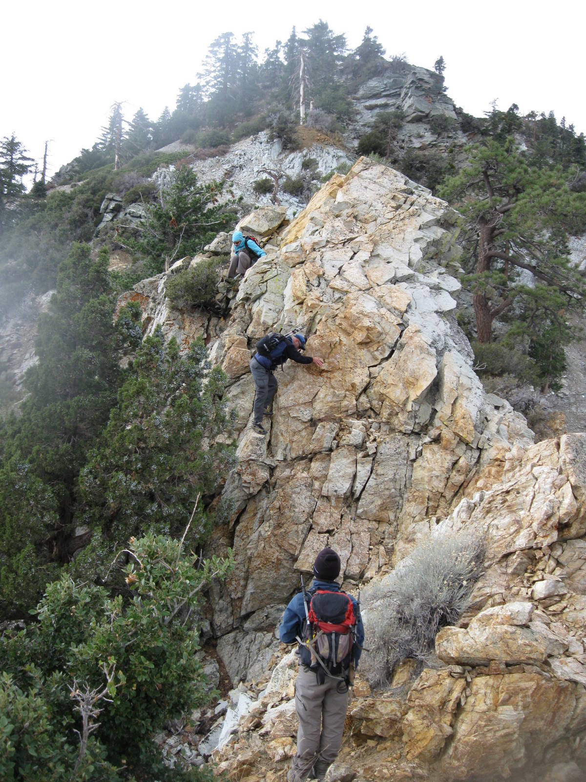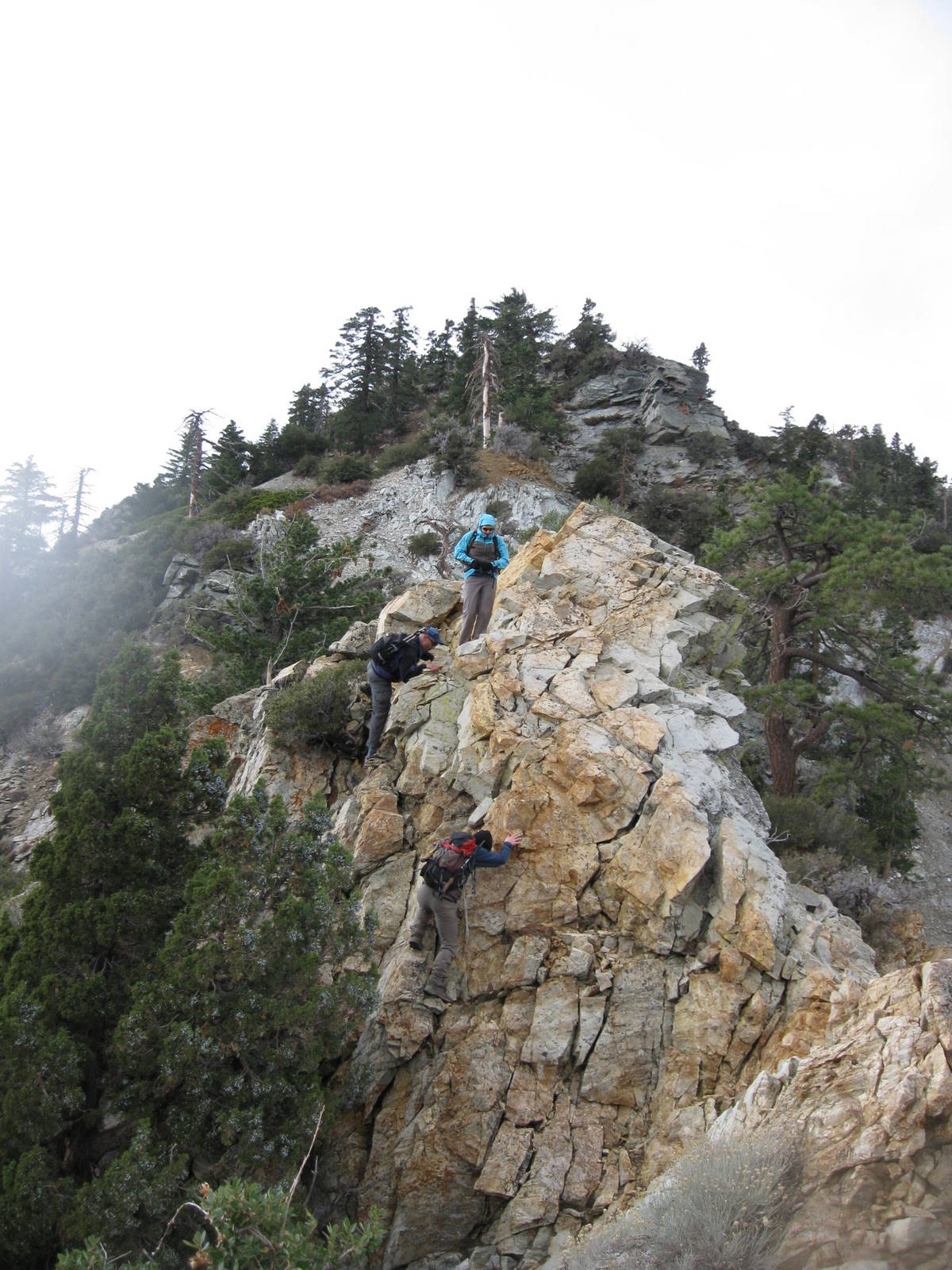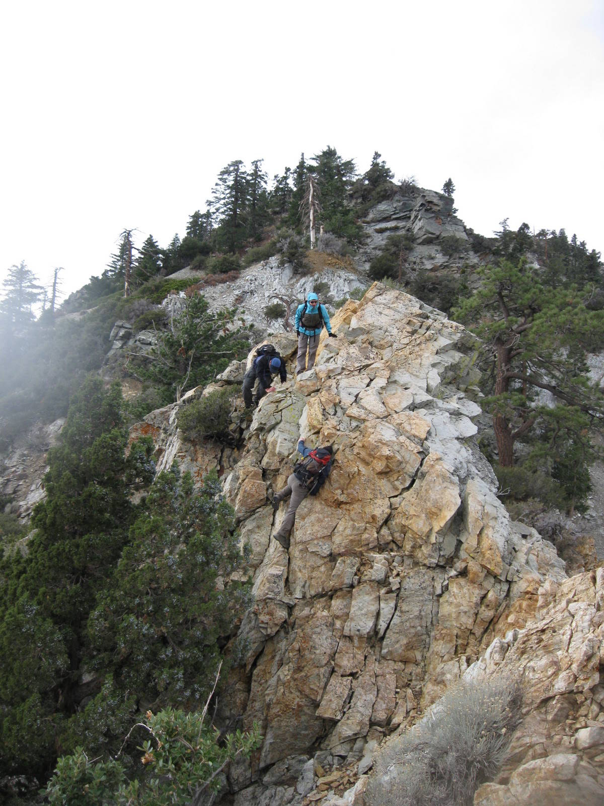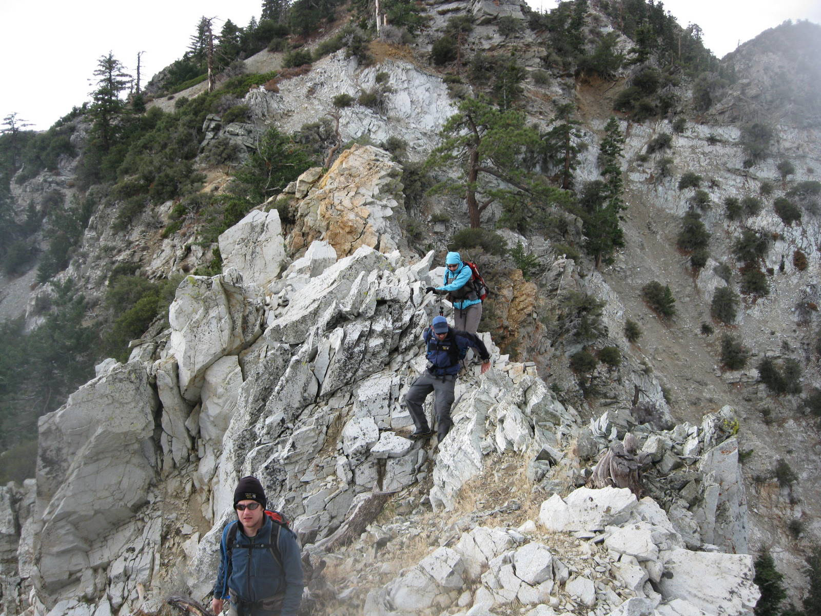 The Iron-Baldy Traverse is a San Gabriel and Southern California classic, a true testpiece for serious hikers. It invovles hiking to the summit of Iron Mountain, one of the toughest peaks in the San Gabriels, then traversing accross a 4-5 mile long ridge to the 10000 foot summit of Mt. Baldy, the highest mountain in the San Gabriels. The route is approximately 16 miles with a monstrous 10000 feet of elevation gain and a few class 3 sections to spice things up. We set up a car shuttle and began our hike in the dark at 6:30am. From the summit of Iron, we could see some fierce clouds swirling above Mt. Baldy’s summit and knew we were in for a little more than we’d hoped. After negotiating the short and sweet class 3 sections on the ridge, we ascended into the deteriorating weather and put up with numb hands and faces until we reached the summit of Baldy, where we were able to drop down into calmer conditions. Reaching the car at 8pm, it was a long and rewarding day, the challenge of which was softened by great company.