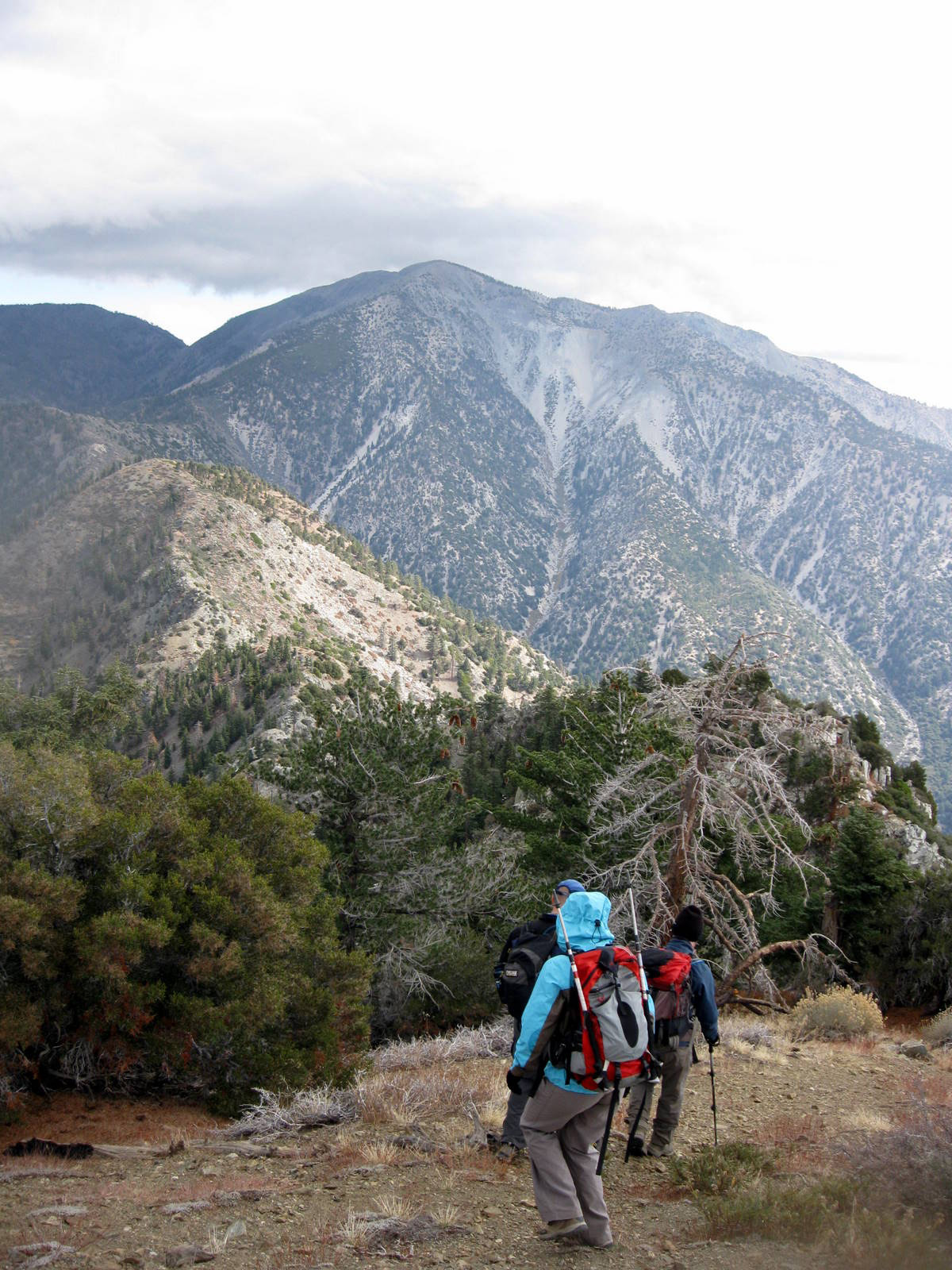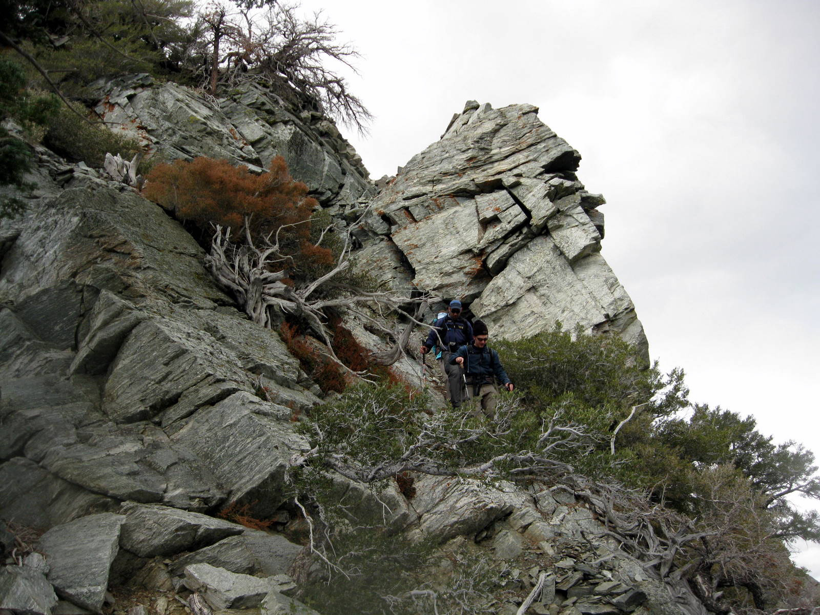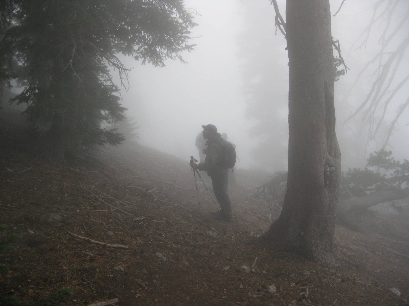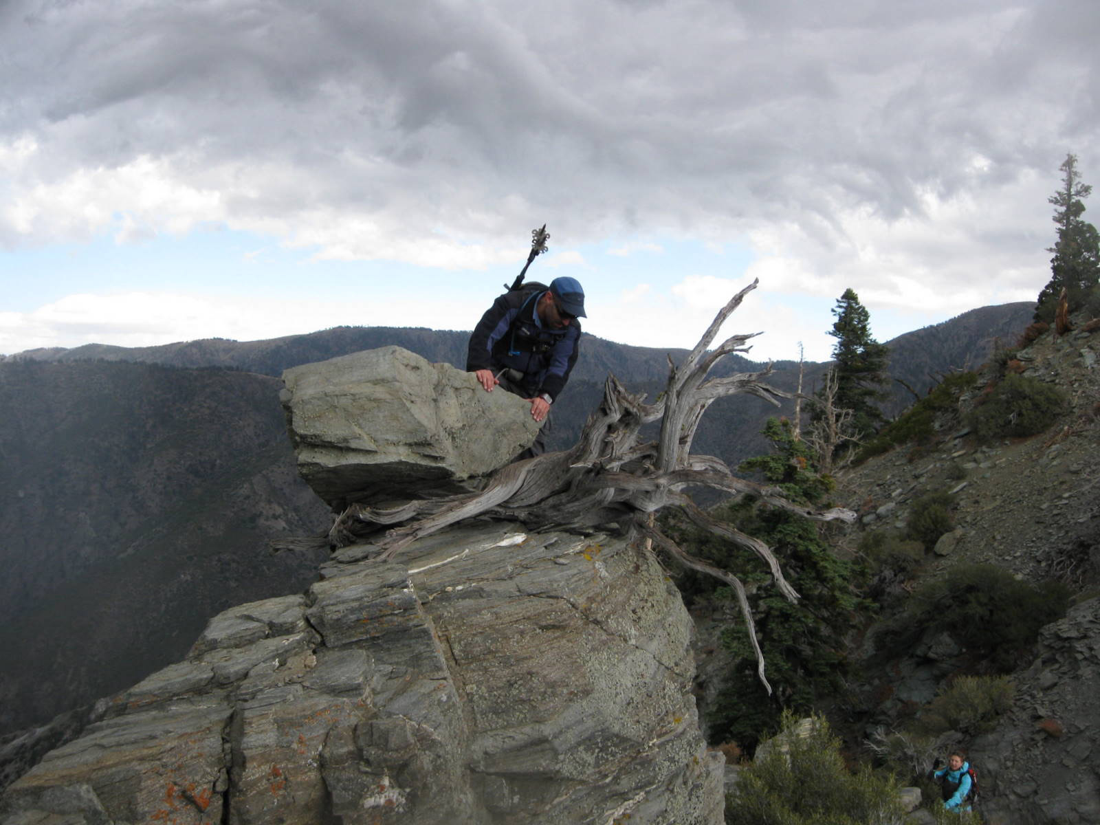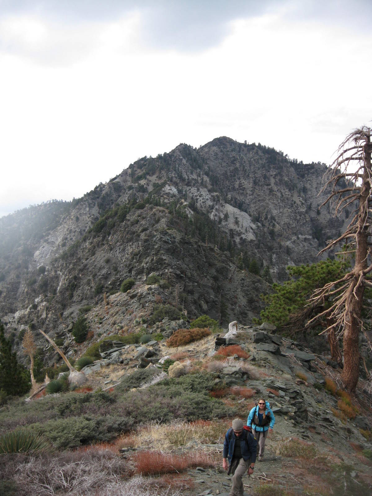 The Iron-Baldy Traverse is a San Gabriel and Southern California classic, a true testpiece for serious hikers. It invovles hiking to the summit of Iron Mountain, one of the toughest peaks in the San Gabriels, then traversing accross a 4-5 mile long ridge to the 10000 foot summit of Mt. Baldy, the highest mountain in the San Gabriels. The route is approximately 16 miles with a monstrous 10000 feet of elevation gain and a few class 3 sections to spice things up. We set up a car shuttle and began our hike in the dark at 6:30am. From the summit of Iron, we could see some fierce clouds swirling above Mt. Baldy’s summit and knew we were in for a little more than we’d hoped. After negotiating the short and sweet class 3 sections on the ridge, we ascended into the deteriorating weather and put up with numb hands and faces until we reached the summit of Baldy, where we were able to drop down into calmer conditions. Reaching the car at 8pm, it was a long and rewarding day, the challenge of which was softened by great company.