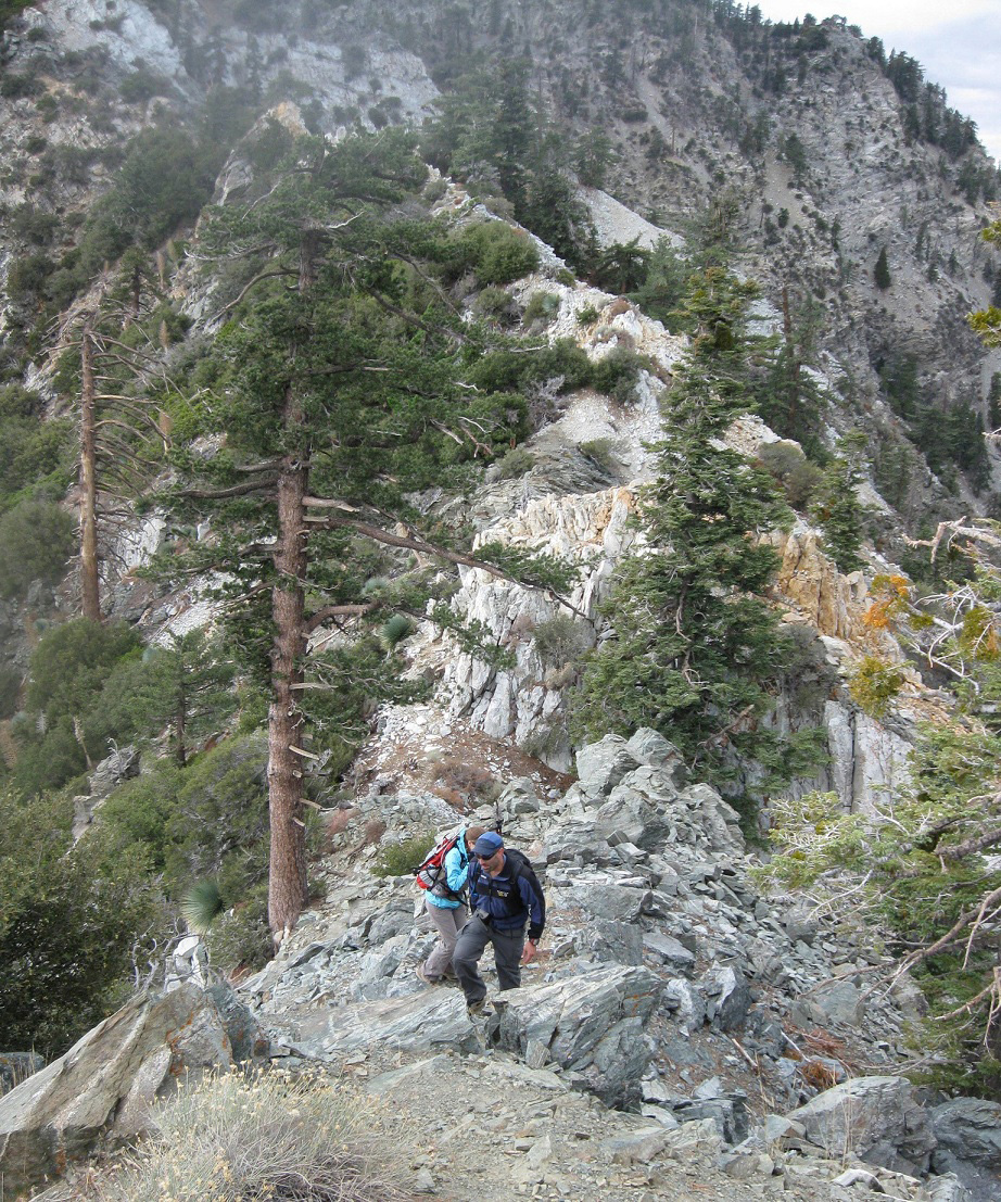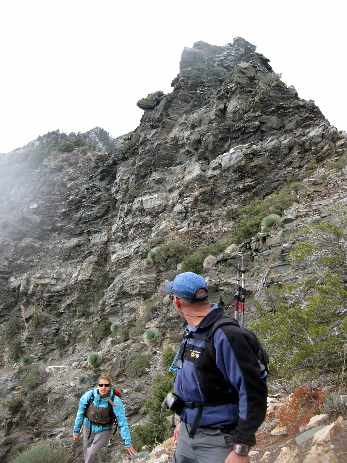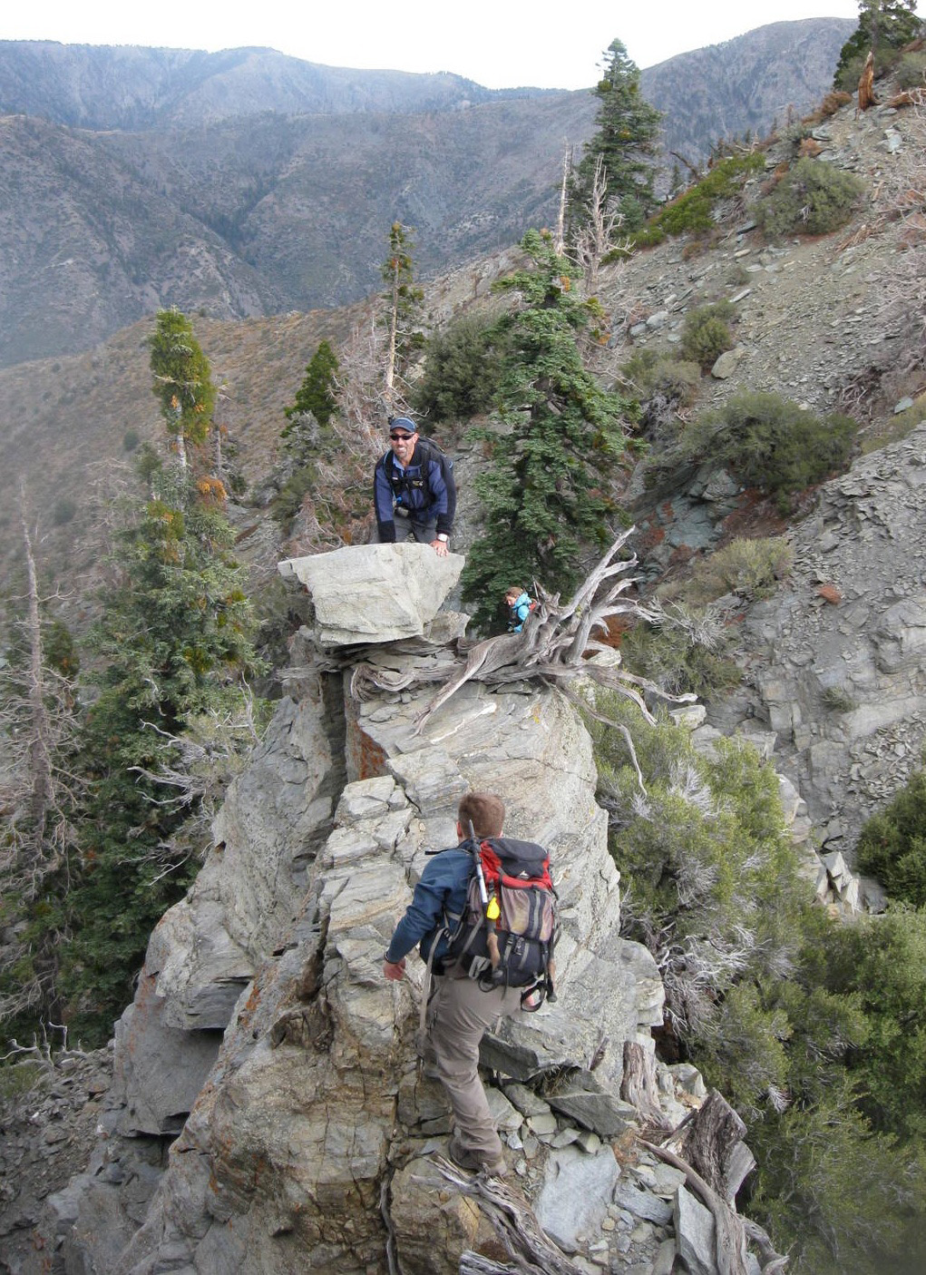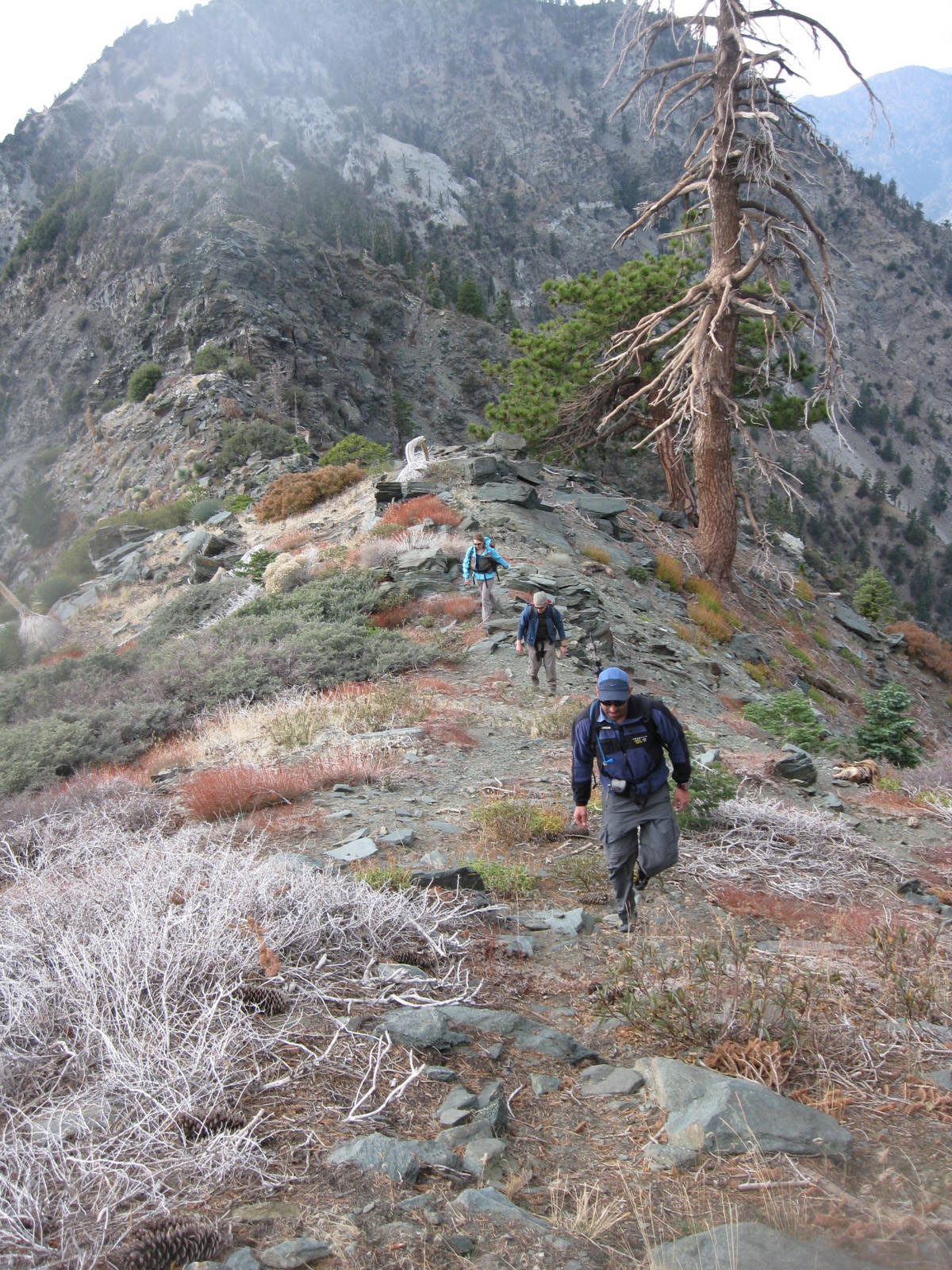 The Iron-Baldy Traverse is a San Gabriel and Southern California classic, a true testpiece for serious hikers. It invovles hiking to the summit of Iron Mountain, one of the toughest peaks in the San Gabriels, then traversing accross a 4-5 mile long ridge to the 10000 foot summit of Mt. Baldy, the highest mountain in the San Gabriels. The route is approximately 16 miles with a monstrous 10000 feet of elevation gain and a few class 3 sections to spice things up. We set up a car shuttle and began our hike in the dark at 6:30am. From the summit of Iron, we could see some fierce clouds swirling above Mt. Baldy’s summit and knew we were in for a little more than we’d hoped. After negotiating the short and sweet class 3 sections on the ridge, we ascended into the deteriorating weather and put up with numb hands and faces until we reached the summit of Baldy, where we were able to drop down into calmer conditions. Reaching the car at 8pm, it was a long and rewarding day, the challenge of which was softened by great company.