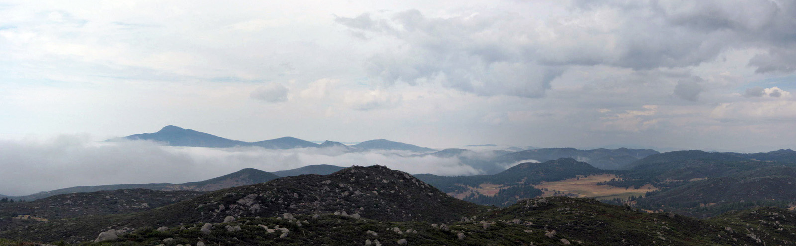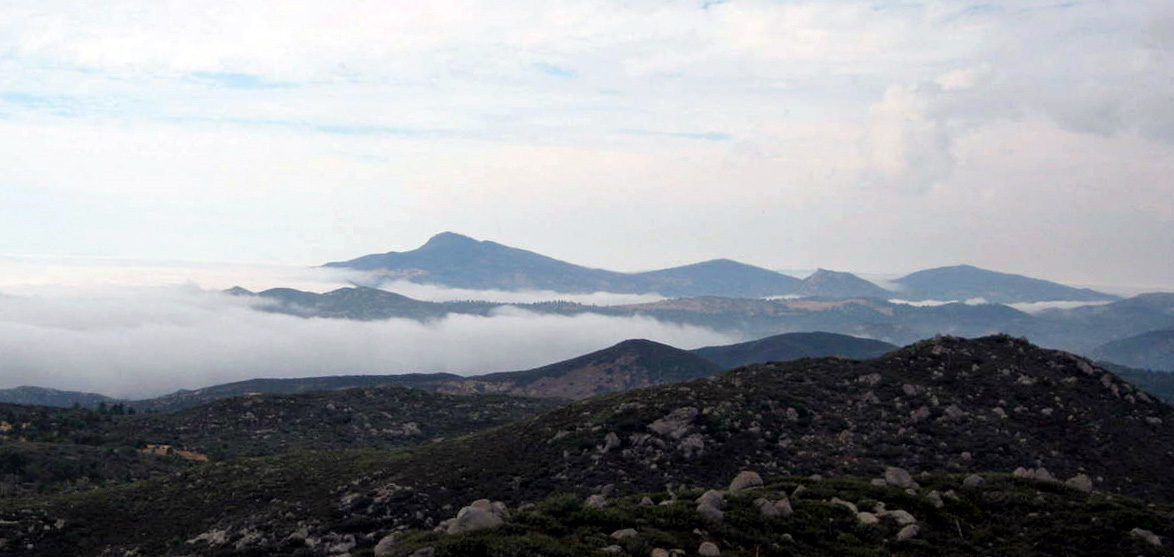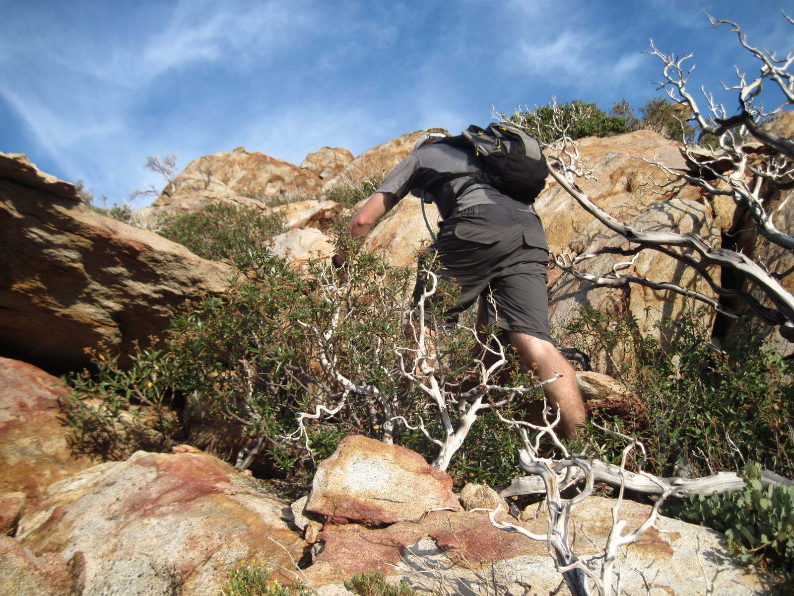 Headed for the beautiful Sunrise Highway, our intentions were to bag 4 peaks on Saturday and 4 on Sunday, but it took so long to figure out a way up Manza BM that we had to change our plans. Manza, less than a mile from the road, took us several hours to find a route to its highpoint. Once back down from Manza, we quickly headed for Roost, the longest hike of the weekend and returned to the car just before dark. Luckily the remaining peaks proved to be easier than we thought, and we were able to bag the remaining six (Garnet Peak, Pine Mountain, Garnet Mountain, Monument Peak, Sheephead, Wooded Hill) before heading home on Sunday.