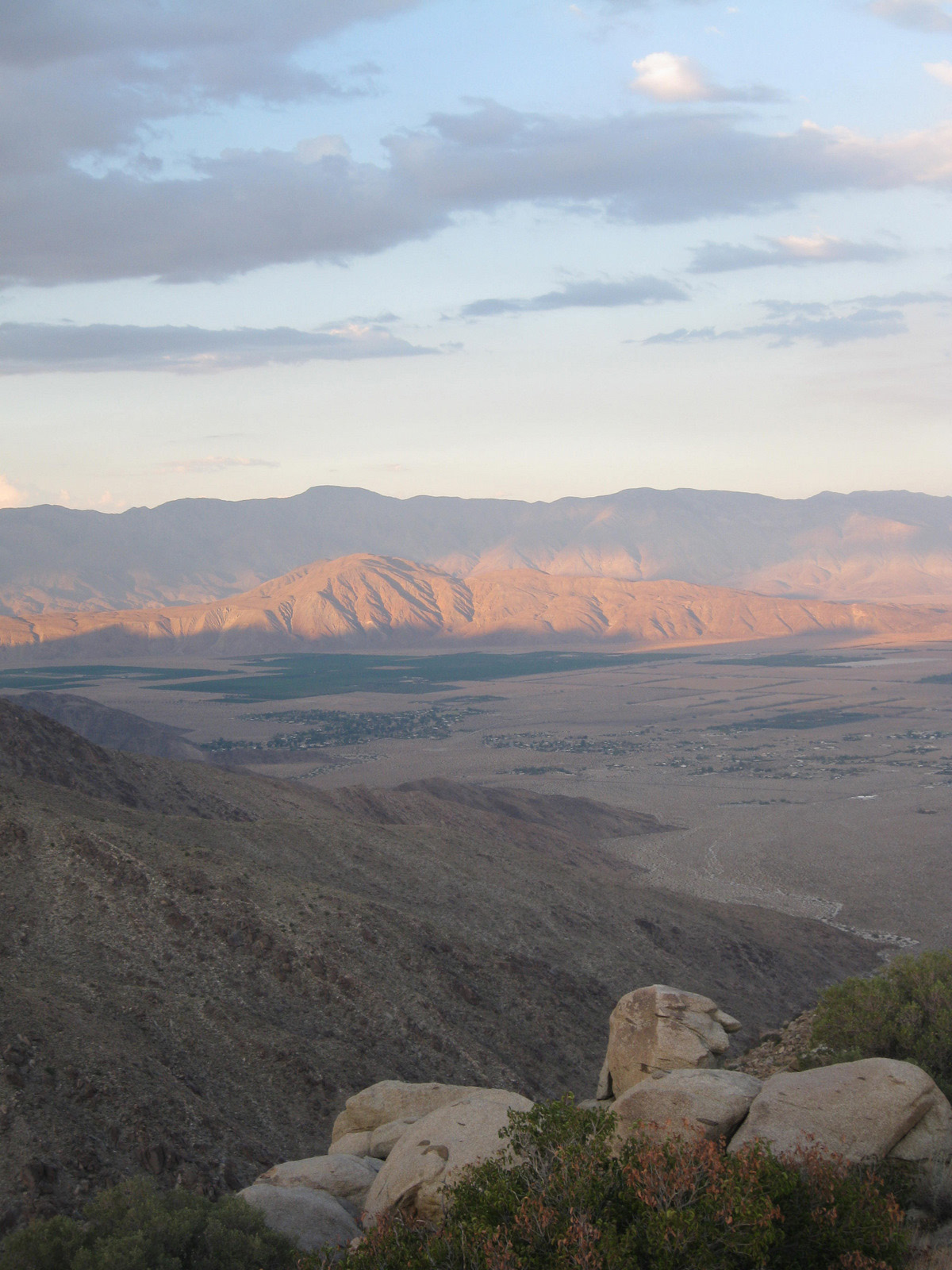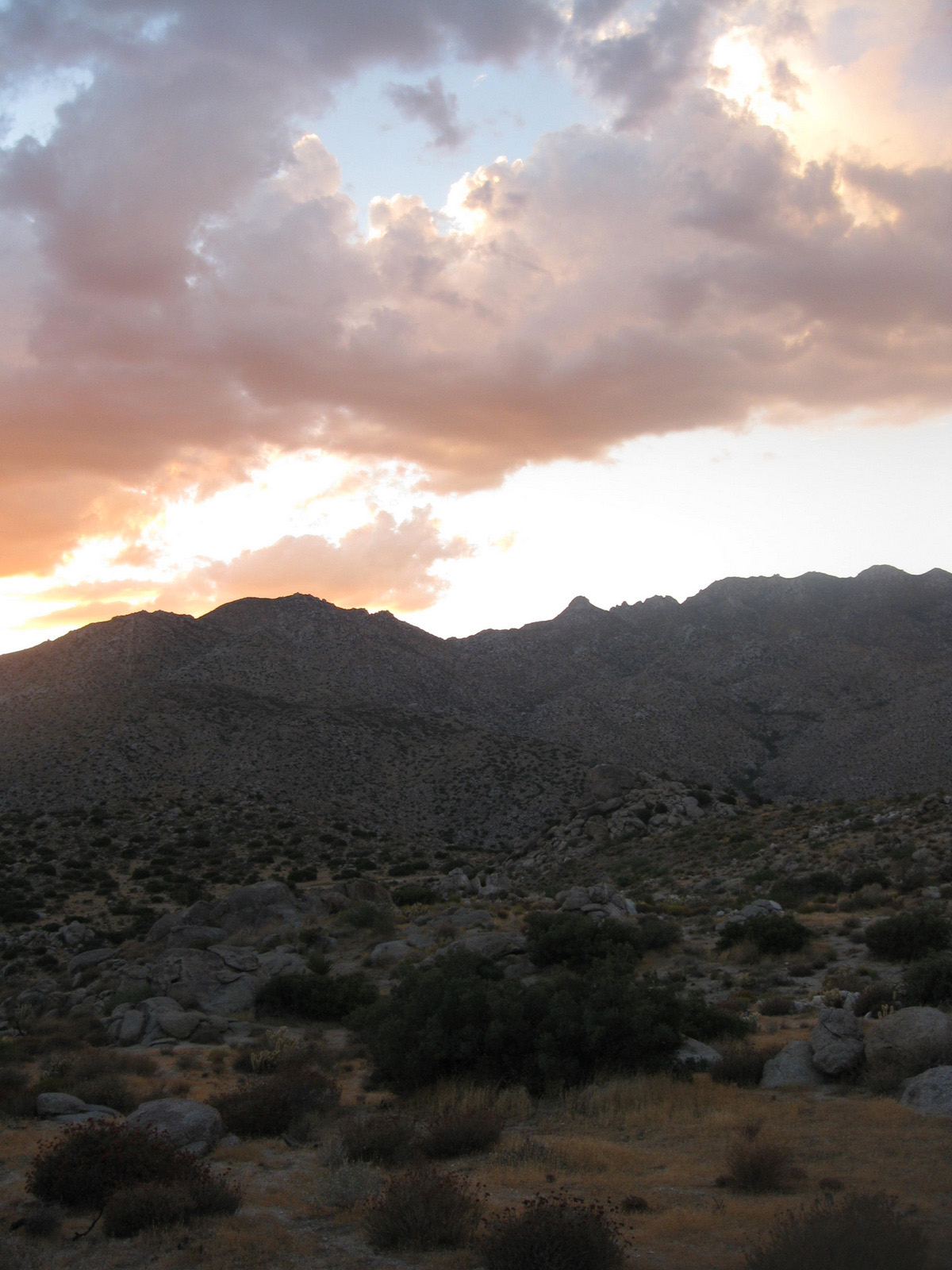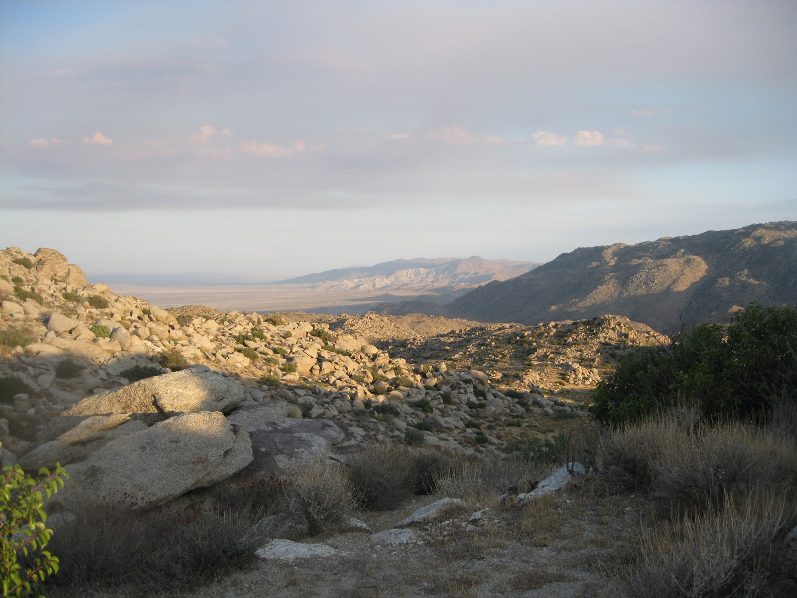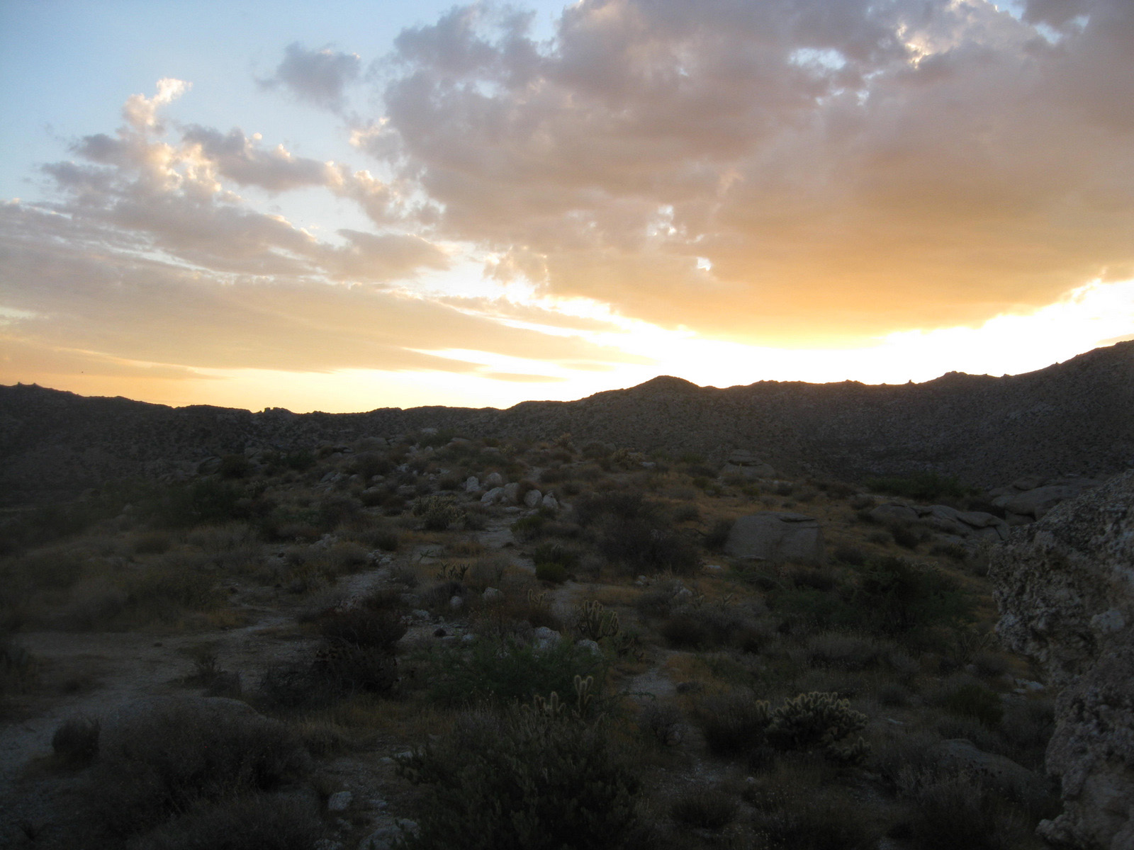 I was itching to get my first sight of Anza Borrego this season, so I rode my motorcycle loaded with camping gear out to the edge of the park, just before the highway drops down into the desert proper. I peeled up a dirt road and hiked up to a viewpoint looking down into the valley, and met an interesting guy (never thought I’d see someone here) on a low-budget 3 week road trip through 4 states. After hiking back down, we put down a few beers together before turning in. Good times, good for the soul.
