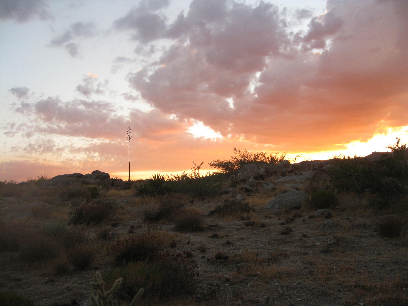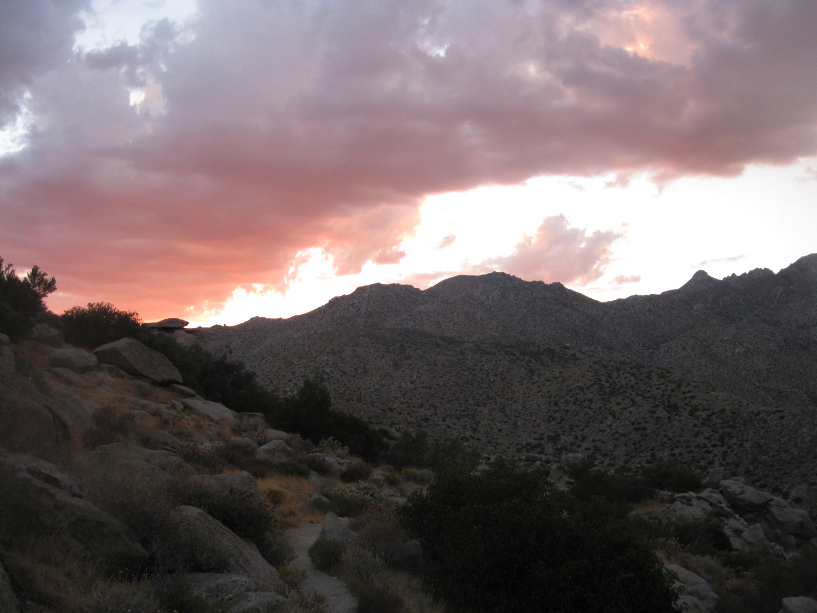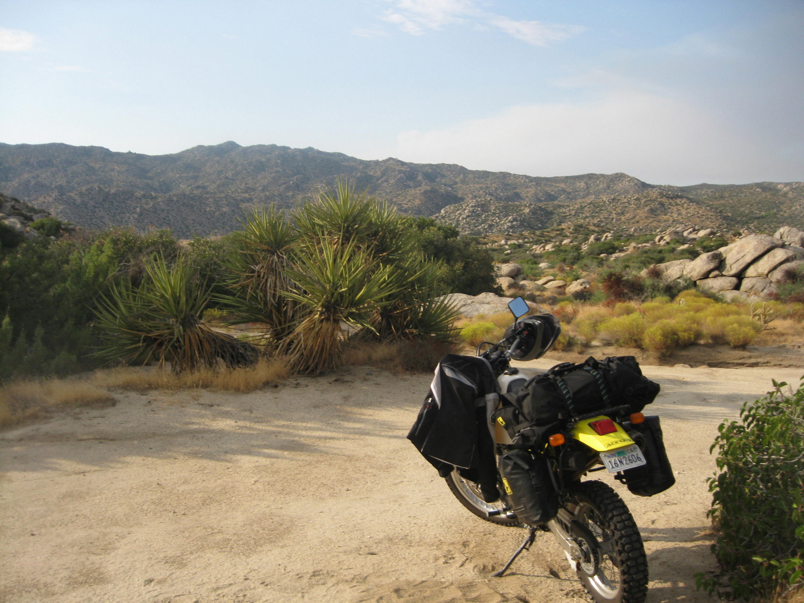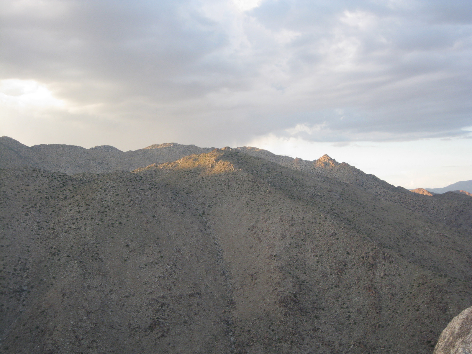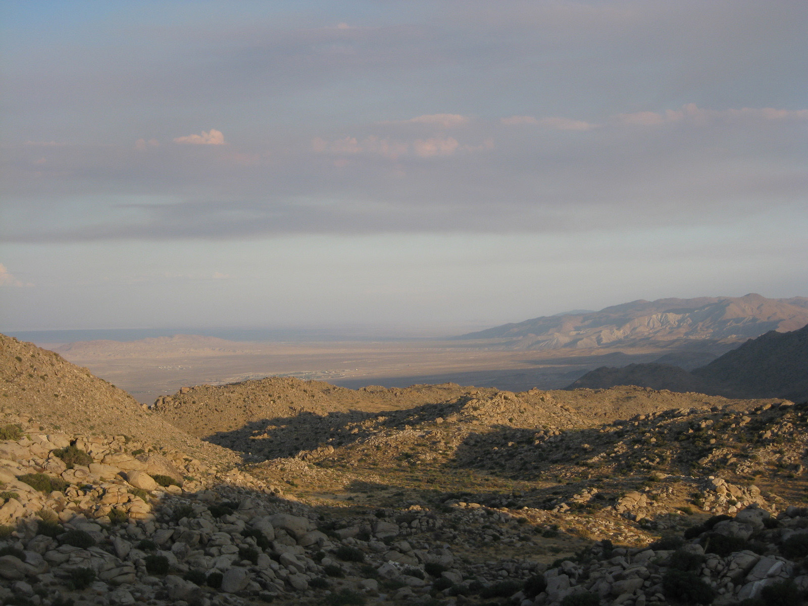 I was itching to get my first sight of Anza Borrego this season, so I rode my motorcycle loaded with camping gear out to the edge of the park, just before the highway drops down into the desert proper. I peeled up a dirt road and hiked up to a viewpoint looking down into the valley, and met an interesting guy (never thought I’d see someone here) on a low-budget 3 week road trip through 4 states. After hiking back down, we put down a few beers together before turning in. Good times, good for the soul.