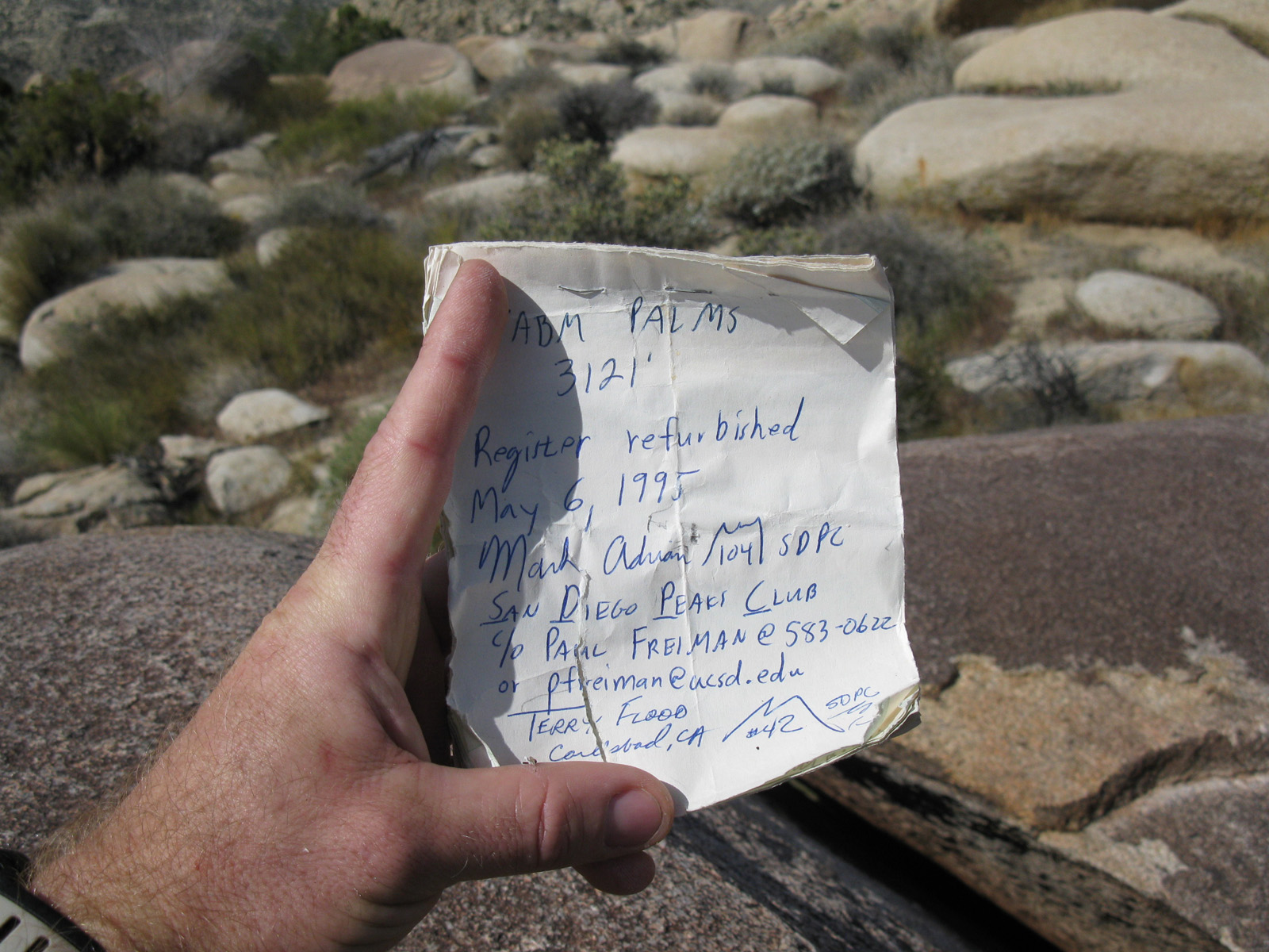I had Friday off, so I was anxious to get back out to Anza Borrego and grab a few of the 6 SDC listed peaks I had left. The Elder and Palms benchmarks would be on the agenda for the day, with an easy crossing of Collins Valley. About a 9 mile hike, with almost all of the 2500 feet of gain contained within just 2 miles. A great day out. Trip report