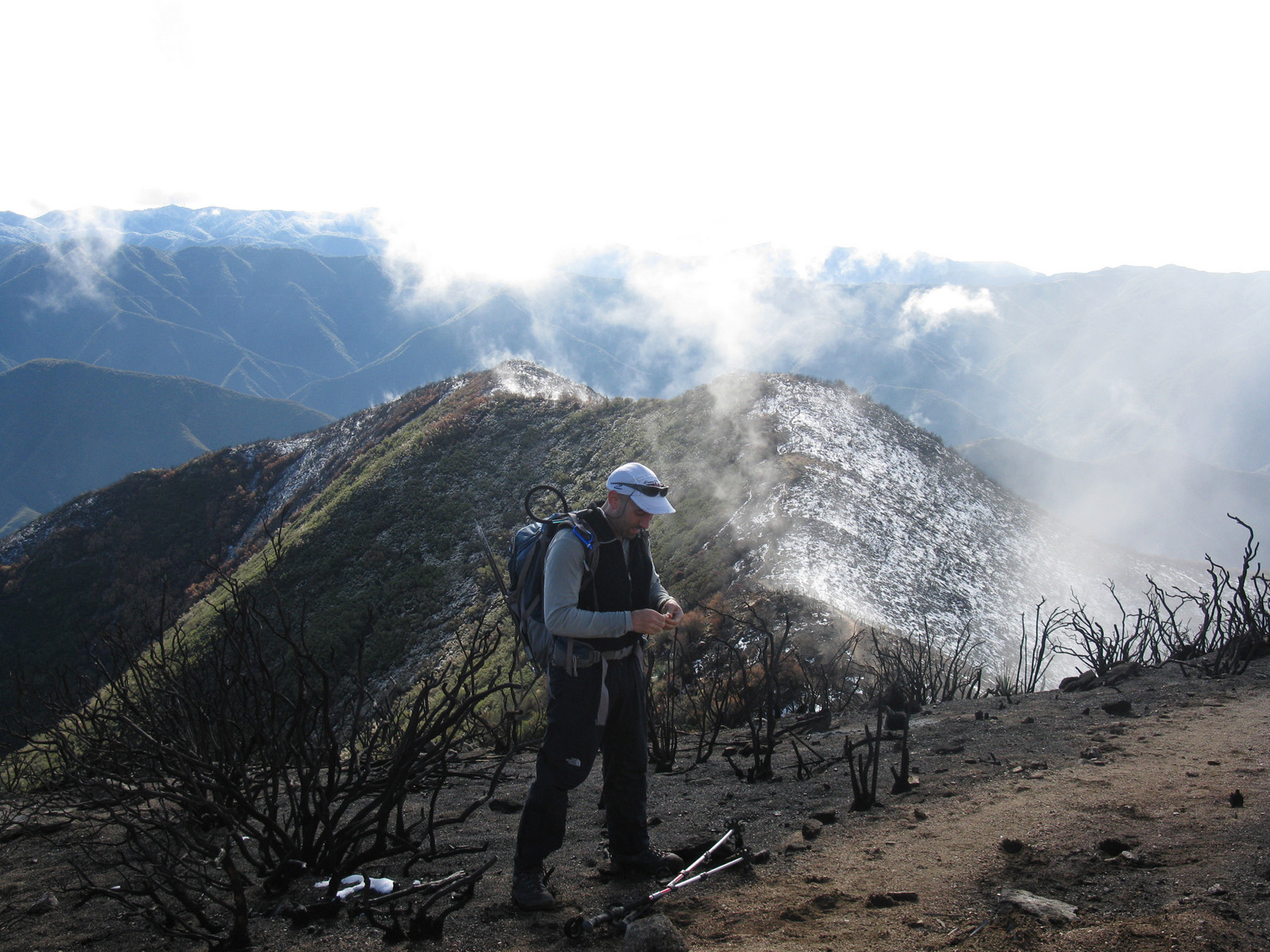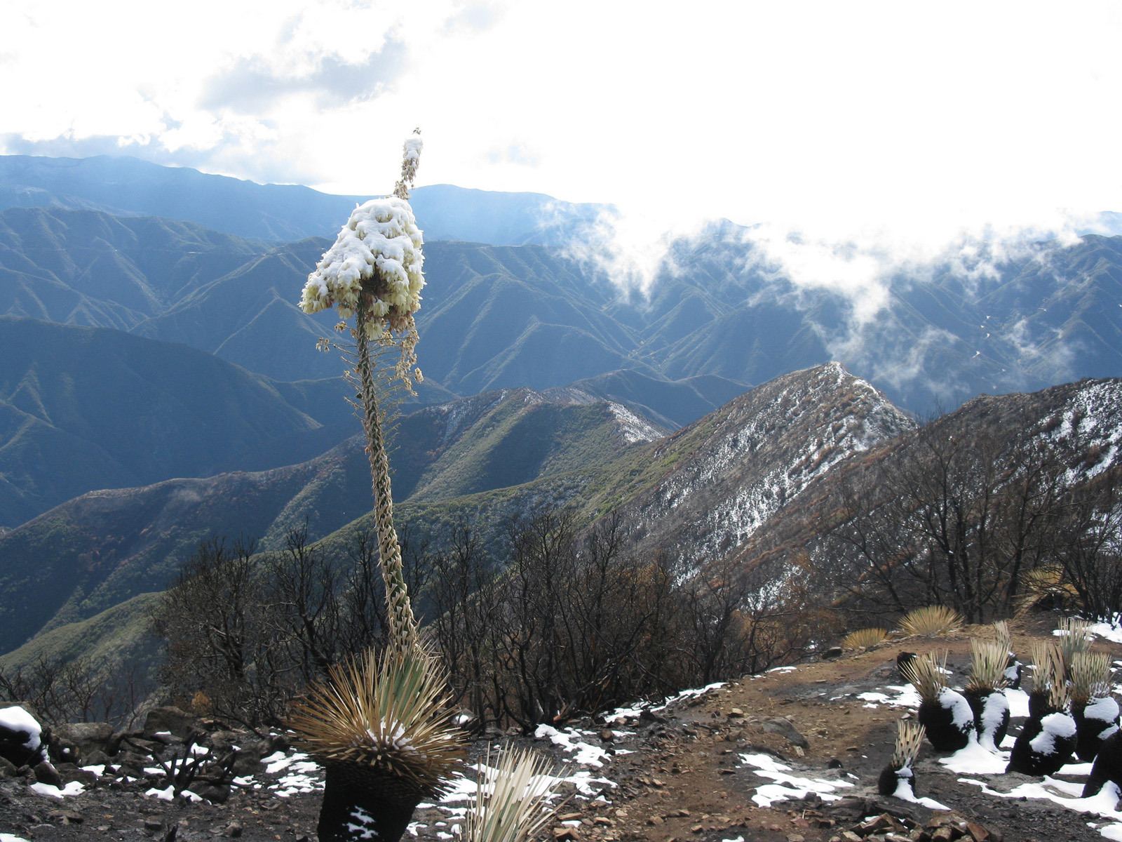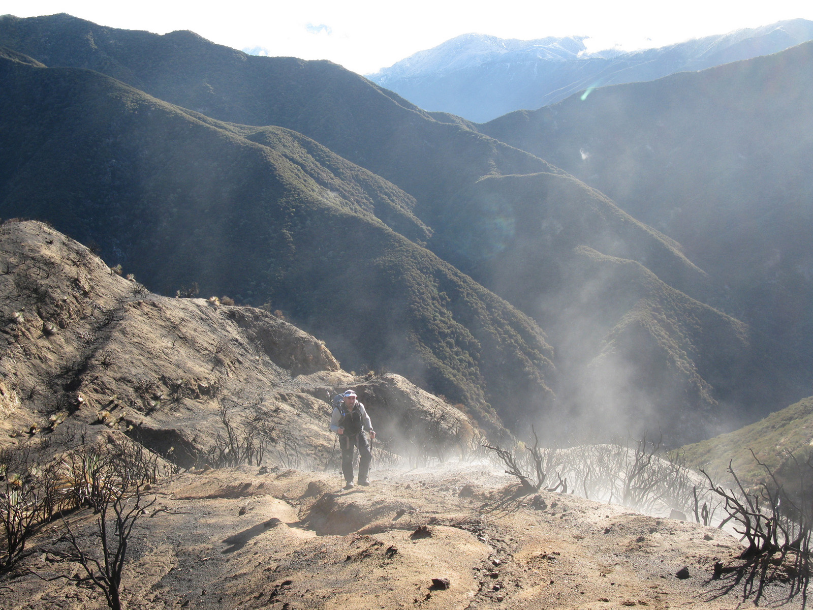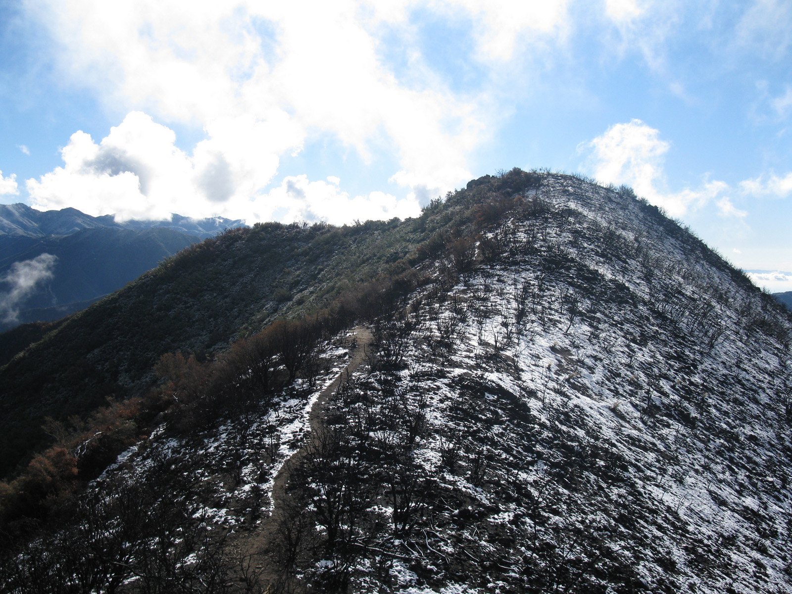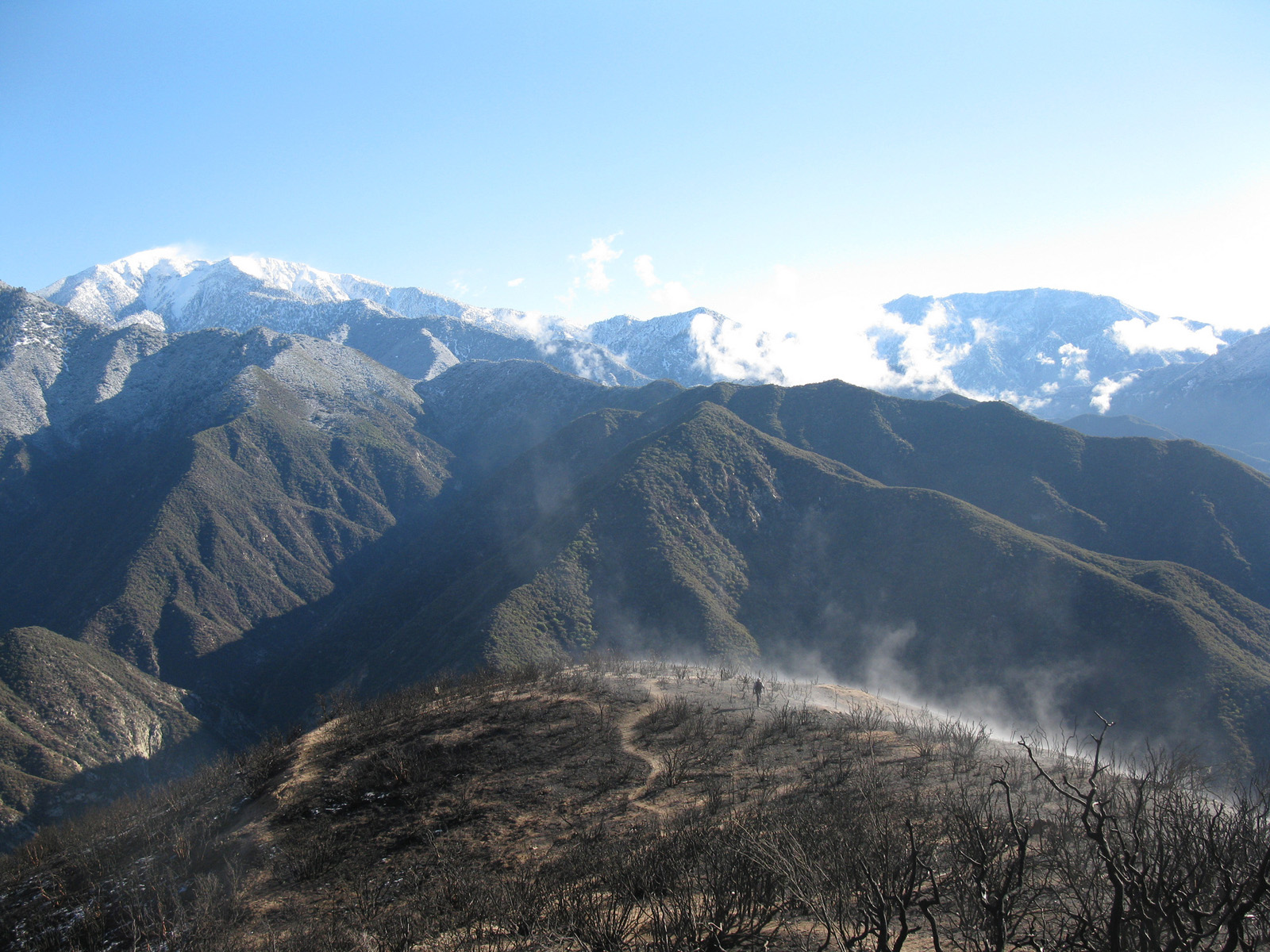 Visiting the San Gabriels the day after the season’s first snow, long time friend Philip Stinis and I hiked up Rattlesnake Peak. An absolutely beautiful (though a bit short) day! The combination of the fresh snow dusting the recently burned area, and mist making it look like the ground was still burning, made for just unreal scenery. I snuck in one pic from a mountain bike ride at Crystal Cove State Park the following day 🙂