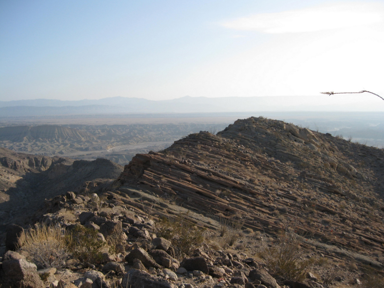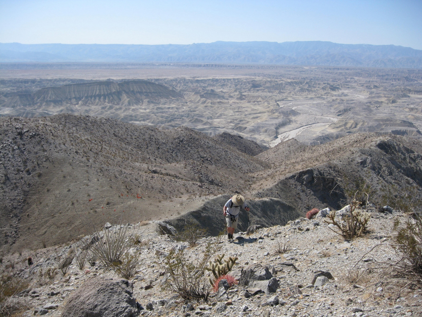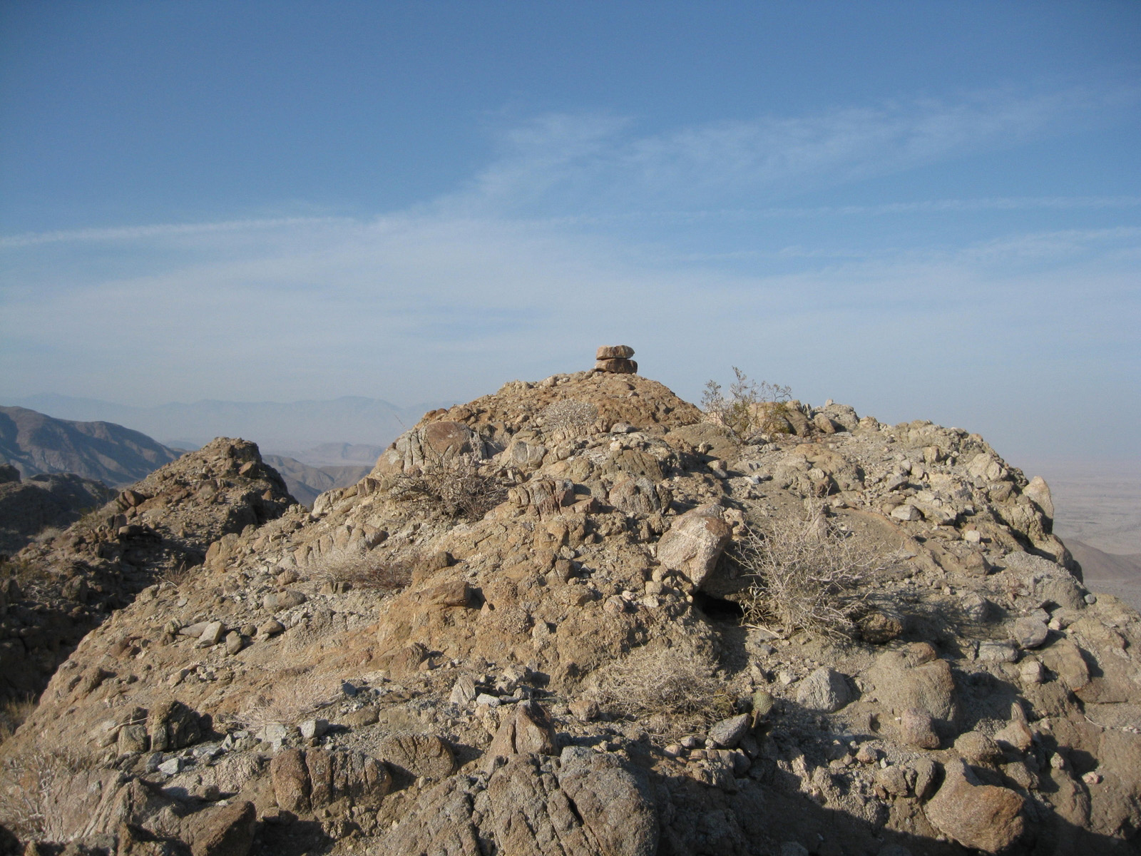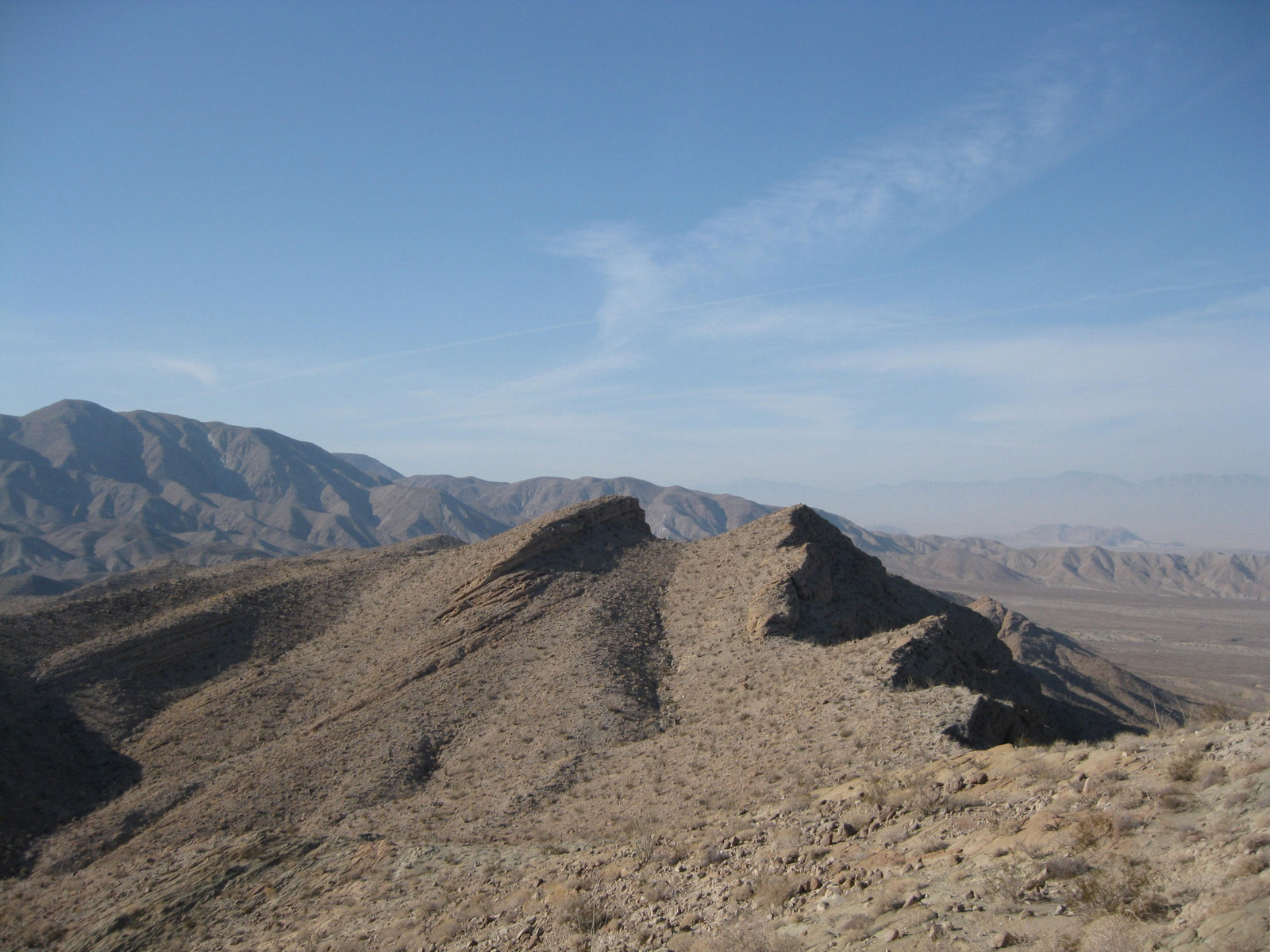 Turning my attention again to the SDC peak list, I hiked 3 high points on Split Mountain in Anza Borrego on Saturday, and took a stroll through Sandstone Canyon to get to a seldom-visited benchmark, Diablo BM, on Sunday. My friend Matt joined me for one of the Split Mountain high points, and kept me company while camping Saturday night. Despite strong wind on Sunday, it was a much-needed eventful weekend.