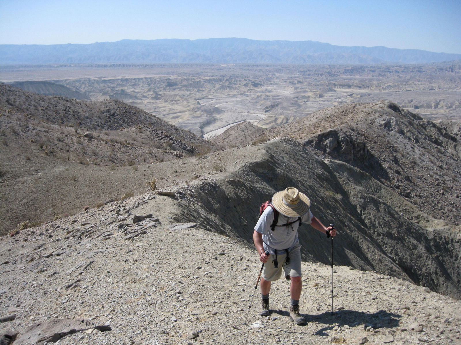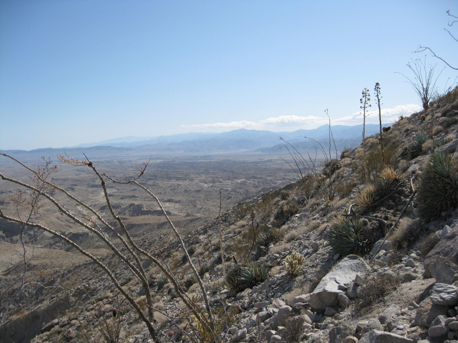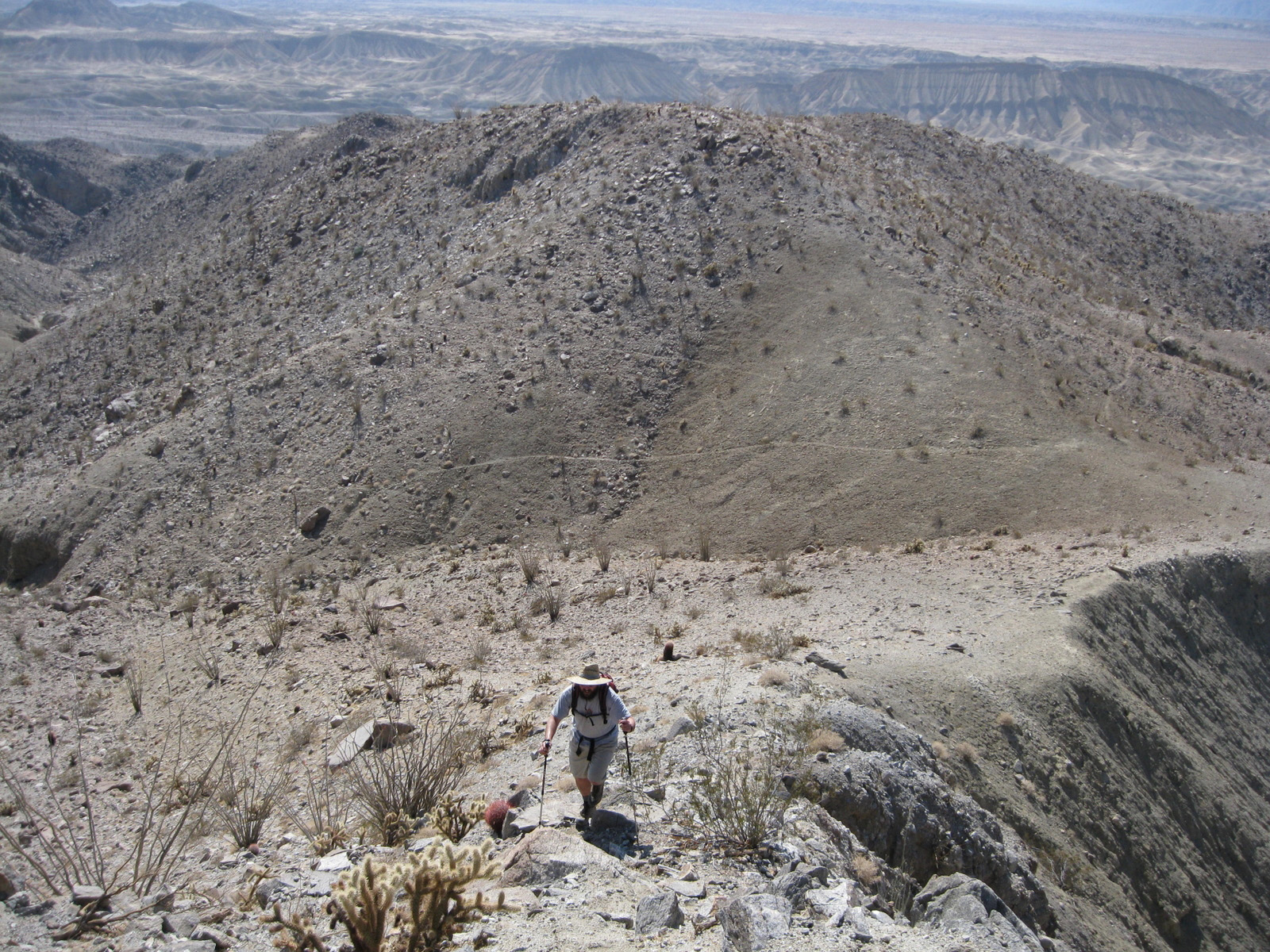 Turning my attention again to the SDC peak list, I hiked 3 high points on Split Mountain in Anza Borrego on Saturday, and took a stroll through Sandstone Canyon to get to a seldom-visited benchmark, Diablo BM, on Sunday. My friend Matt joined me for one of the Split Mountain high points, and kept me company while camping Saturday night. Despite strong wind on Sunday, it was a much-needed eventful weekend.