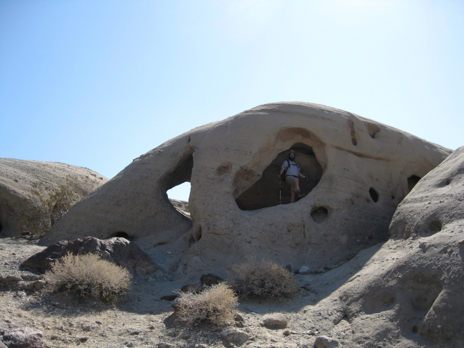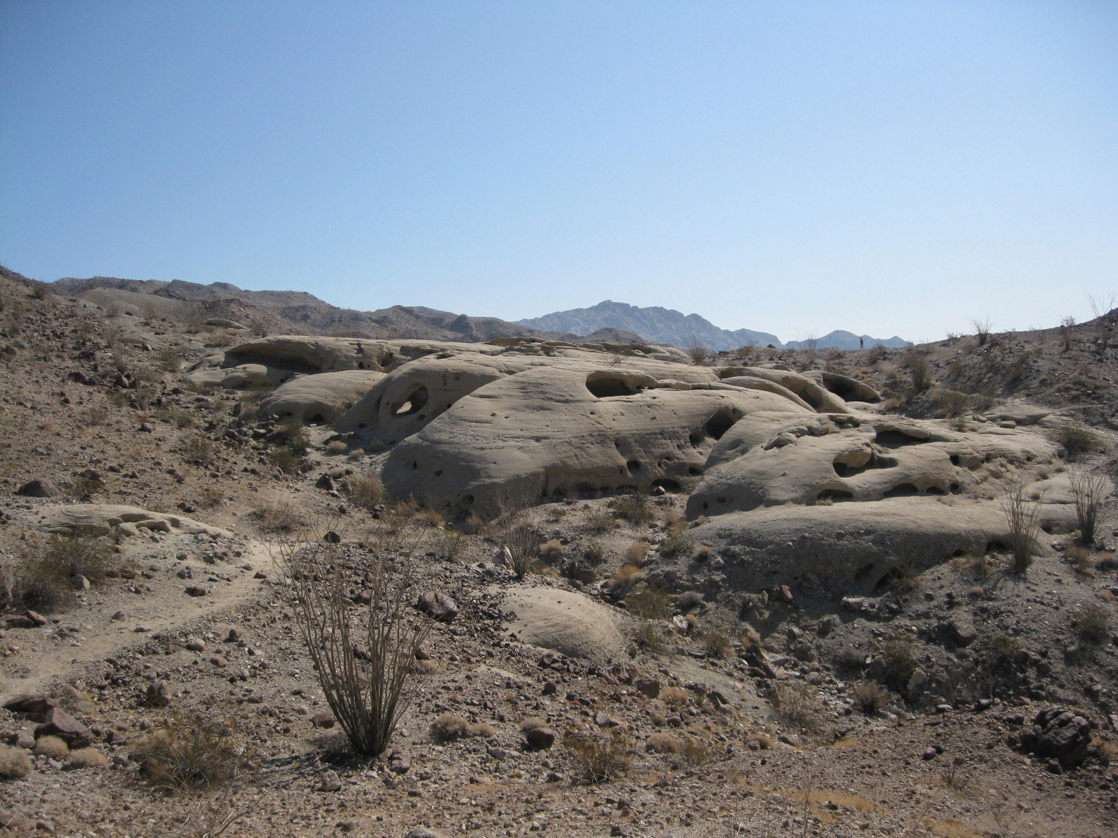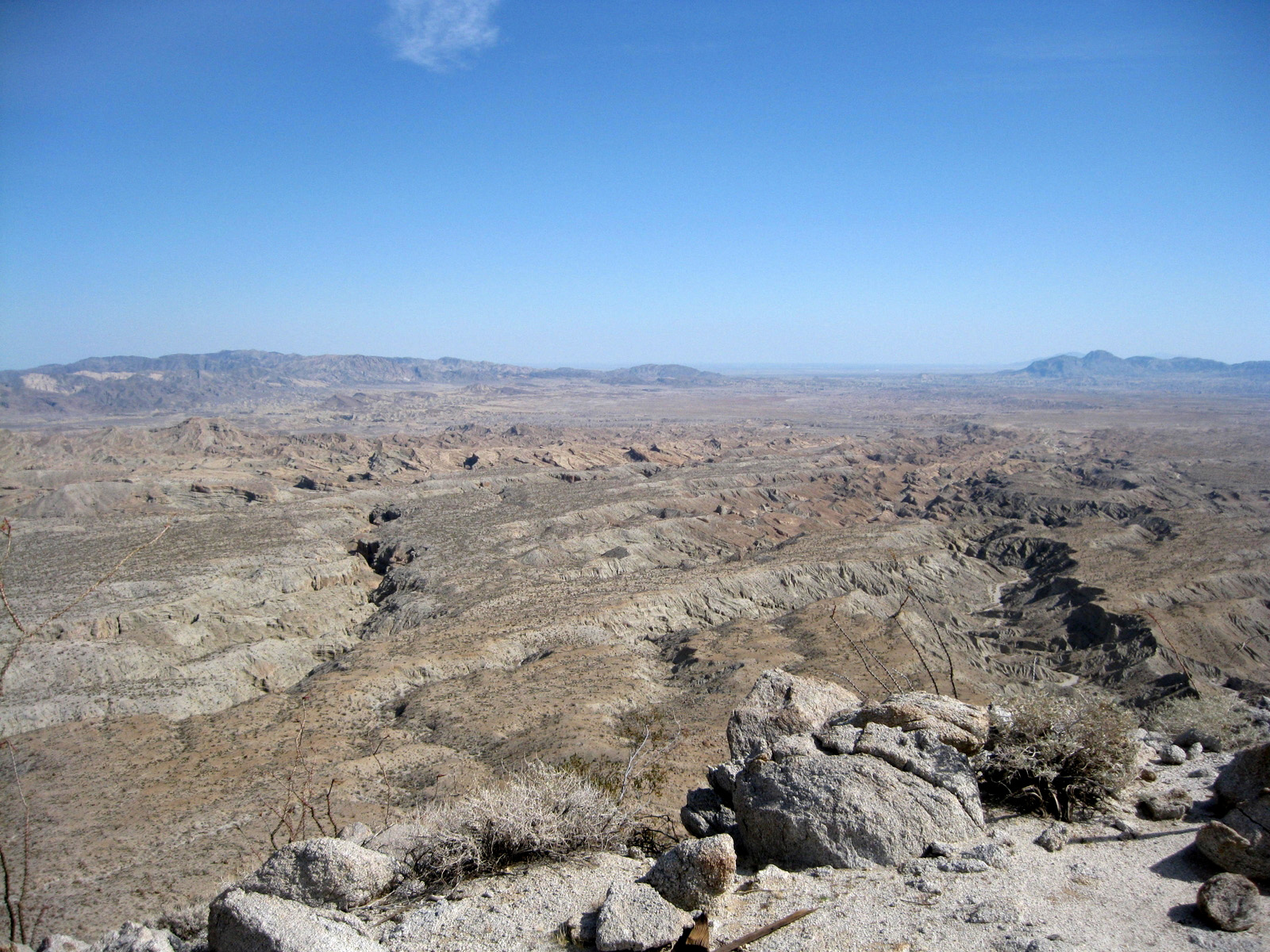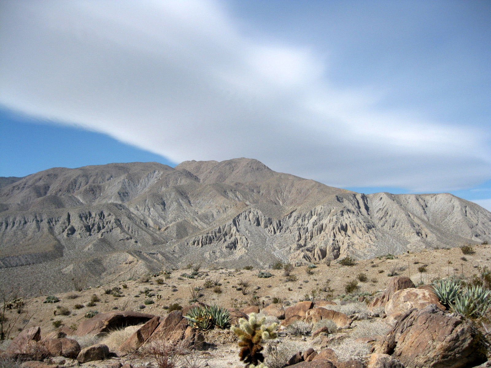 Turning my attention again to the SDC peak list, I hiked 3 high points on Split Mountain in Anza Borrego on Saturday, and took a stroll through Sandstone Canyon to get to a seldom-visited benchmark, Diablo BM, on Sunday. My friend Matt joined me for one of the Split Mountain high points, and kept me company while camping Saturday night. Despite strong wind on Sunday, it was a much-needed eventful weekend.