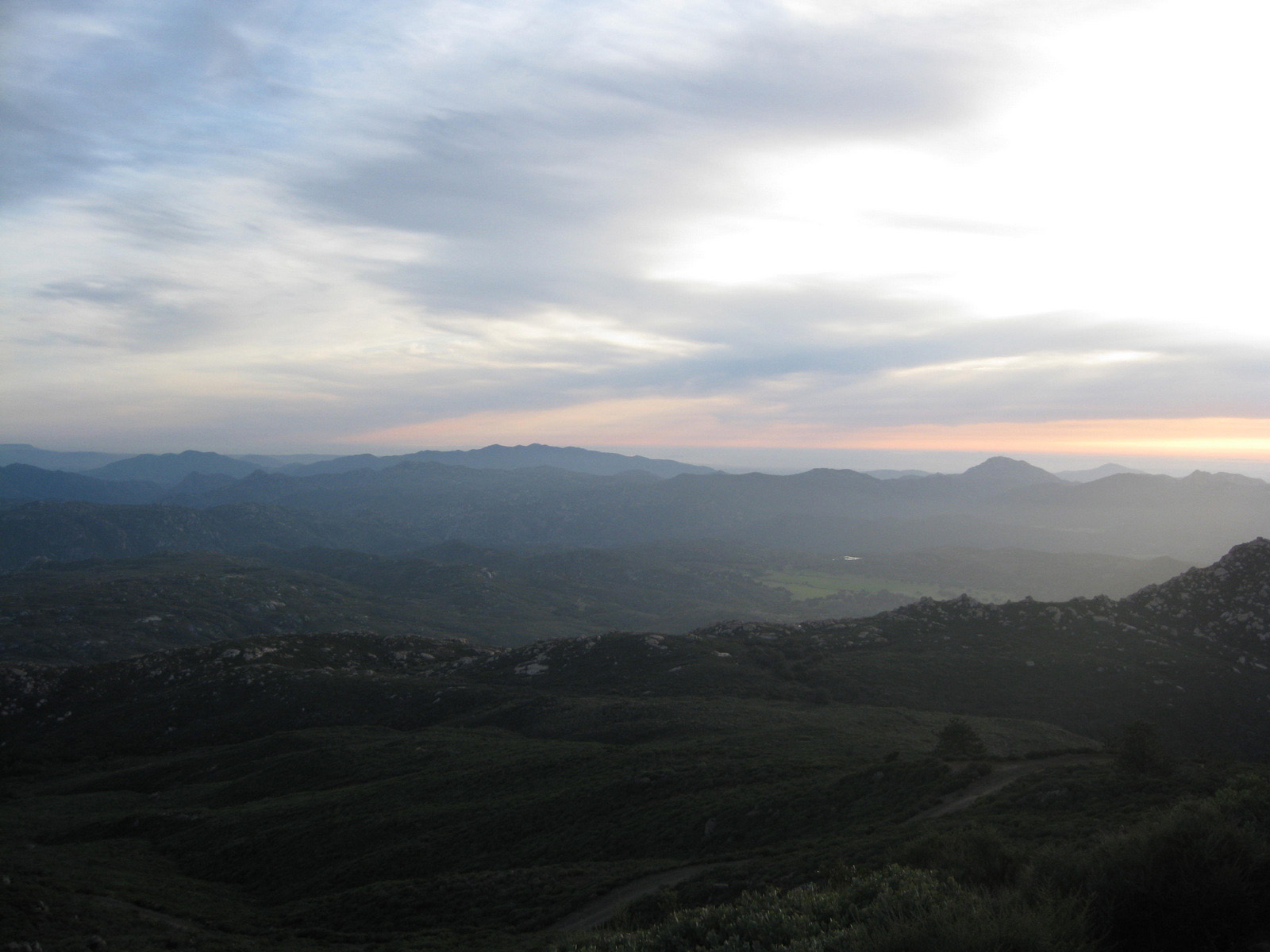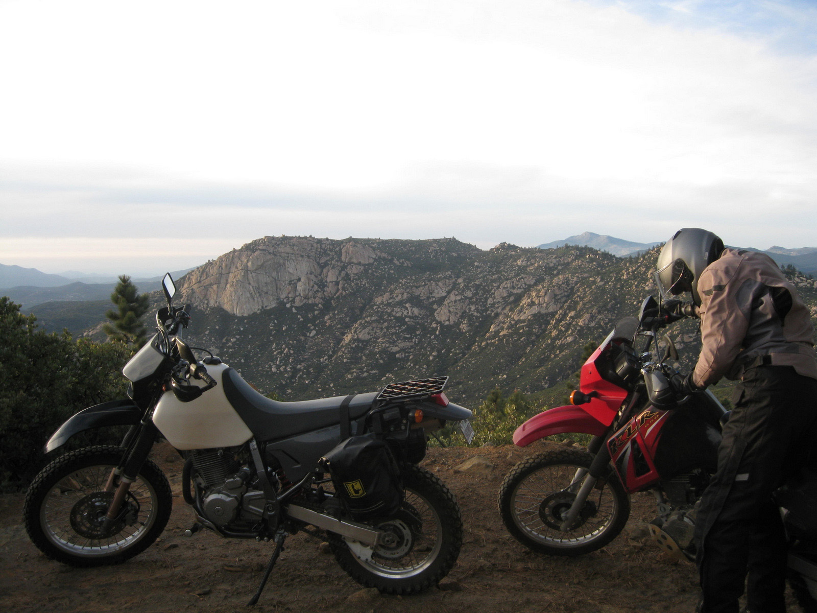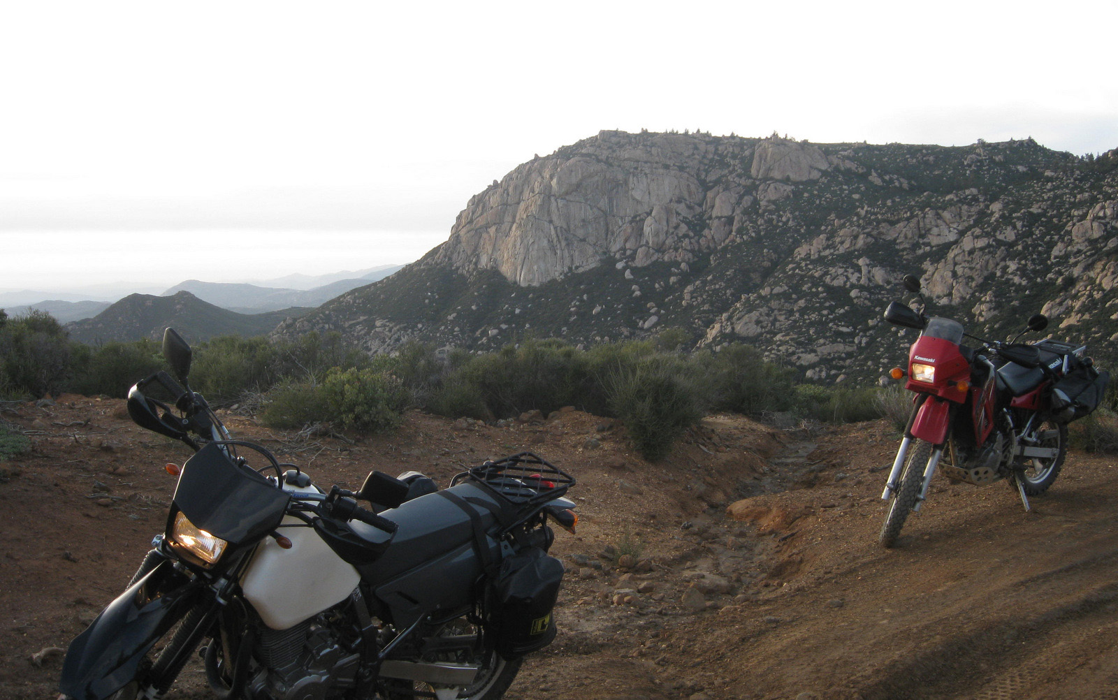 I met with my friend Christian at a park’n’ride lot on a midweek afternoon, both of us on dual-sport motorcycles. We rode out to and up and over Los Pinos Mountain near Campo, descending rough dirt roads to the starting point for Corte Madera. We made the beautiful hike up to Corte Madera’s summit before heading back out on the bikes though Julian via the Sunrise Highway, returning home well after dark with bellies full of great Mexican food. A great Wednesday!