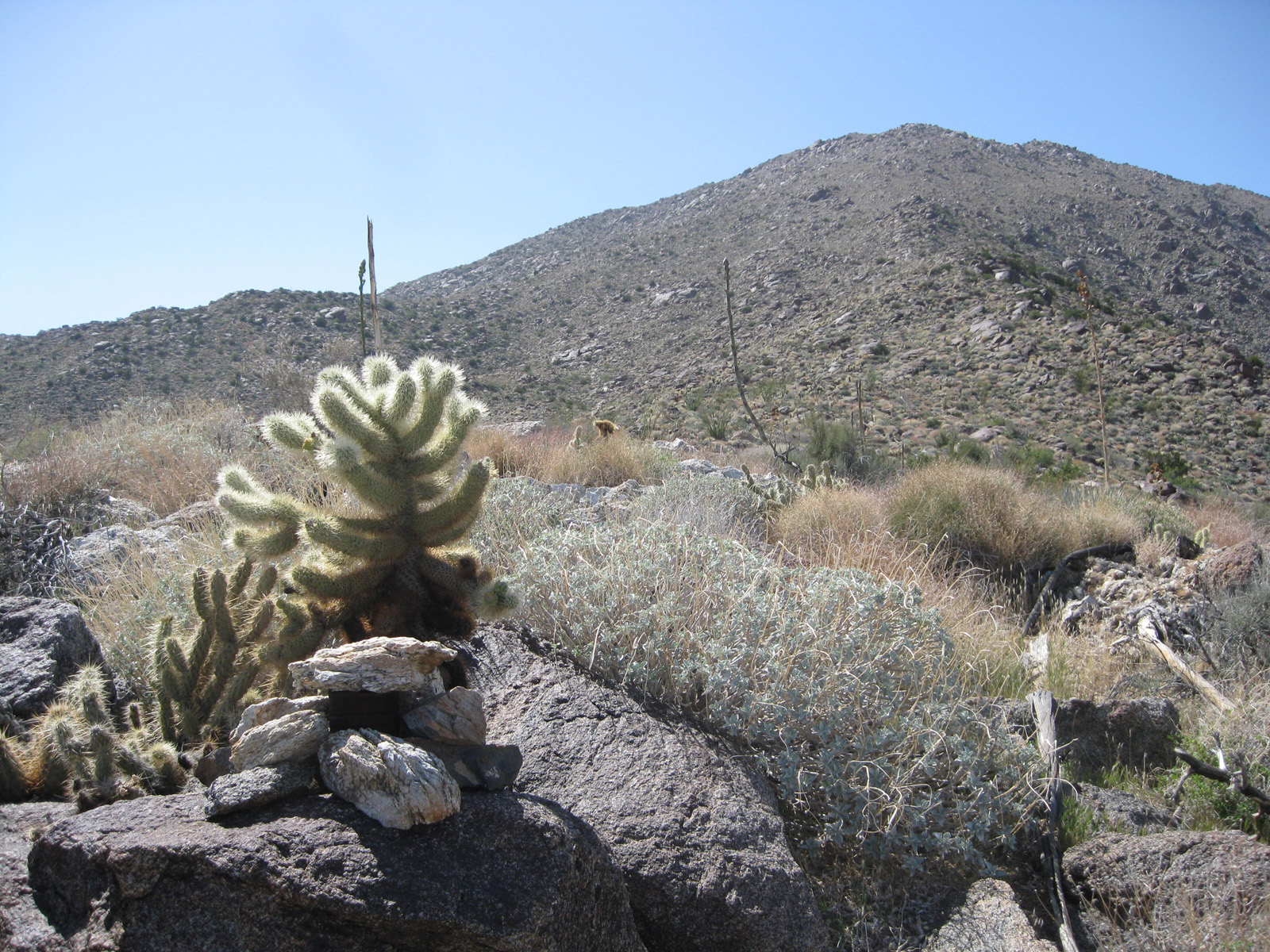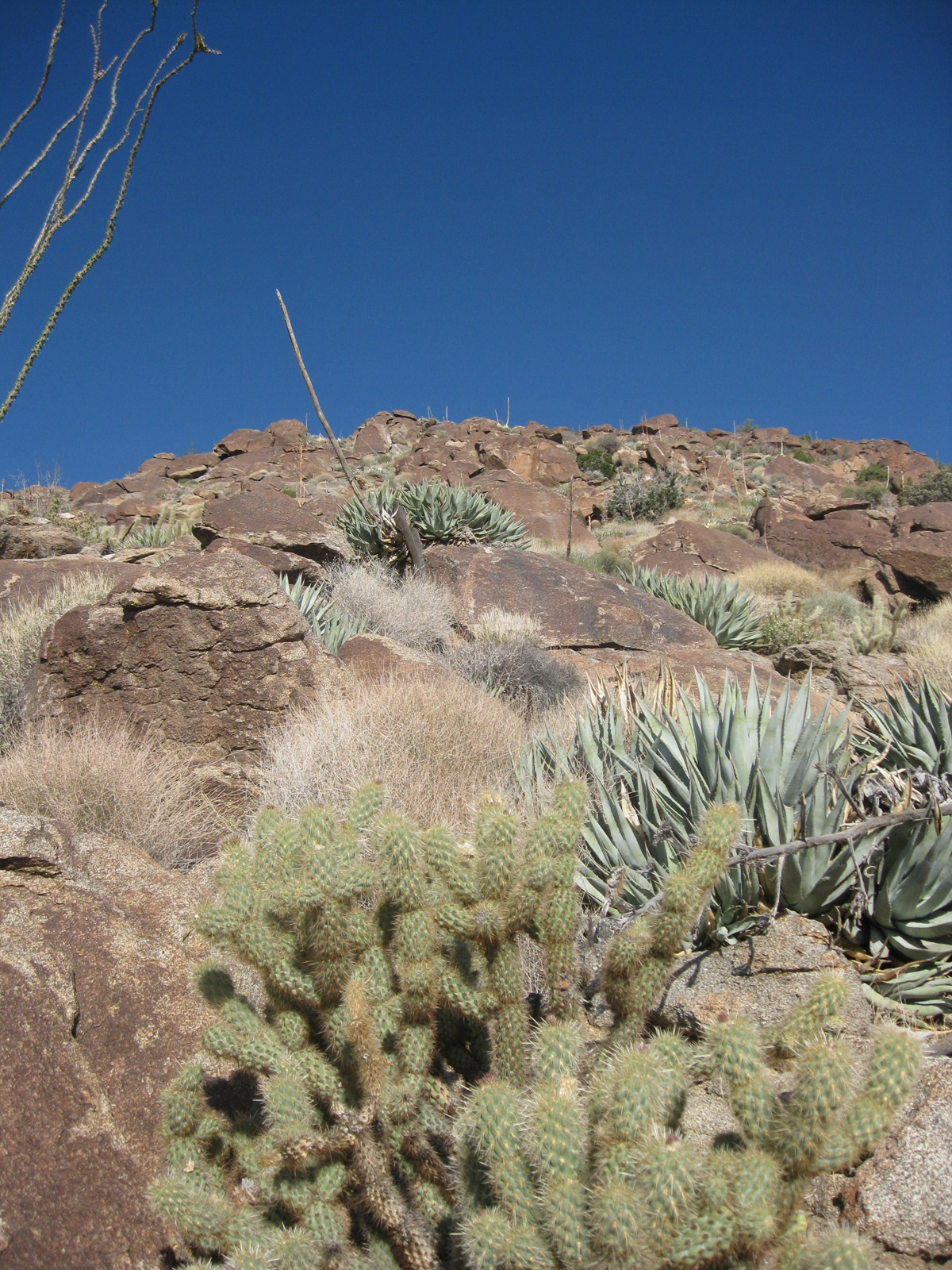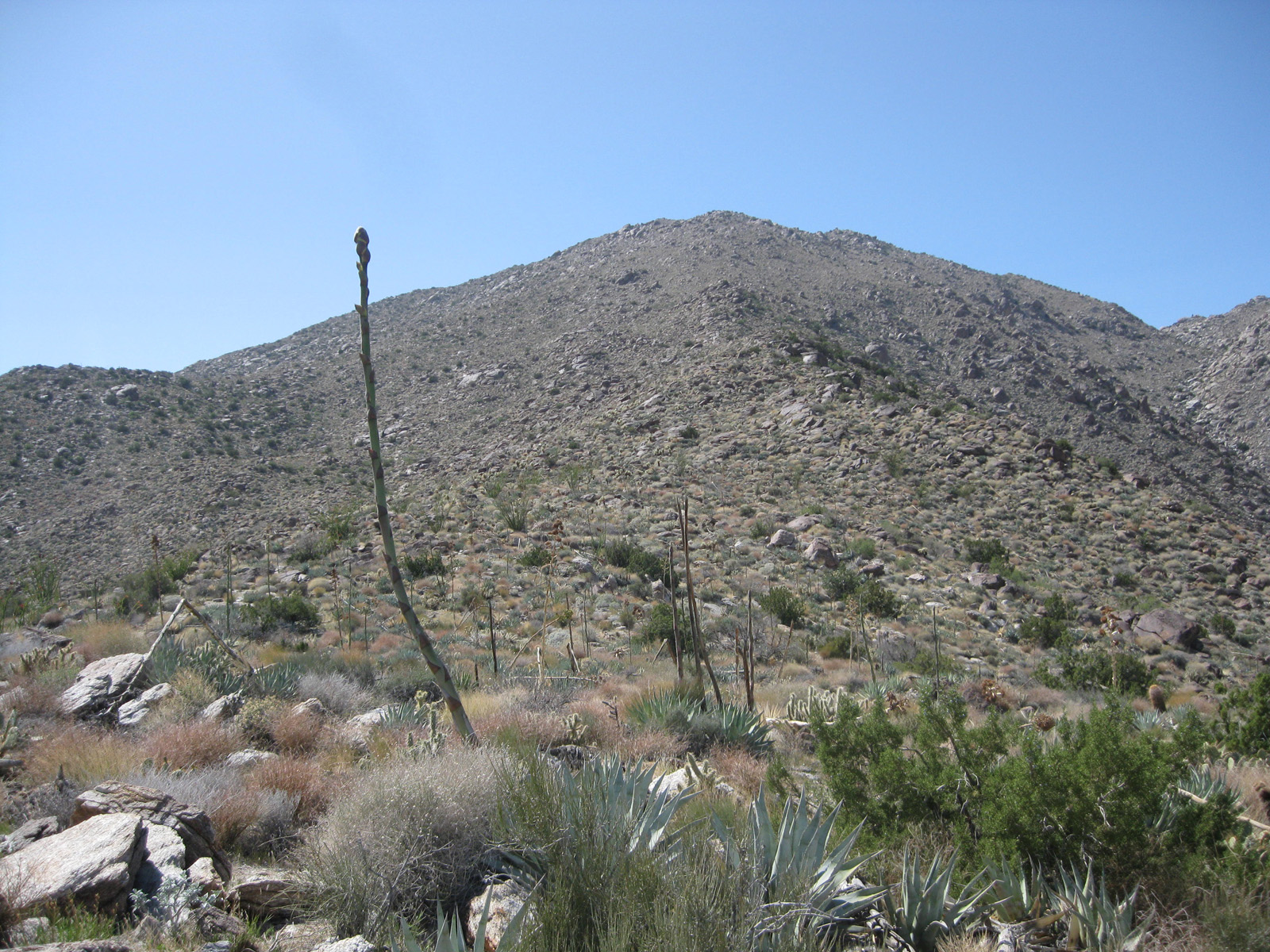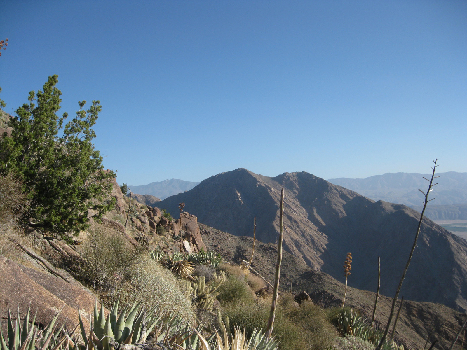 Ticking off one of the harder San Diego County peaks list based hikes I had left, I hiked up one of the many ridges heading towards Hellhole Flat from the desert floor near Borrego Springs. At 5400′ of gain/loss in 9.5 miles roundtrip, it was a rather steep hike, and I started at sunrise in order to beat the heat. Making it to San Ysidro’s East summit and “The Sirens”, as well as the Ode, Kay, Webo, and Ted benchmarks, and deer, tarantula, and vulture sightings, it was a successful day! Trip report