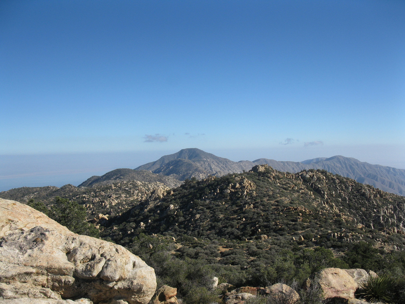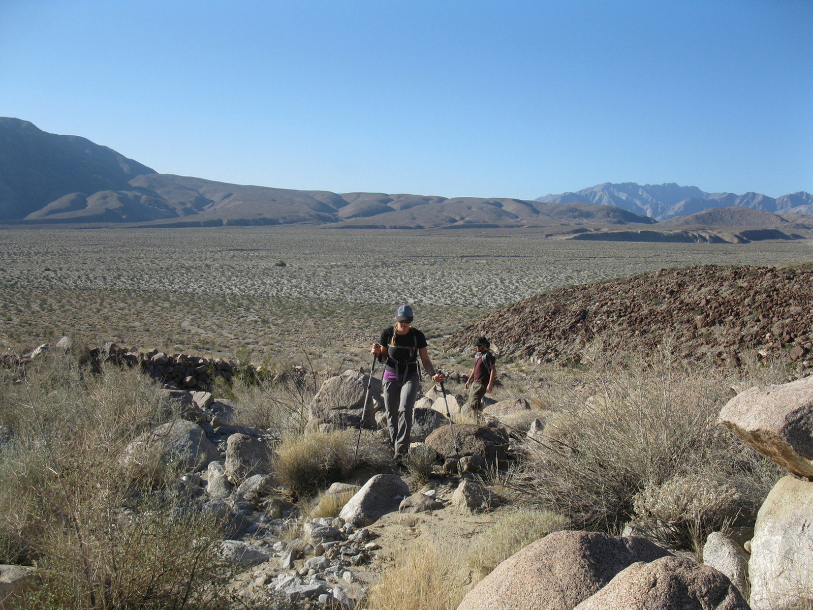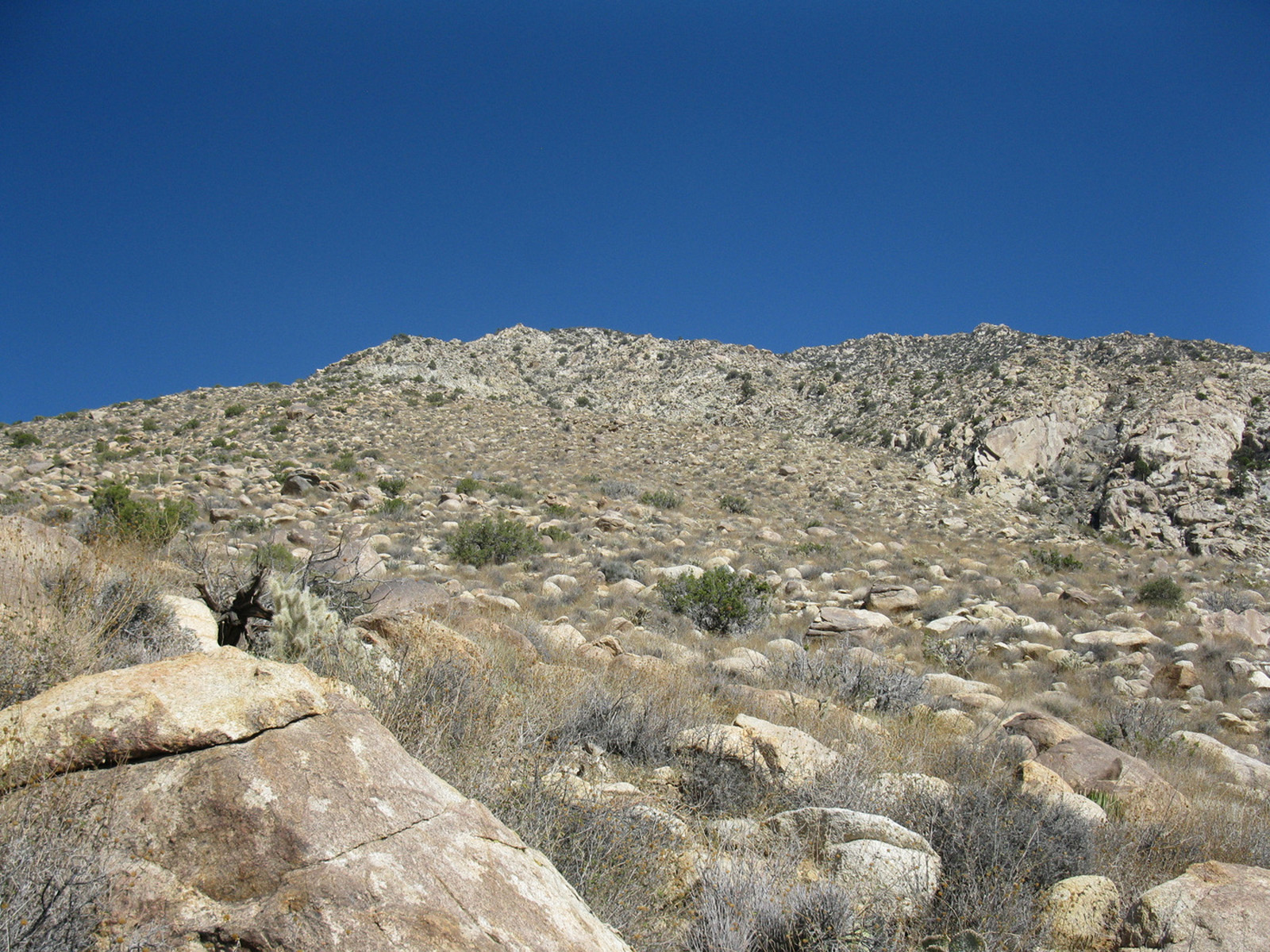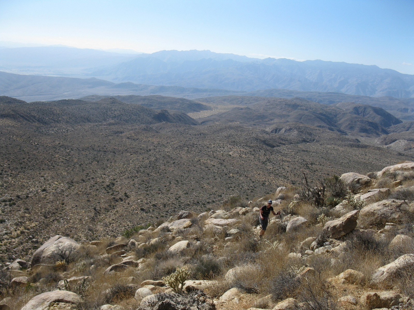 Peak 6582 (aka Lorenzens Peak, aka Dawns Peak) was really the only peak around Anza Borrego that I’d yet to hit. One of the more strenuous peaks in the area, the ascent includes a series of ridges and sandy washes that lead up to a plateau below the peak, followed by a sharp 3000 foot ascent in less than a mile to the summit. I spent the previous evening and night with friends Jeff Manchester (+ dog Gravy) and April Goebl, hiking through a slot canyon, and then enjoying a few beers near Clark Dry Lake Bed. The 4 of us started off for P6582 the next morning, checked out some pictographs en route, and April and I continued on as Jeff and Gravy peeled off to check out some other desert sights as planned. April and I had beautiful weather and views after sweating it out on the final ascent, arrived back at the car just after dark, and enjoyed a nice meal at Carlee’s back in Borrego Springs before the drive home. A very fulfilling short and last-minute weekend J