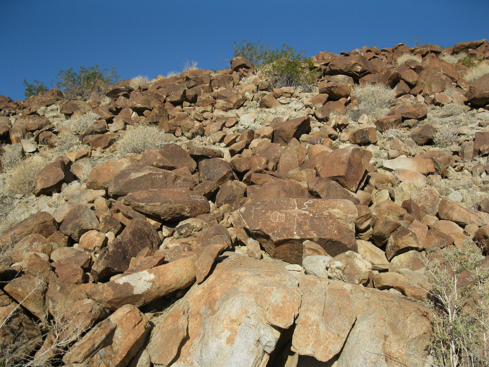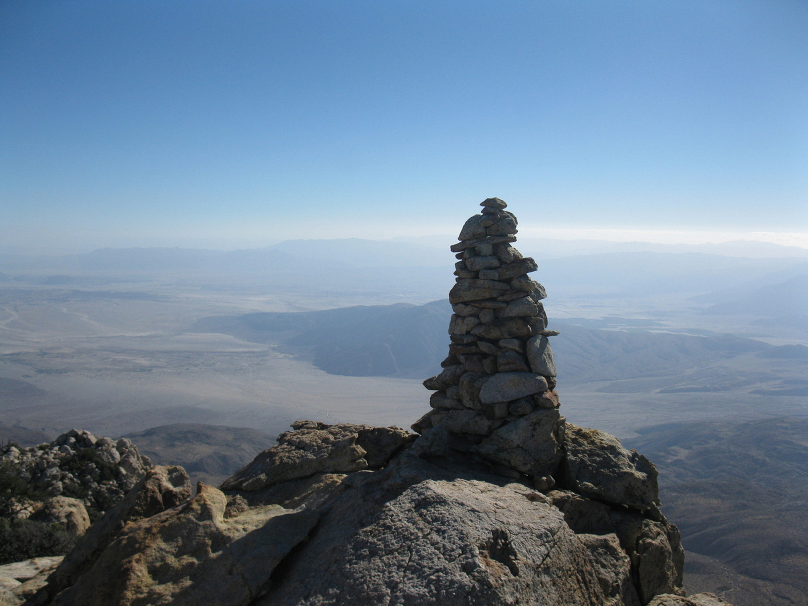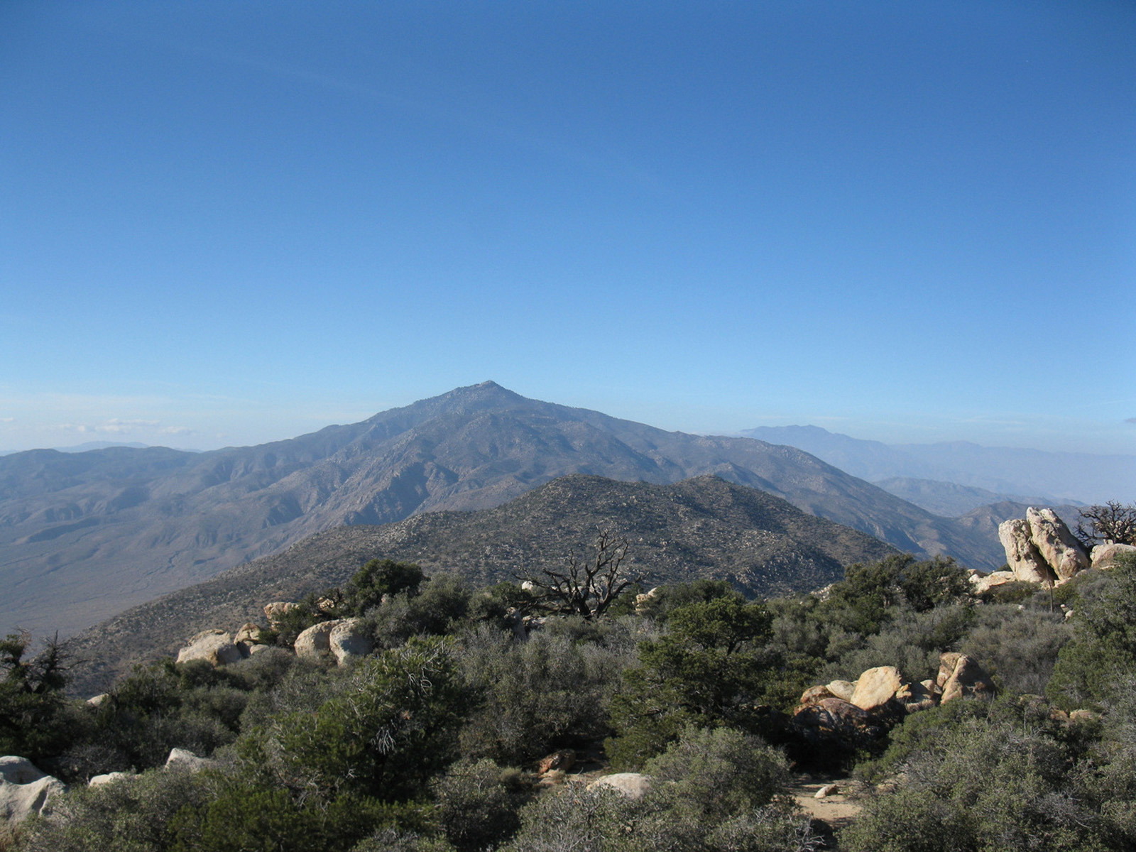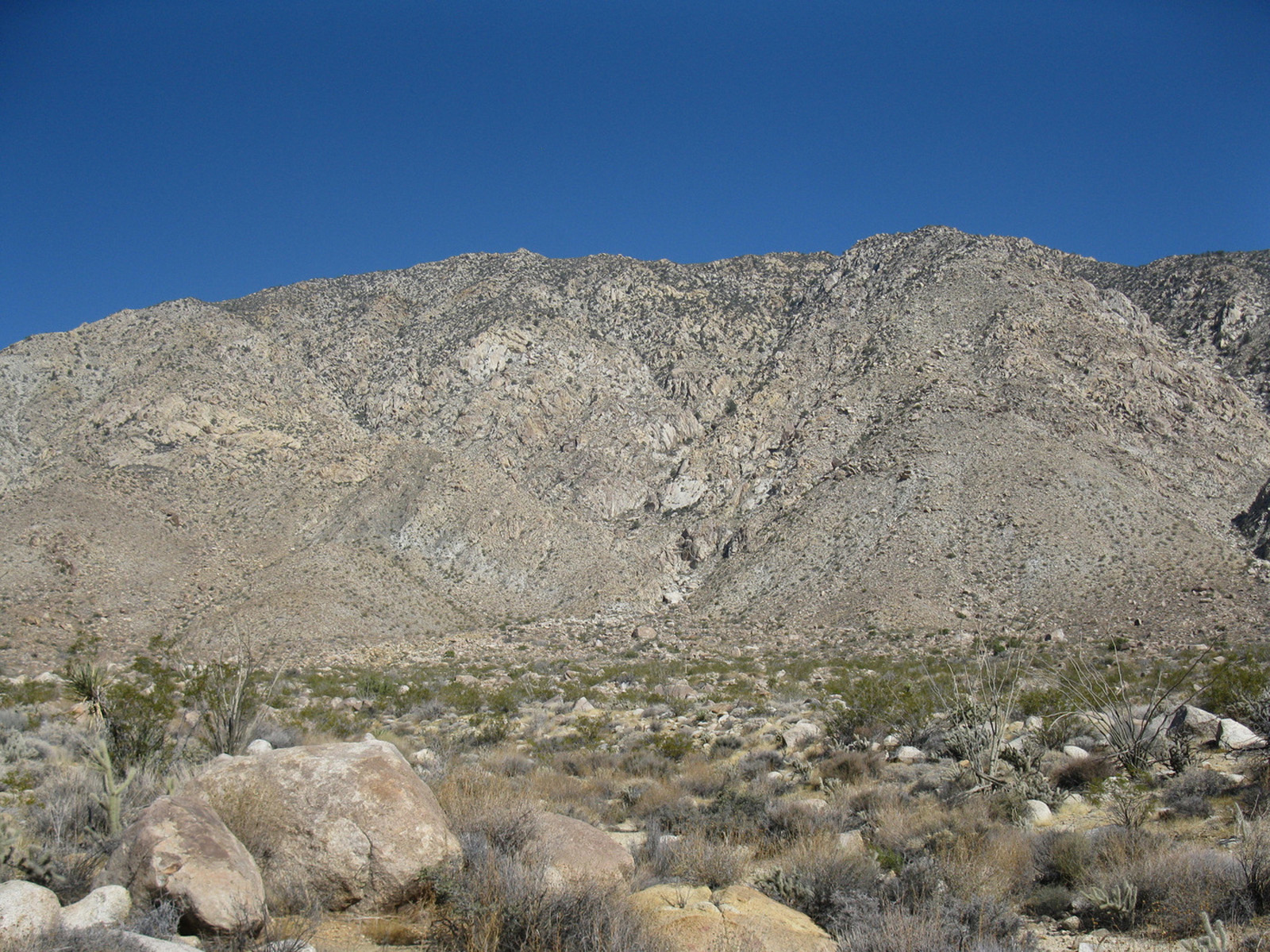 Peak 6582 (aka Lorenzens Peak, aka Dawns Peak) was really the only peak around Anza Borrego that I’d yet to hit. One of the more strenuous peaks in the area, the ascent includes a series of ridges and sandy washes that lead up to a plateau below the peak, followed by a sharp 3000 foot ascent in less than a mile to the summit. I spent the previous evening and night with friends Jeff Manchester (+ dog Gravy) and April Goebl, hiking through a slot canyon, and then enjoying a few beers near Clark Dry Lake Bed. The 4 of us started off for P6582 the next morning, checked out some pictographs en route, and April and I continued on as Jeff and Gravy peeled off to check out some other desert sights as planned. April and I had beautiful weather and views after sweating it out on the final ascent, arrived back at the car just after dark, and enjoyed a nice meal at Carlee’s back in Borrego Springs before the drive home. A very fulfilling short and last-minute weekend J