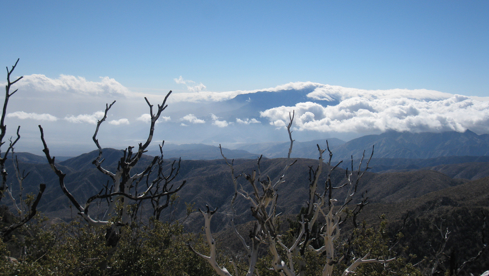After a few days rest at my grandparents house in Palm Desert (a welcomed break after the previous weeks), I was ready for more HPS peak mayhem…I hit Chaparossa Mountain (pics 1-5) on my way to meet April Goeble near Angeles Oaks, where we hiked Constance Mountain (pic 6) before crashing out near the Vivian Creek trailhead. Sunday, we hiked Yucaipa Ridge (pics 7-16), starting with a steep ascent up Little San Gorgonio Mountain, then traversing west over Wilshire Mountain, Wilshire Peak, Oak Glen, Cedar, Birch, and finishing on Allen Peak, before descending through the Bear Paw Reserve (permission granted ahead of time). It was quite an amazing day, with time to relax in the warm sun on some inviting rocks on a few of the summits.
