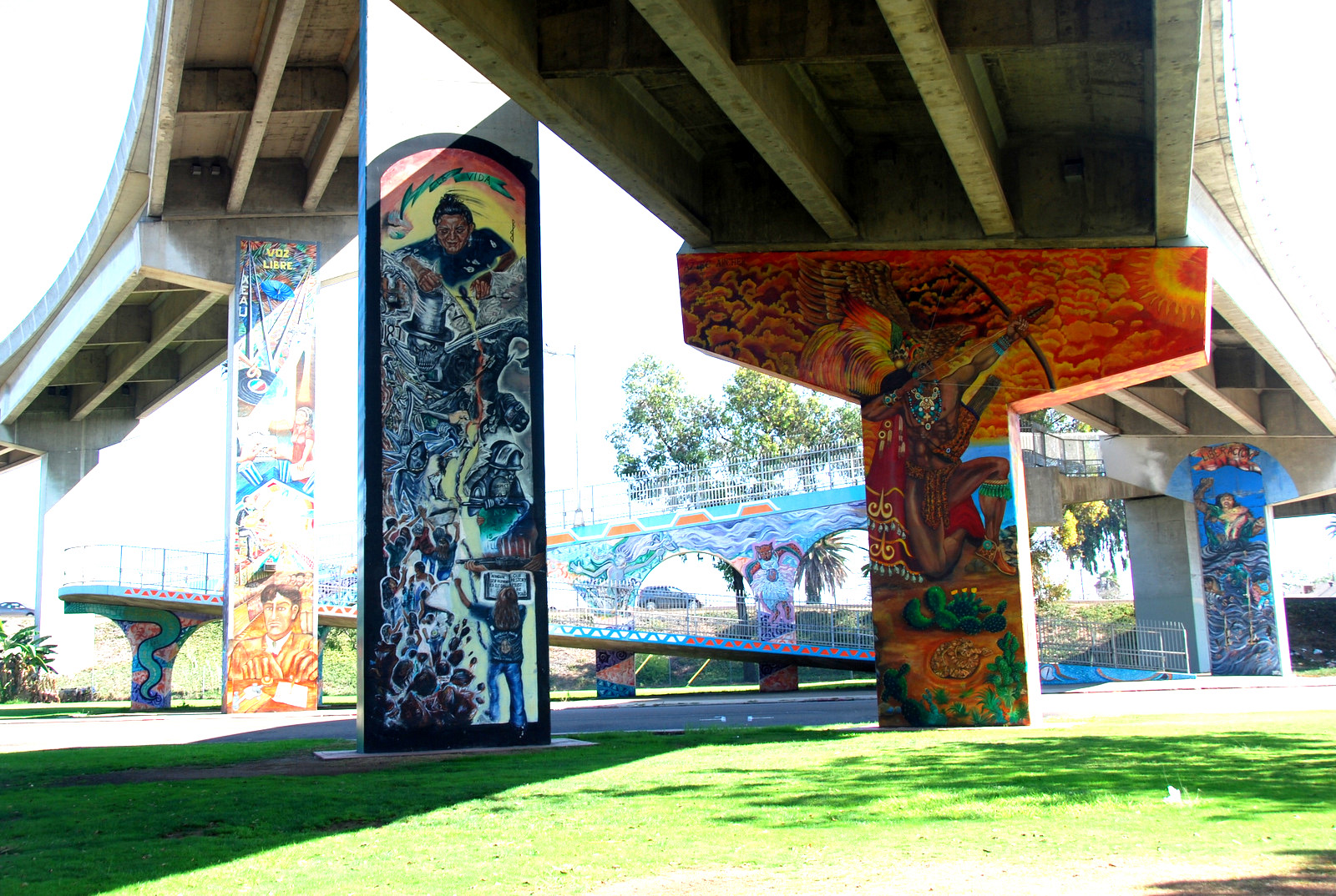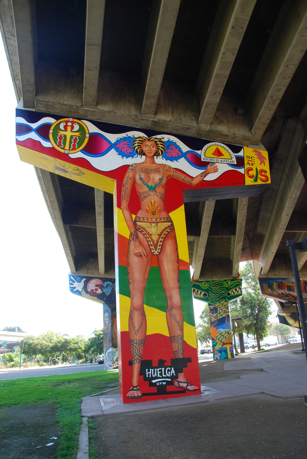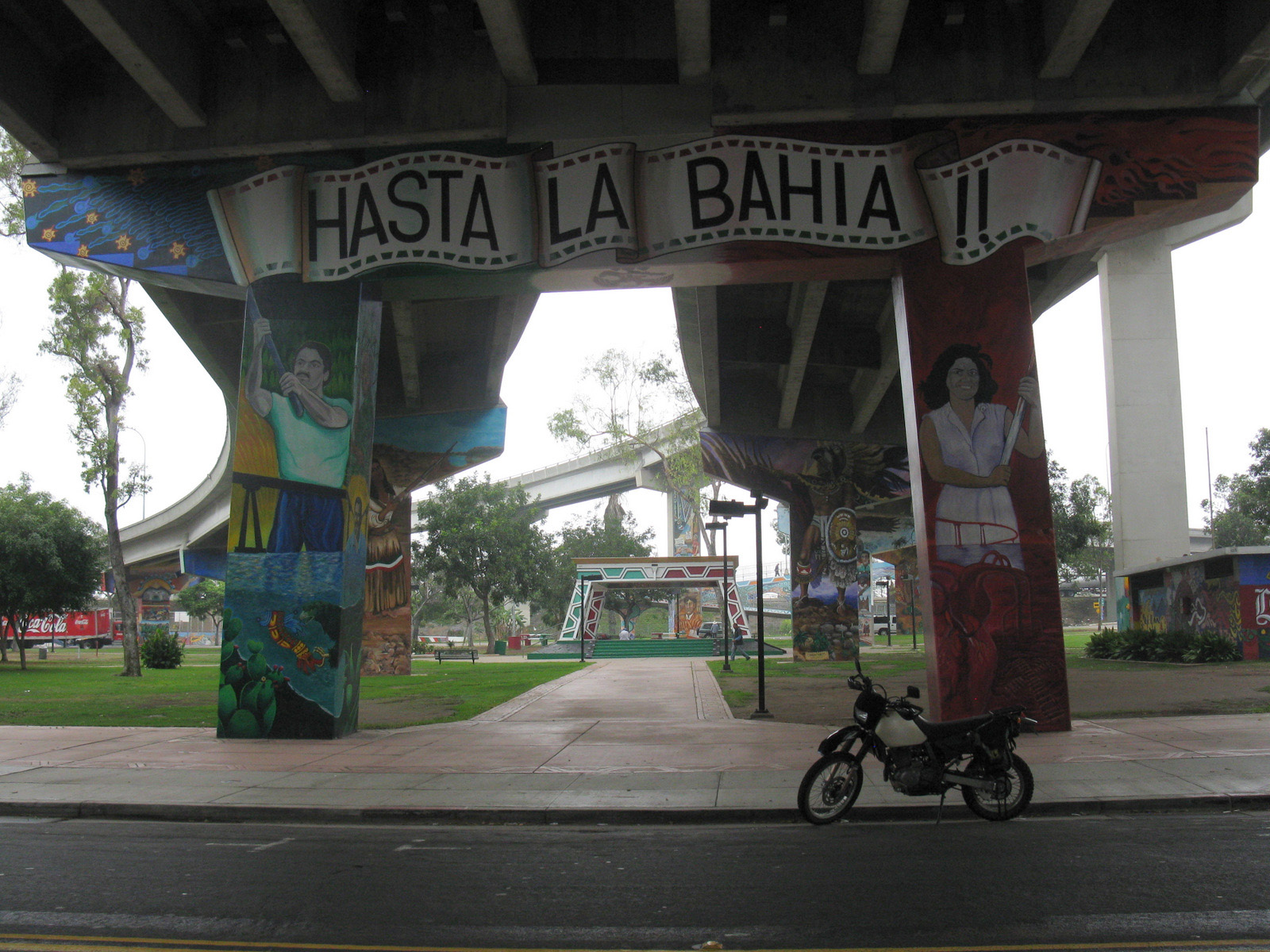 Saturday – I was off by 7am, and was through Coronado and on the Silver Strand by 7:30. It was foggy with light rain, and I pulled over often to clean the visor on my helmet. Still, on a narrow strip of land with ocean on both sides, it was a great ride. I went down to Imperial Beach, and took a quick stroll up to the sand before heading back, touring a bit of Coronado on the way. I took another quick detour to check out Chicano Park, a place I’d first heard of while randomly catching a documentary about the Logan Heights street gang. I was quite impressed, but I had limited time so didn’t stay more than a few minutes. That night, I did a bit of research on the park, and was fascinated by the rich history. So fascinated in fact, that I re-visited the park the next day…
