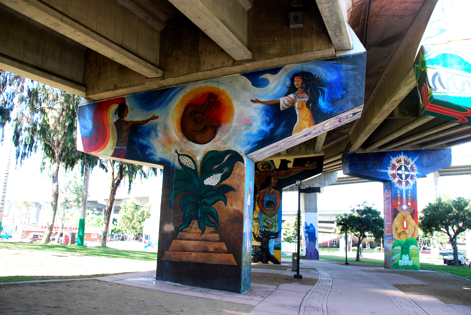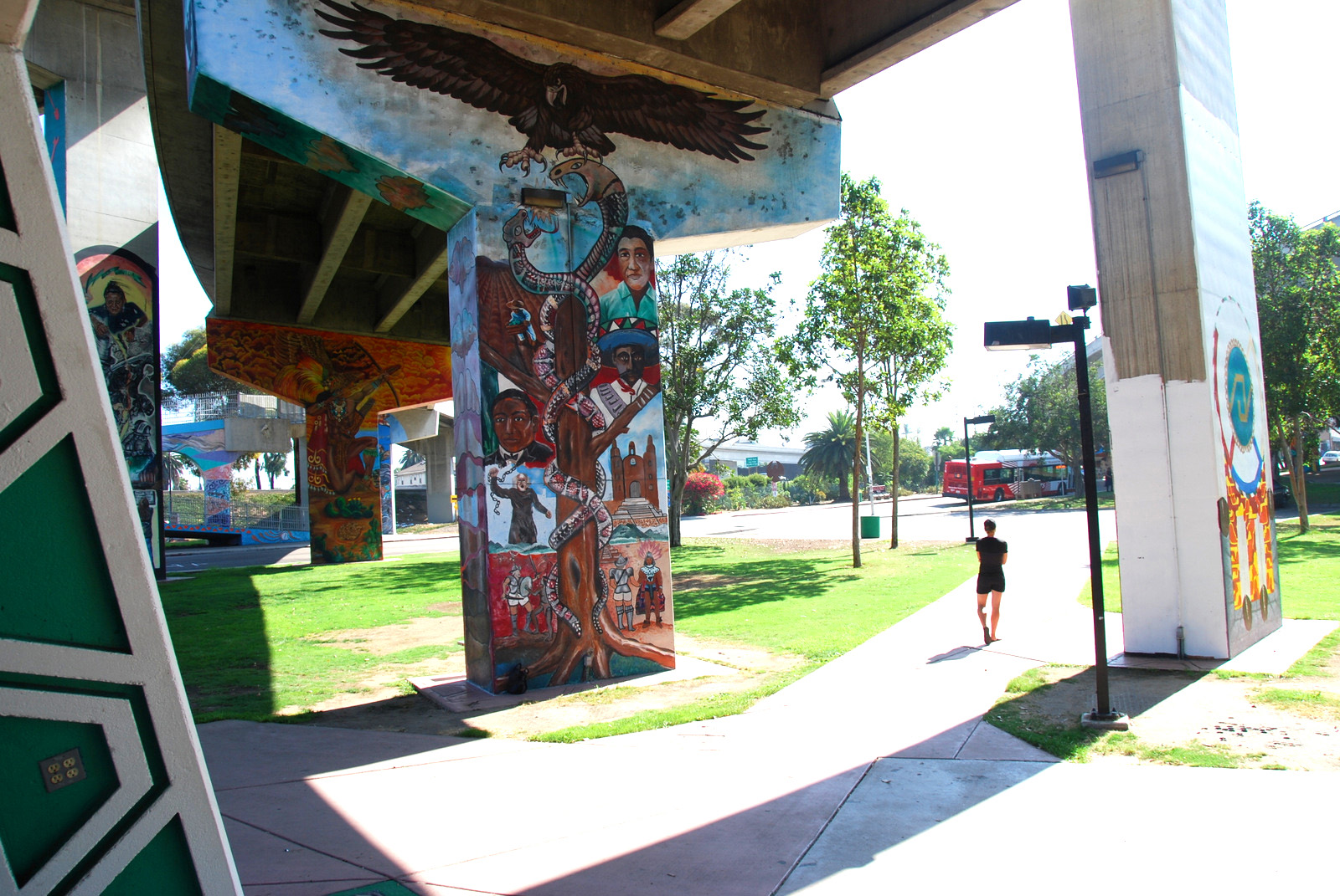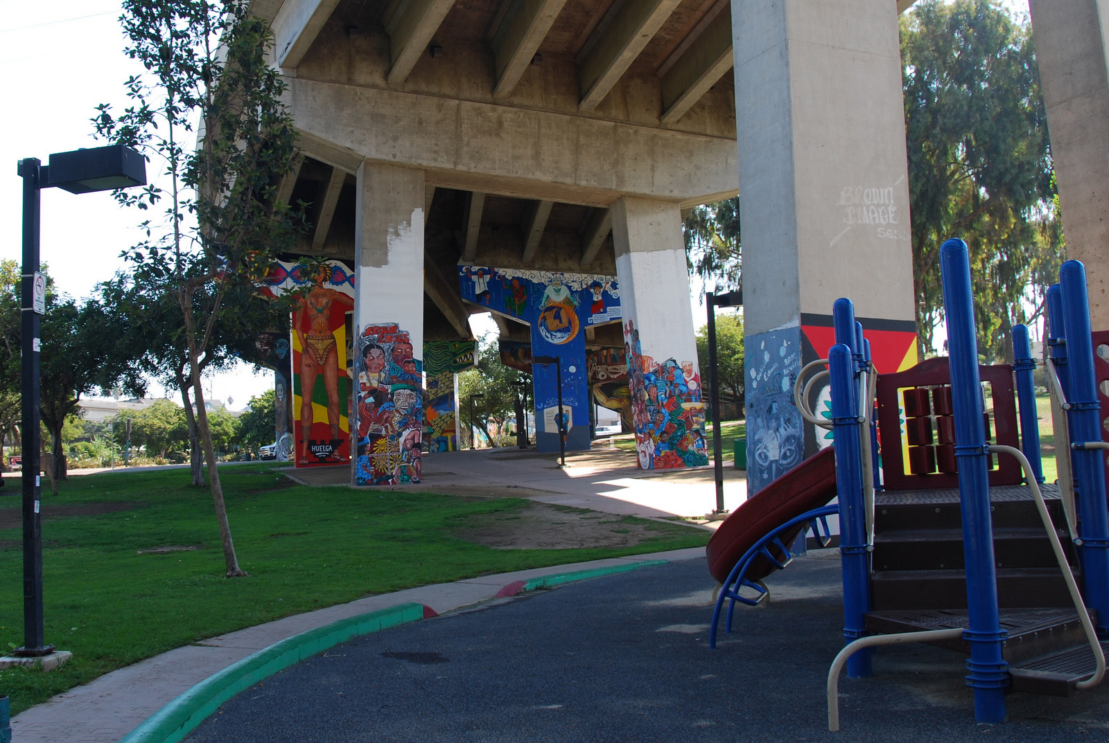 Saturday – I was off by 7am, and was through Coronado and on the Silver Strand by 7:30. It was foggy with light rain, and I pulled over often to clean the visor on my helmet. Still, on a narrow strip of land with ocean on both sides, it was a great ride. I went down to Imperial Beach, and took a quick stroll up to the sand before heading back, touring a bit of Coronado on the way. I took another quick detour to check out Chicano Park, a place I’d first heard of while randomly catching a documentary about the Logan Heights street gang. I was quite impressed, but I had limited time so didn’t stay more than a few minutes. That night, I did a bit of research on the park, and was fascinated by the rich history. So fascinated in fact, that I re-visited the park the next day…