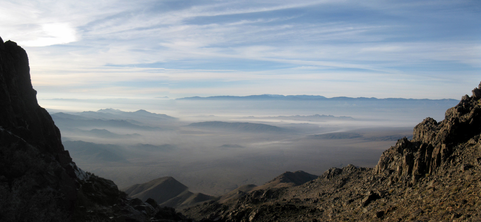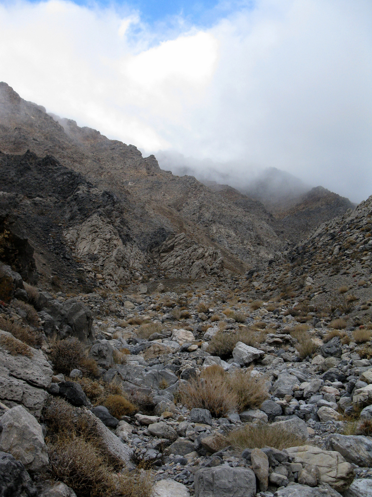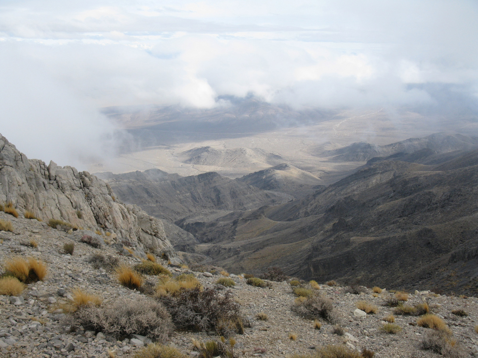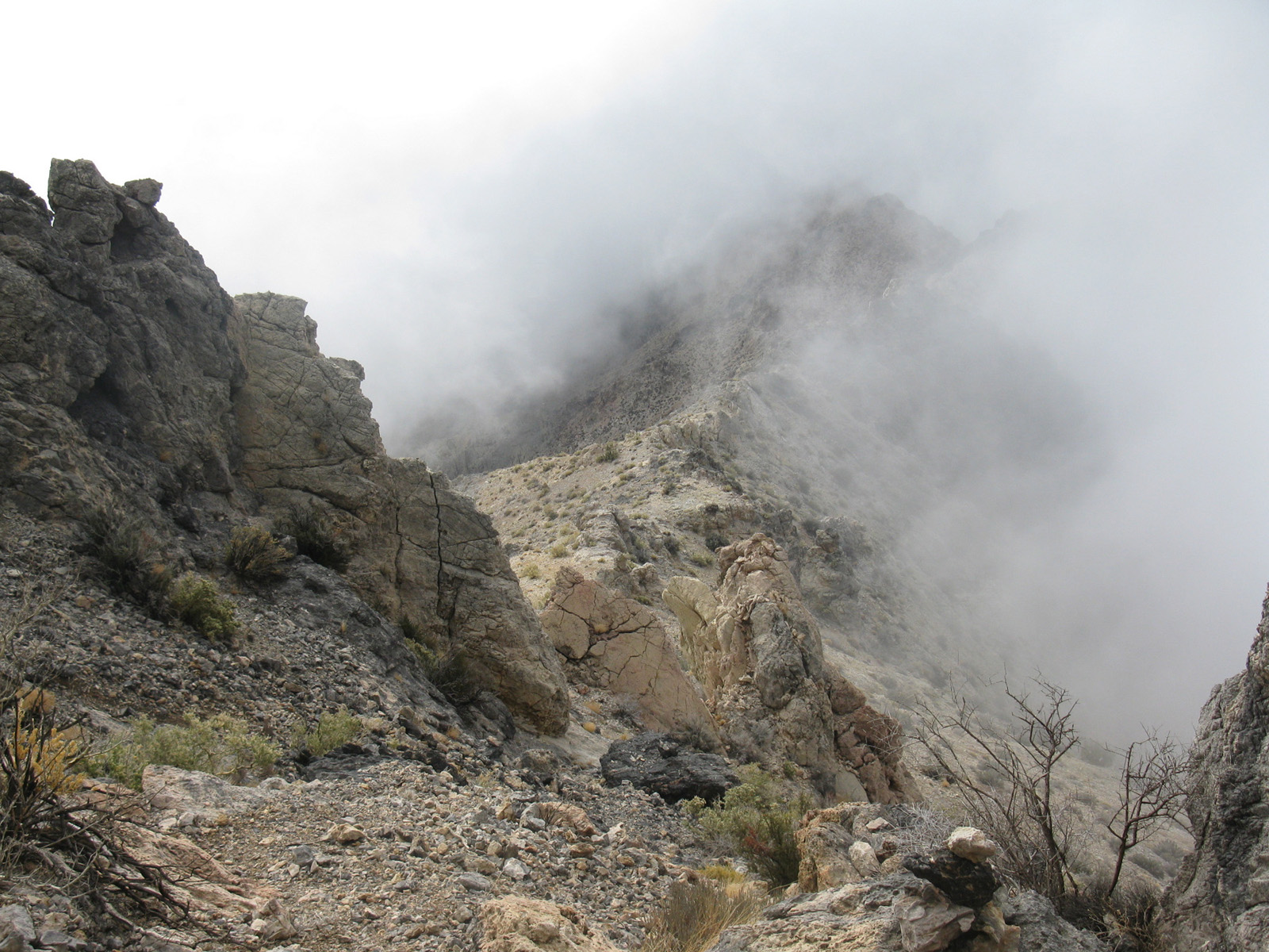 My first dedicated desert peak trip of the season, I bummed around the eastern side of Death Valley for a few days, tagging the handful of peaks I had missed on my previous trip. I balied on my original plans of heading to the Inyo Mountains due to weather, but still dealt with cloud cover most of my trip. Grapevine and Palmer became a routefinding nightmare with ~100ft visibility most of the day. It was the first time I had been completely reliant on my GPS, something I rarely even use. I had preprogrammed just a handful of waypoints, not nearly enough, and more than once I found myself heading down the wrong ridge. My stubbornness paid off however, but not with any views!