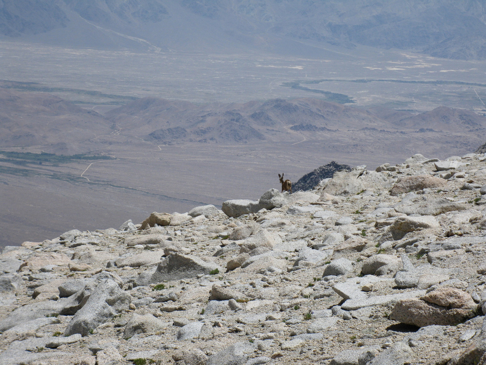 Up at 5:30 am on Monday, we ate a quick breakfast and got moving towards our objectives, Barnard (13990′) and Trojan (13950′). We were moving slowly, and the lack of snow and views of seemingly endless sand slopes above made it hard to keep motivation as we’d really been hoping for a nice crampon climb. We had our work cut out for us, and I couldn’t blame Phil when he decided to call it a day at 11k. I removed my ice axe, crampons, and gaiters from my pack and left them on a rock to retrieve during my descent, and had renewed vigor once I made the decision that I was actually going up. My pace quickened, and after sand gave way to dirt and eventually to granite blocks up high, I found myself on the summit of Barnard. I savored the endless views into the Sierra for just a few minutes before heading back down again. I decided to skip out on Trojan, which just looked like a lot more sand and scree, knowing that we’d already be pushing to get back to the truck before dark (which we did, just barely).