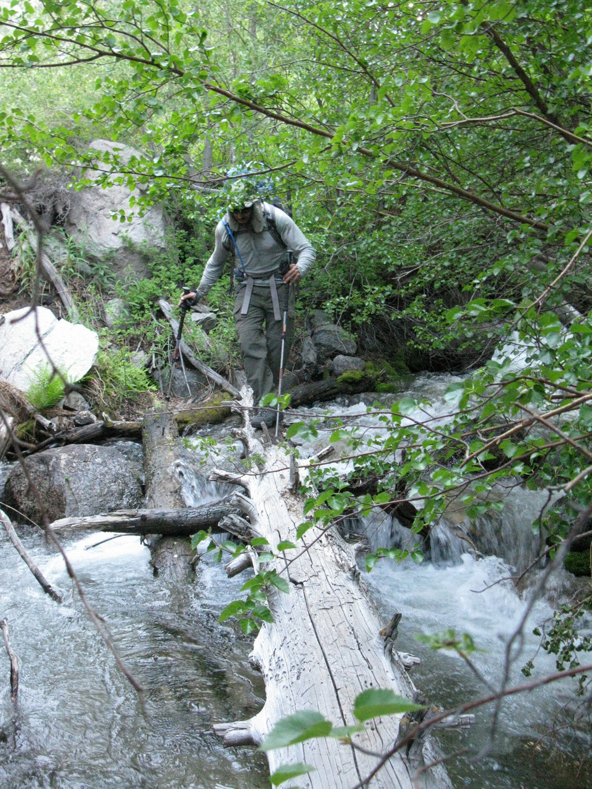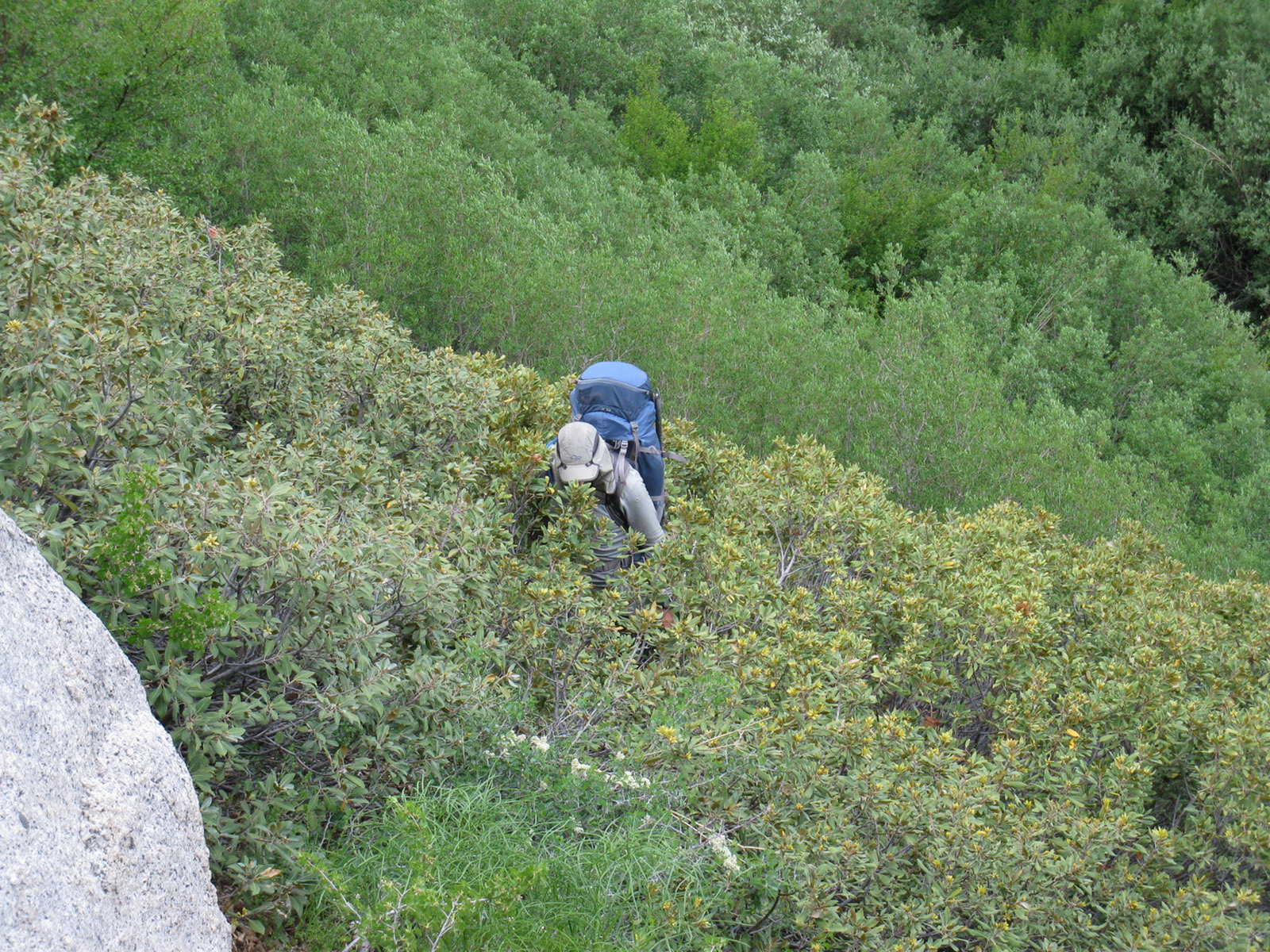 I’d been up the George Creek drainage several times before, though the last was in 2007 and time had faded memories of the pain. No real trail, thick brush, more than a handful of stream crossings (some pretty sketchy!), and a bit of rock hopping makes for slow going, with no chance to allow one to drift off into mindless thought. Phil hadn’t been fully informed of my plans ahead of time and wasn’t amused at my choice of outings :). We packed into camp at just over 10000 feet, taking almost 6 hours to cover what the map shows to be about 4 miles (in reality, with all the weaving, we most likely covered near twice that, and Phil’s GPS showed that we had over 1000’ of unplanned ups and downs).