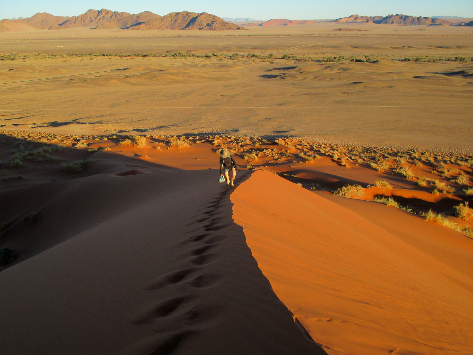 Sandboarding in Namibia, lions, rhinos, elephants, zebras, giraffes, jackals, warthogs, oryx, and more in Etosha and Chobe National Parks, a sunset river safari among hippos and crocodiles on the Chobe River, exploring an old diamond mining ghost town that’s being taken over by sand, hiking red sand dunes overlooking the skeletons of long-dead trees, watching meerkats dig up eggs in the Makgadikgadi Salt Pans, a day in Zimbabwe to see Victoria Falls, and searching for shipwrecks on the Skeleton Coast just about sums about this amazing 4 weeks in Southern Africa.