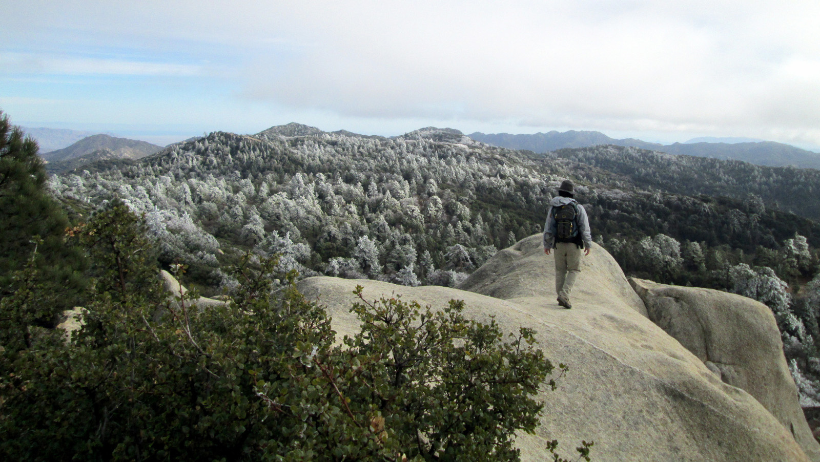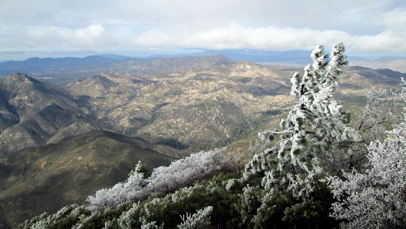 A bit ridiculous that with well over 100 peaks hiked in San Diego County, that I hadn’t been to the highest, Hot Springs Mountain, until now. Located on the Los Coyotes Indian reservation, it used to be mostly a drive-up mountain, but access to the roads have changed, and Aaron Cooke and I made the 11-mile round tirp hike in cold yet colorful conditions…