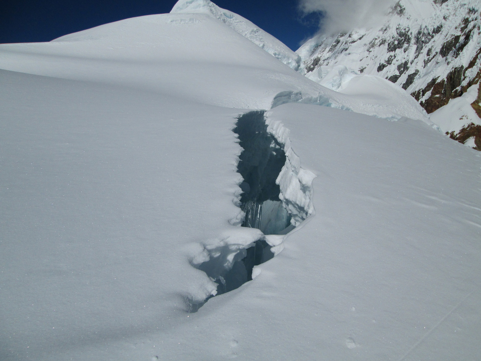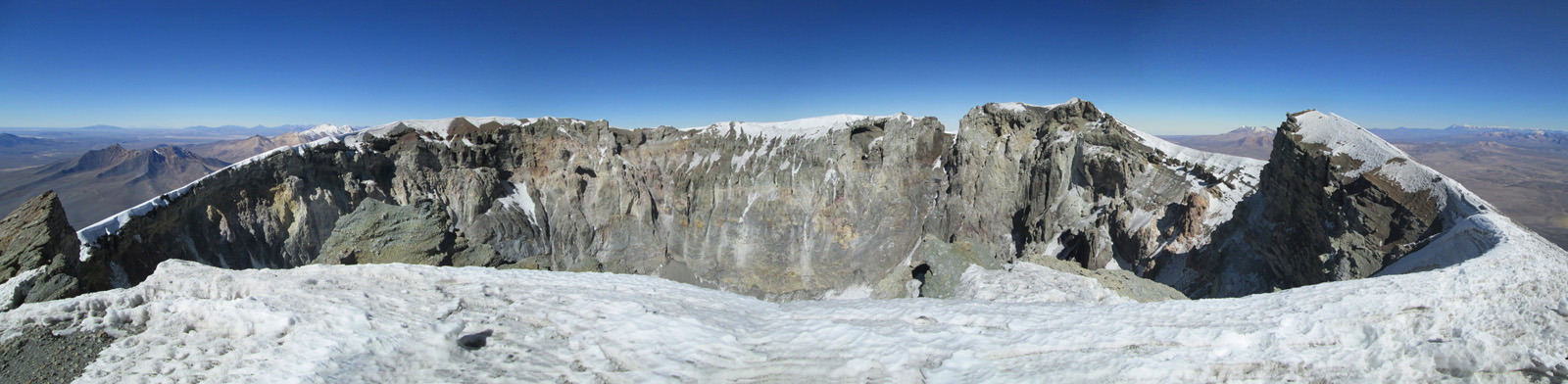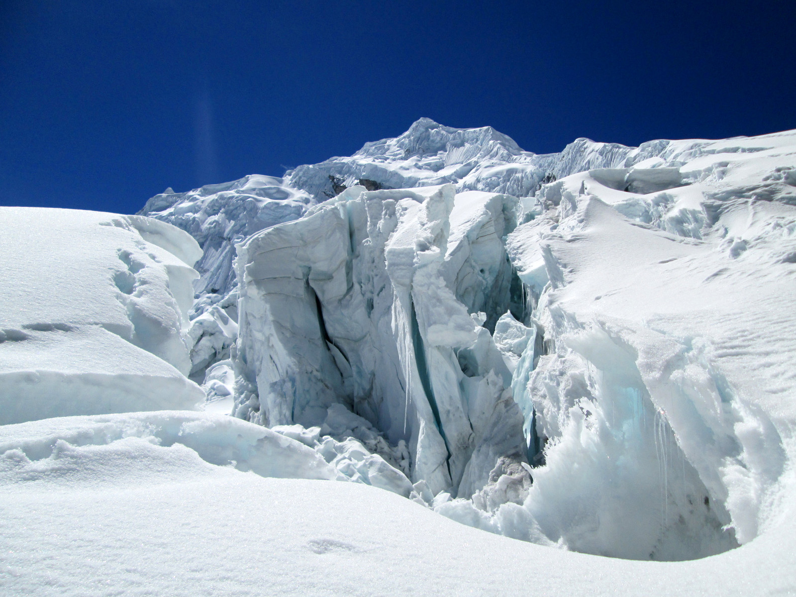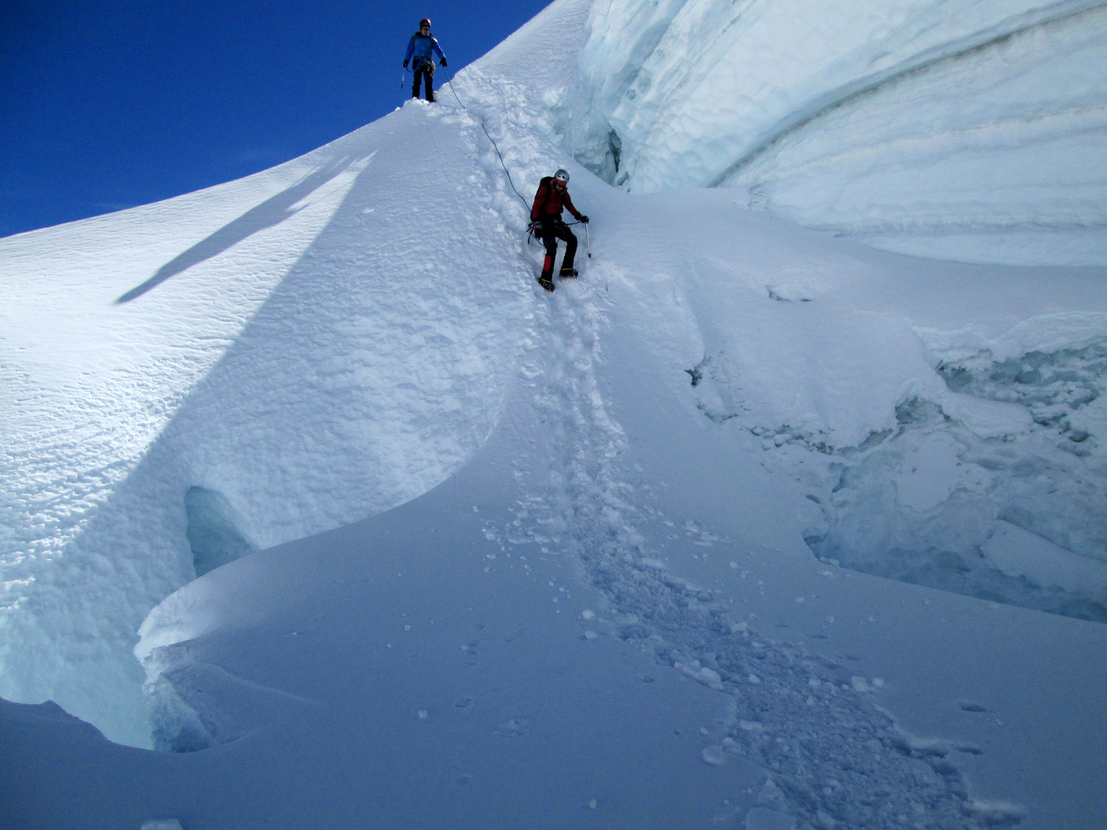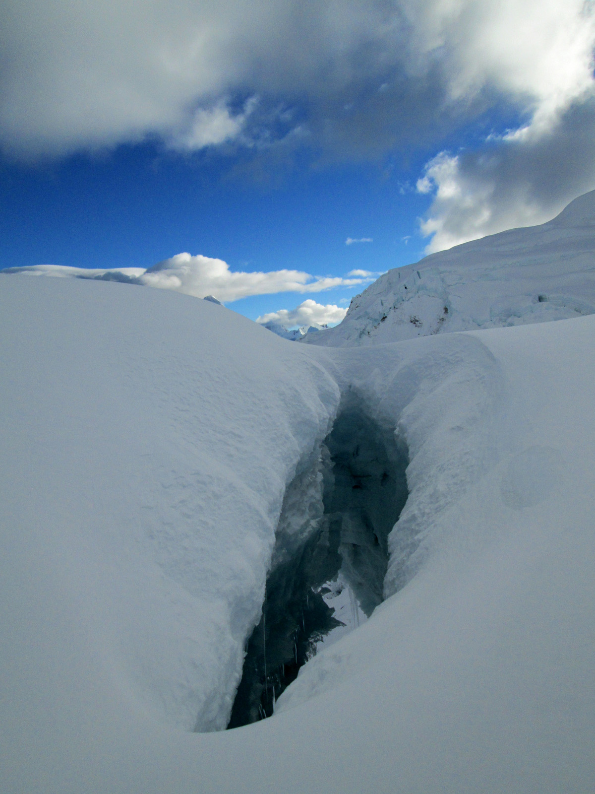 Along with friends Phil Wegge and Phil Stinis, we visited Peru and Bolivia to check some of their high and very accessible mountains. We were 4 for 4 in Peru, climbing Urus Este (17782′), Ishinca (18143′), Pisco (18871′), and Chopicalqui (20817′), the latter being a very exciting climb indeed. We had to abandon our plans of climbing Sajama in Bolivia due to high wind, but climbed Parinacota (20827′) and Acotango (19856′) on the Chilean border, two very scenic mountains in an interesting area. While waiting for weather in Bolivia, we ended up with extra time to check out some of the salt flats, and then finished off our trip with a huge 11000′ descent down the Bolivian “death road” on mountain bikes. We also ran into Bogotá, Colombia, on our layover on the way home…ahhhhh….
