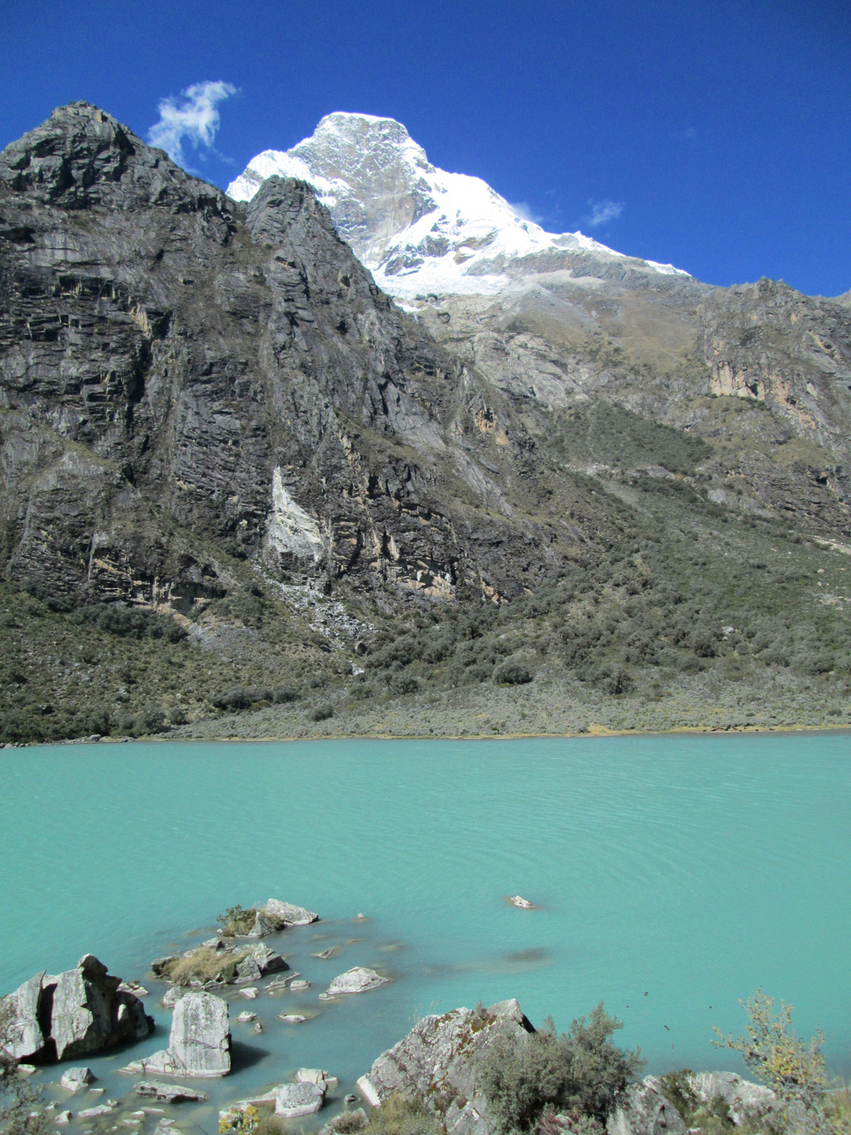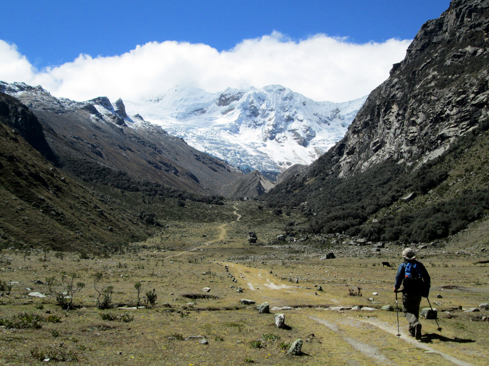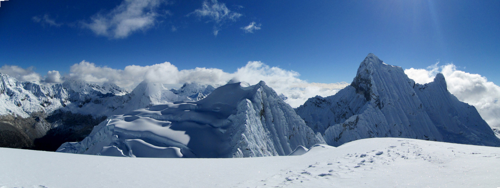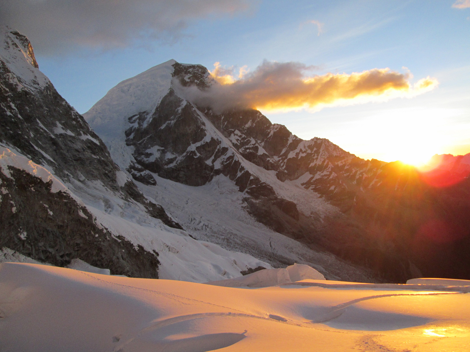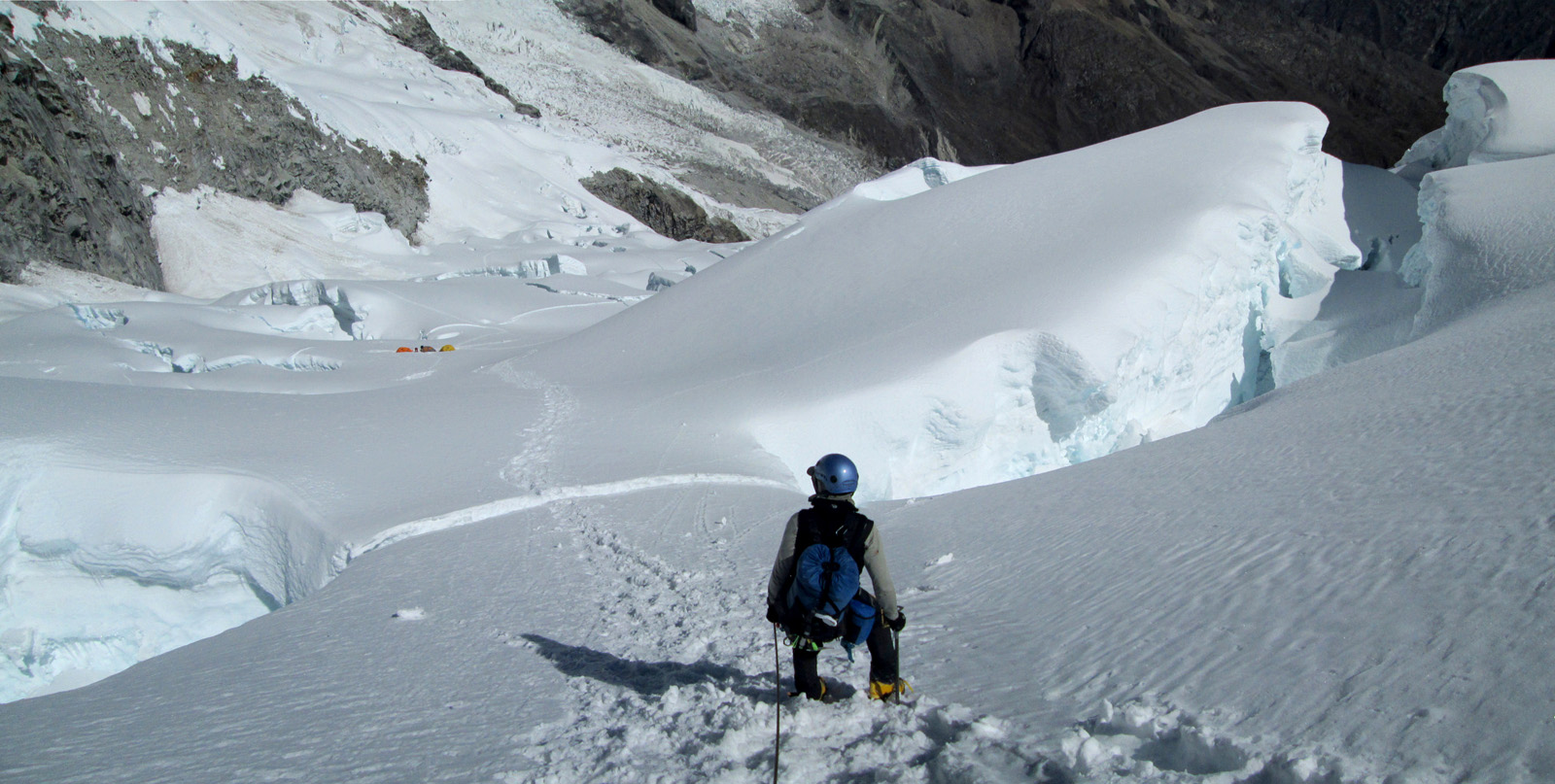 Along with friends Phil Wegge and Phil Stinis, we visited Peru and Bolivia to check some of their high and very accessible mountains. We were 4 for 4 in Peru, climbing Urus Este (17782′), Ishinca (18143′), Pisco (18871′), and Chopicalqui (20817′), the latter being a very exciting climb indeed. We had to abandon our plans of climbing Sajama in Bolivia due to high wind, but climbed Parinacota (20827′) and Acotango (19856′) on the Chilean border, two very scenic mountains in an interesting area. While waiting for weather in Bolivia, we ended up with extra time to check out some of the salt flats, and then finished off our trip with a huge 11000′ descent down the Bolivian “death road” on mountain bikes. We also ran into Bogotá, Colombia, on our layover on the way home…ahhhhh….