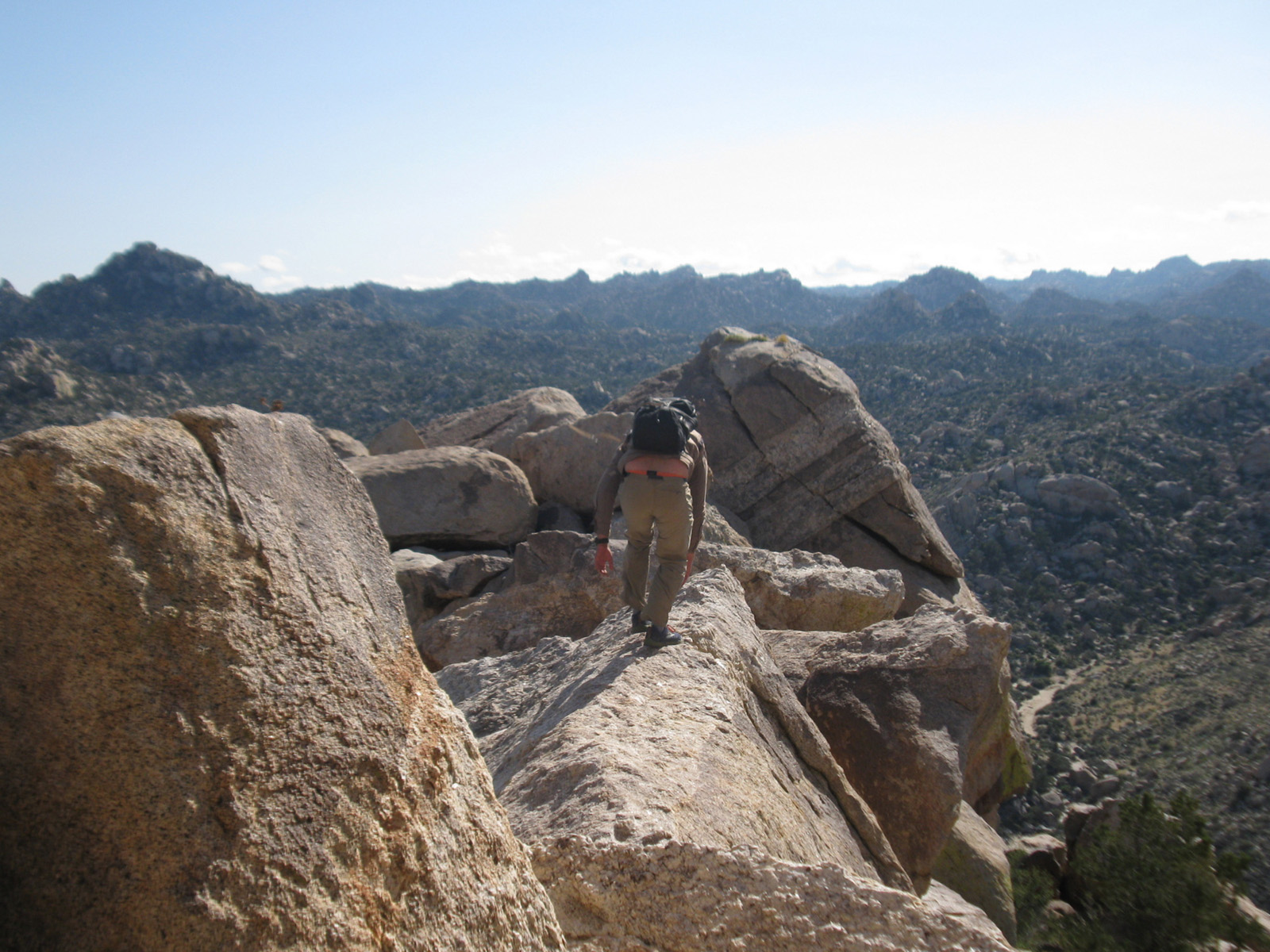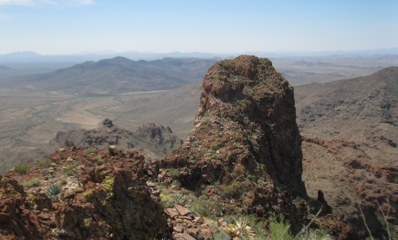 Tuesday – climbed Kino Peak in Organ Pipe Cactus National Monument. This is a challenging peak that also looks impossible from a distance, but careful routefinding will get you to its top with steep scrambling. The biggest challenge for us this day was the intense heat.