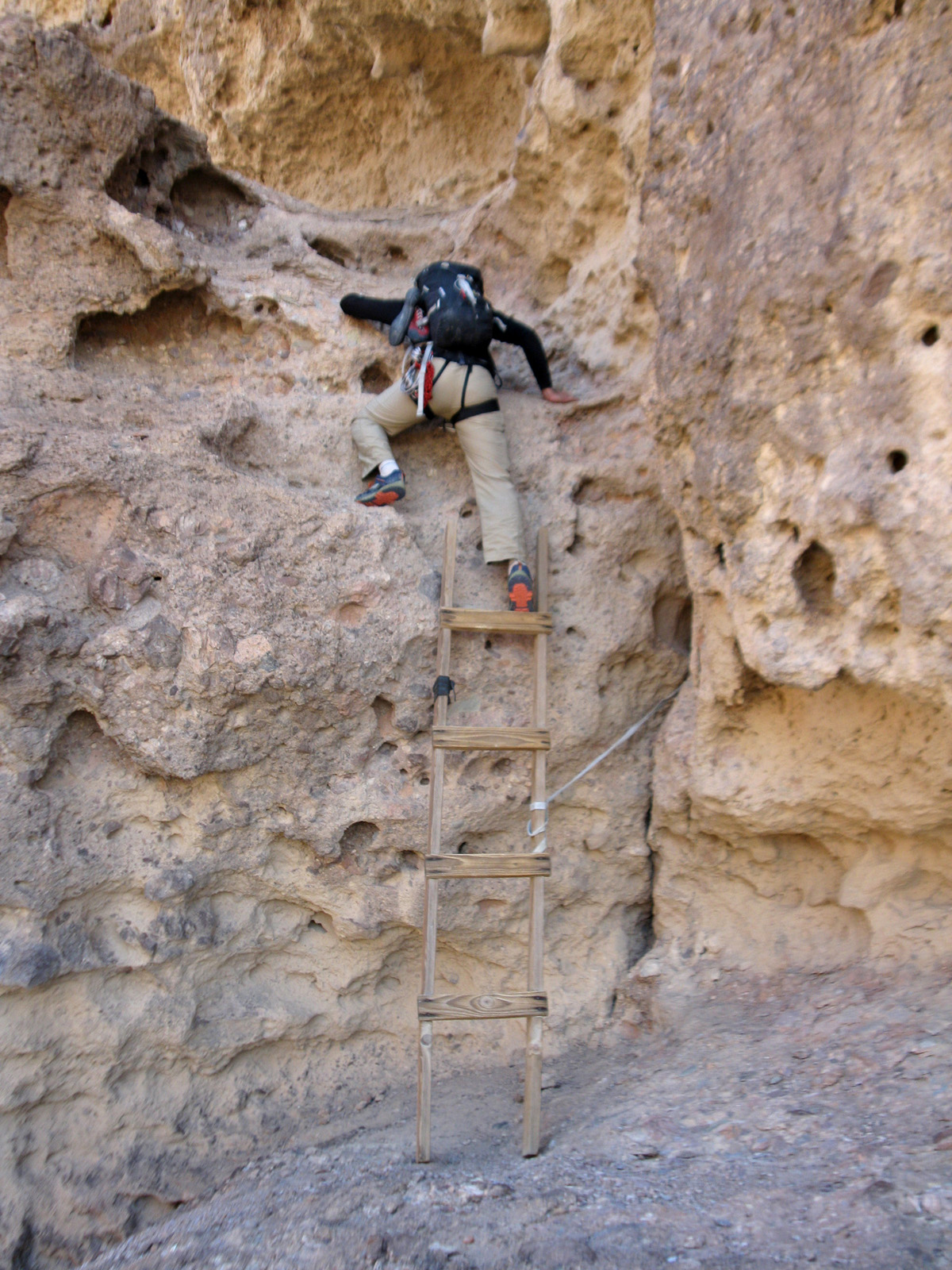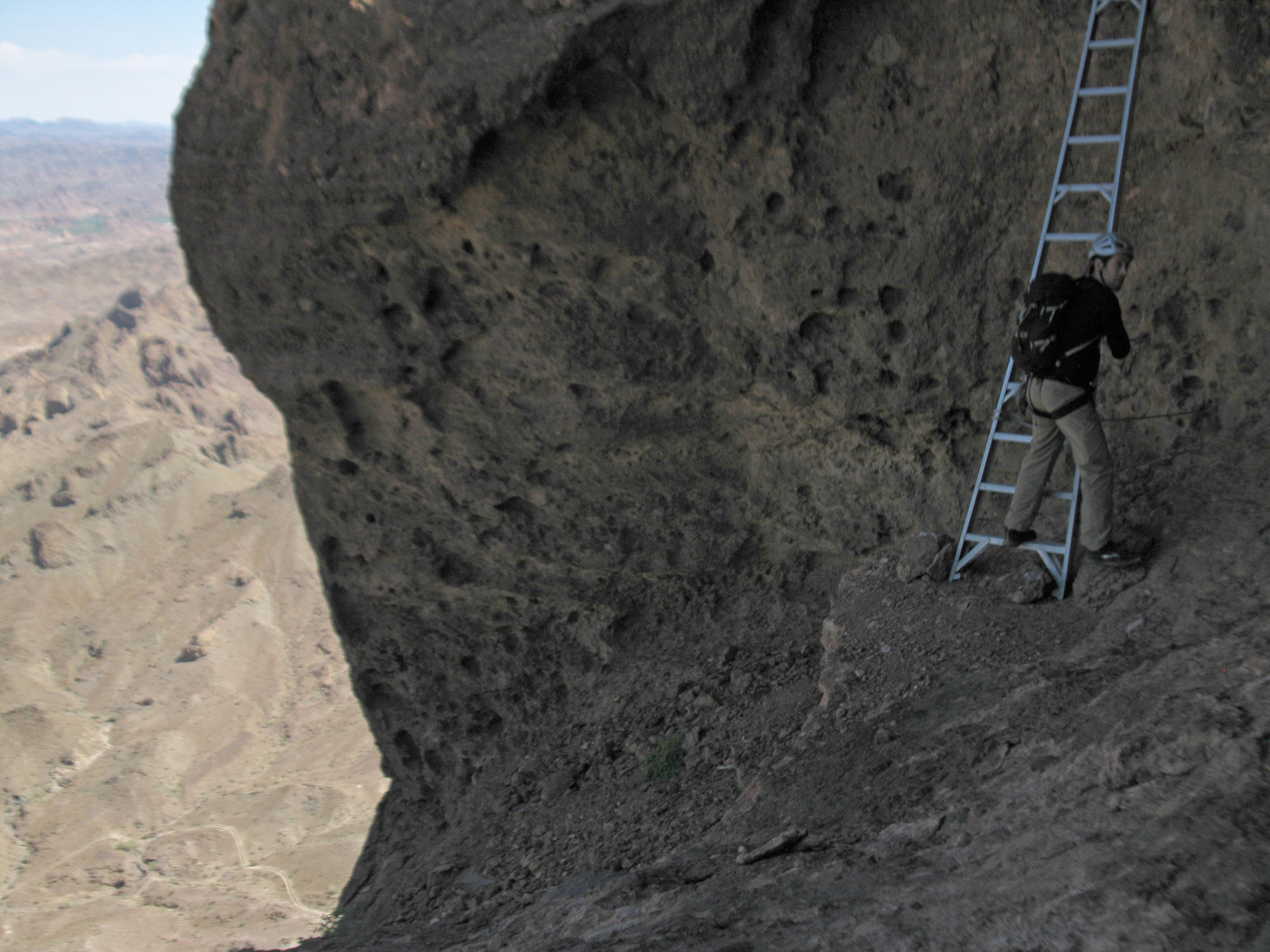 Monday – climbed Picacho Peak, technically the toughest peak on the DPS list. The peak looks impossible from a distance, but there’s a fun route to it’s summit that includes climbing ladders, ramping ledges, the infamous “jump-across” of an airy gap, and short sections of legit rock climbing. Big boy pants required.