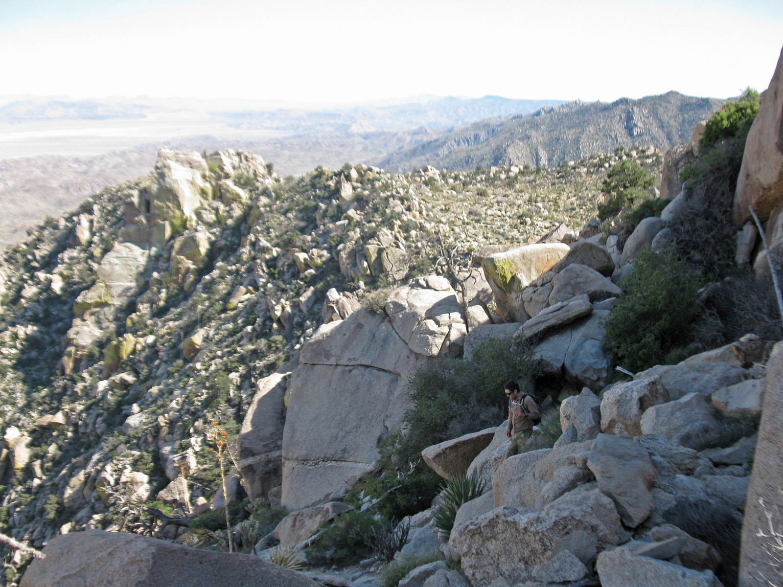 Saturday – crossed early into Mexico via Mexicali, drove to Guadalupe Canyon, and climbed Pico Risco, a tough peak with a dicey “jump-across” at it’s summit. We stayed in the amazing campground at its base, which includes a hot tub fed by a natural hot spring in each campsite. Quite a treat after a long day.