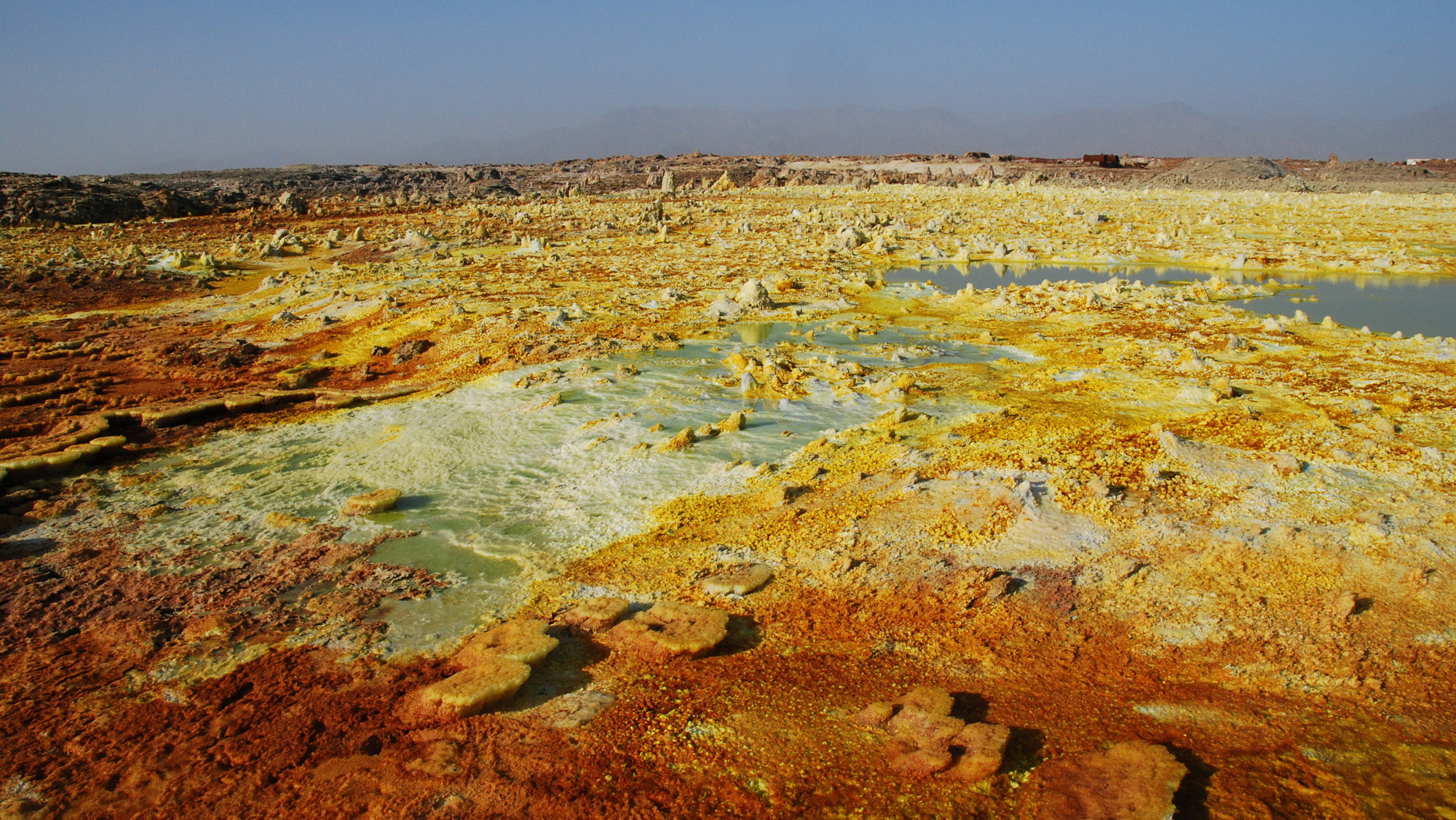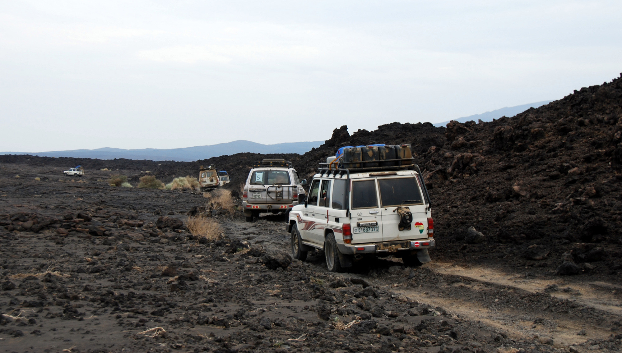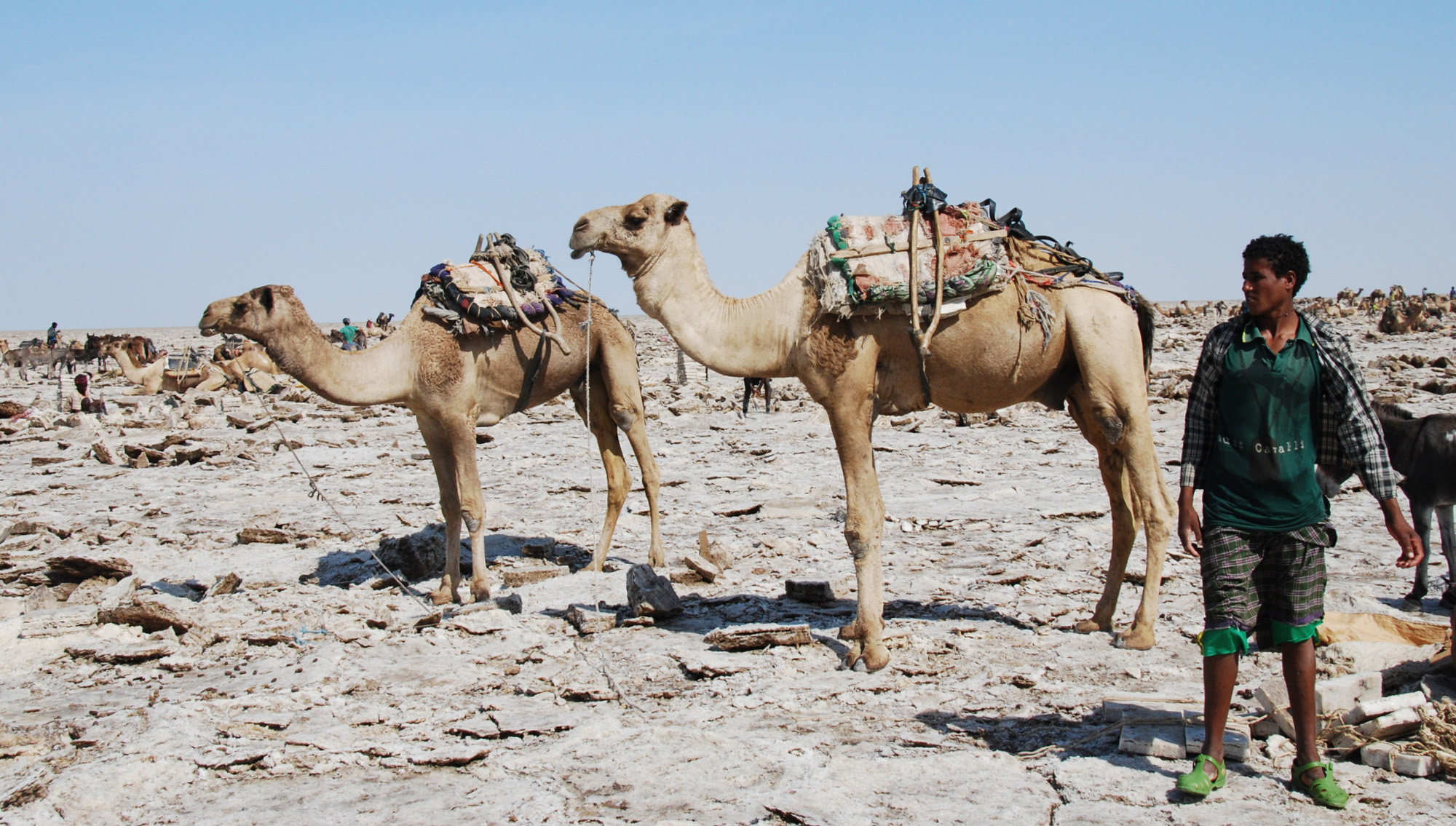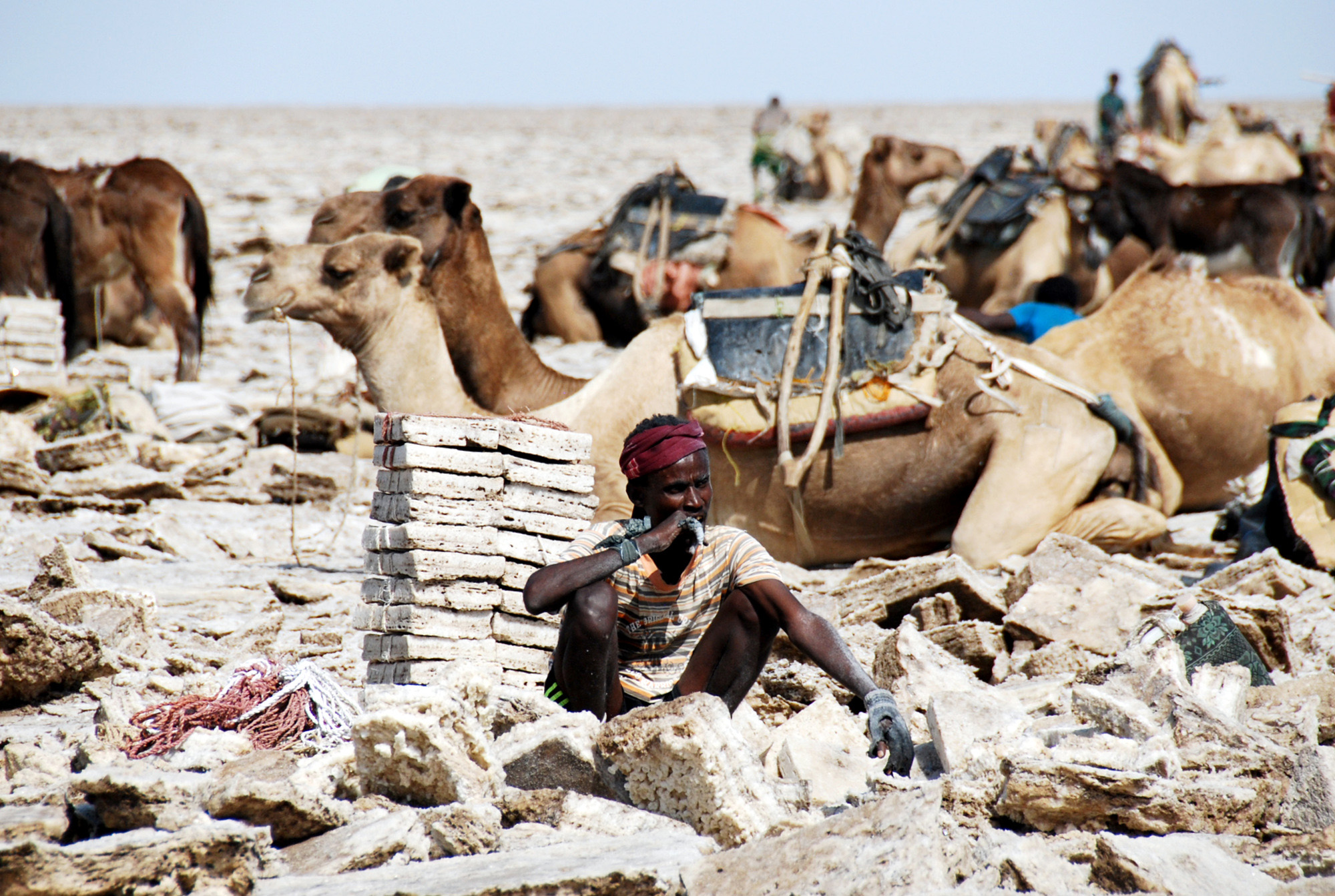 Danikil Depression – The hottest place on earth and one of the lowest (-410ft). Includes Erta Ale (a short volcano with one of the world’s only permanent lava lakes), salt flats (being mined via camel on mulit-day excursions), a sulfur lake at Dallol. We had armed escorts on this 4-day tour due to the proximity to Eritrea.