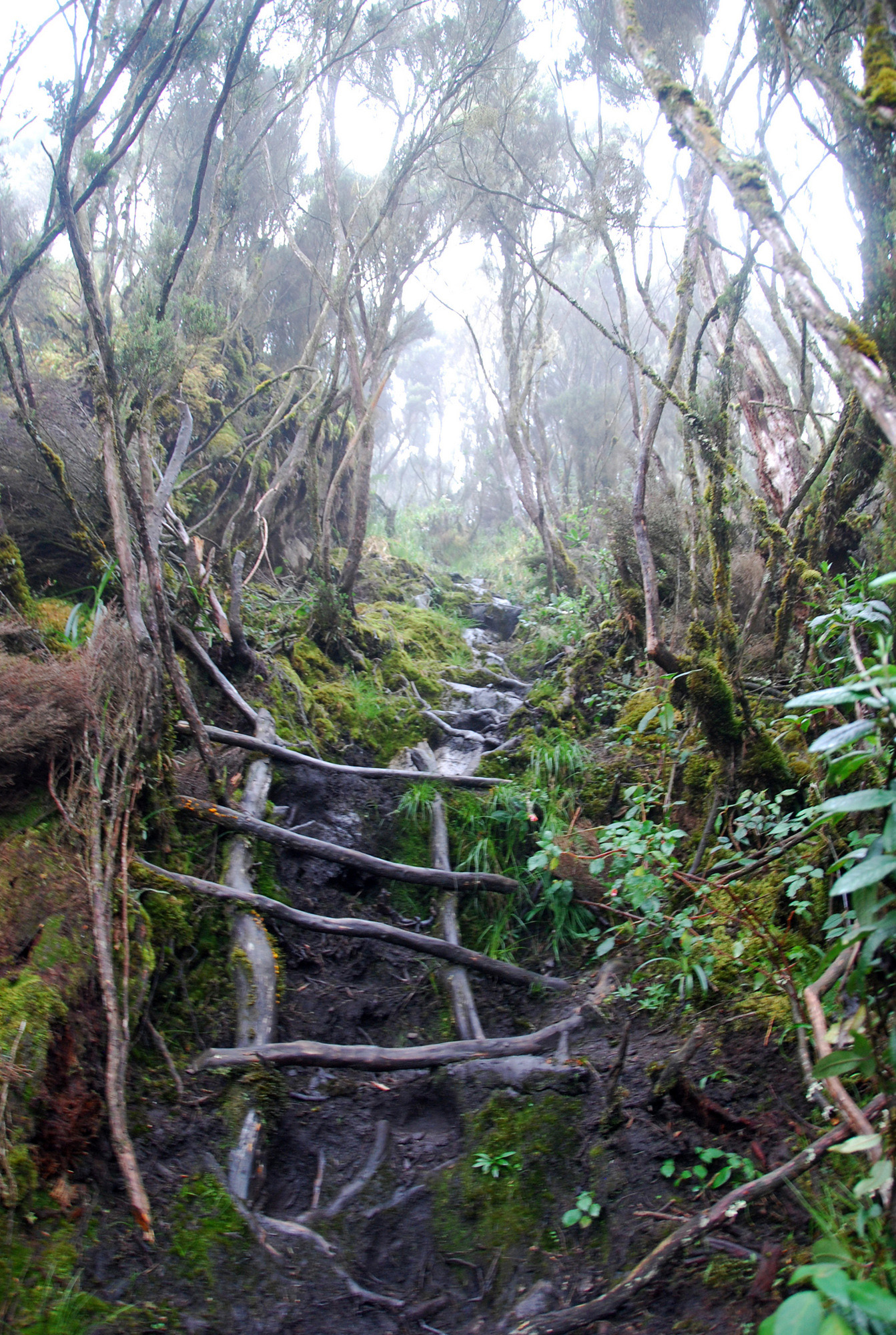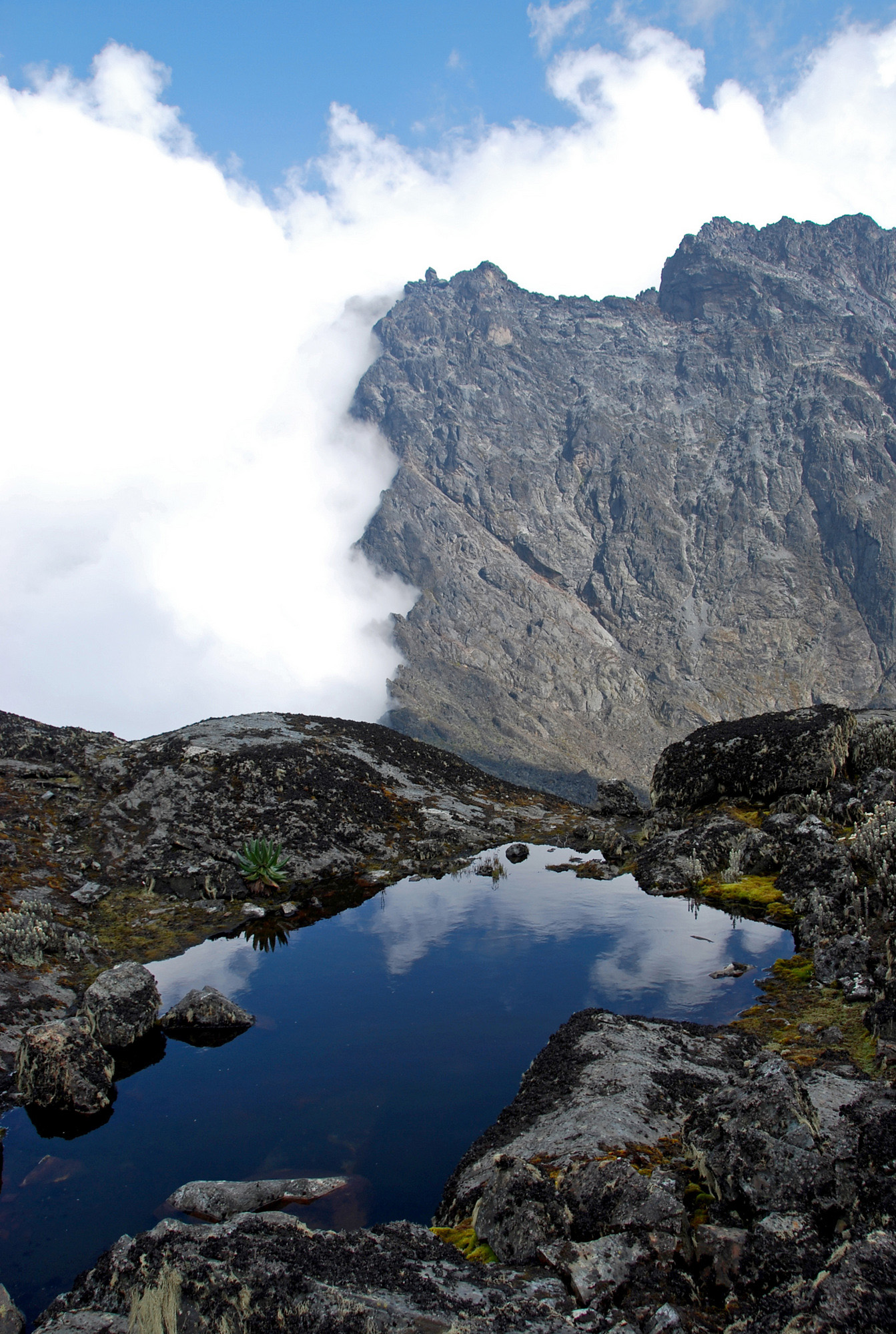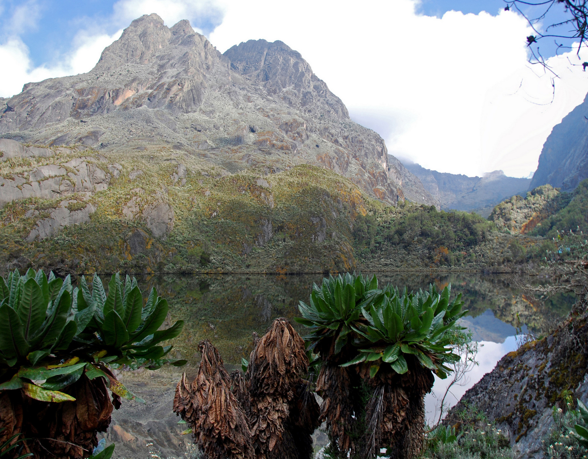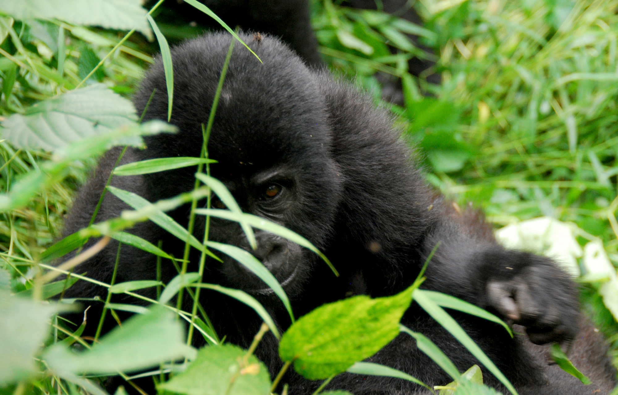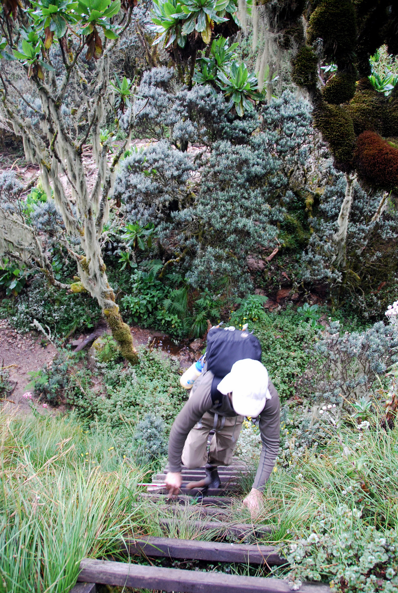 My main reason for visiting Uganda was to climb Mt. Stanley (16762′), Africa’s 3rd highest mountain (and much tougher than the higher two). Located in the Rwenzori Mountains on the border of the Democratic Republic of the Congo (formerly Zaire), the range is notoriously wet and muddy. Friend Philip Wegge and I wore rubber boots for 6 of our 8 days, luckily the unique vegetation kept our minds busy. We had a challenging summit day due to continuous snow fall but overall had a great trip. We visited the Mountain Gorillas in Bwindi Impenetrable Park before crossing into Rwanda…